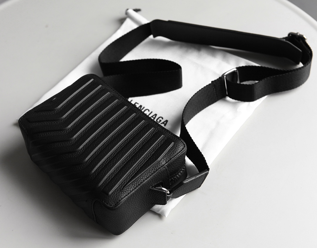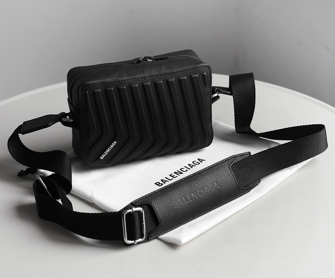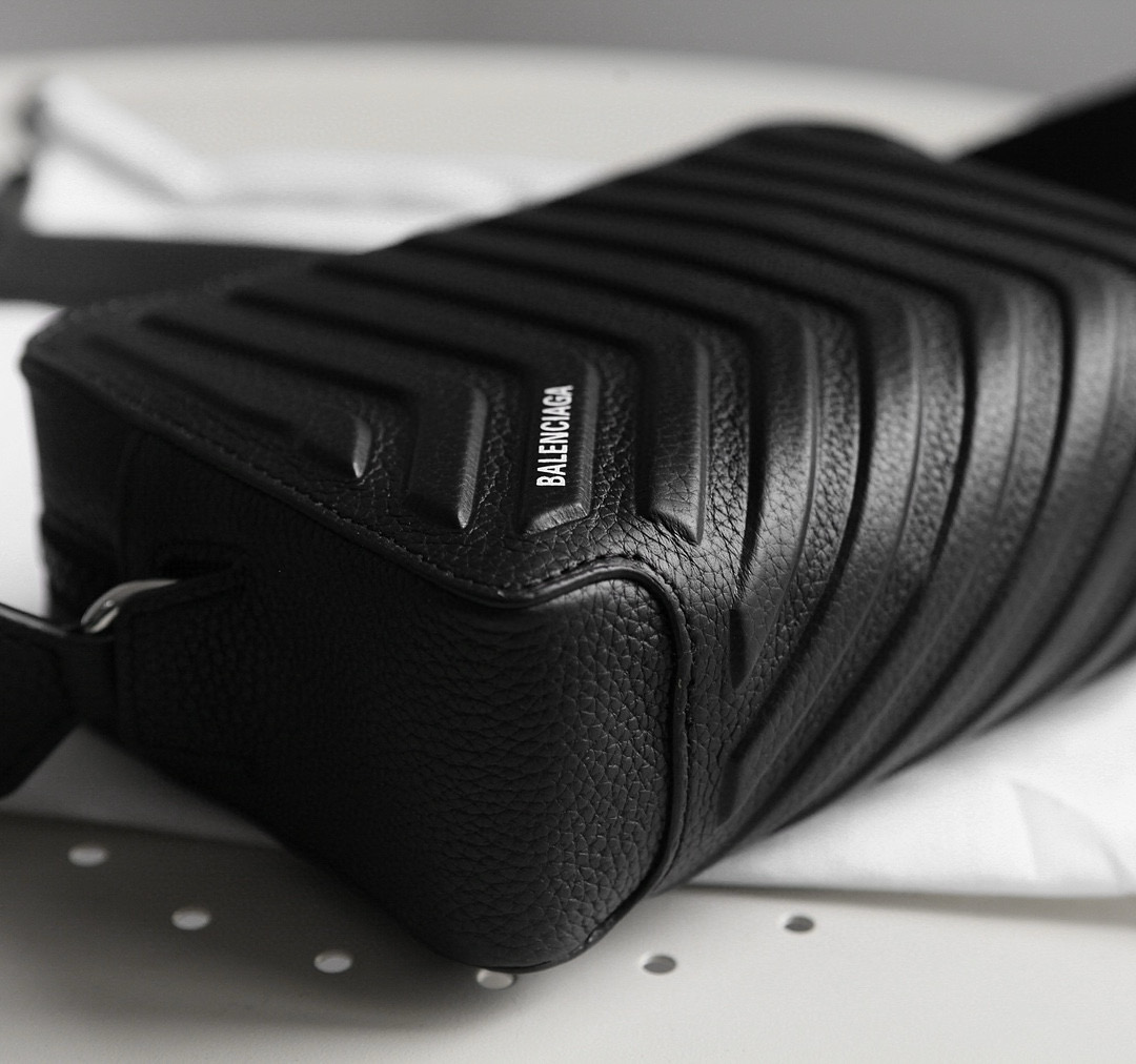 NIGO Balenciaga Men's Black Logo Embossed Shoulder Strap Leather Camera Bag Tote Shoulder Crossbody Bags #nigo75668
