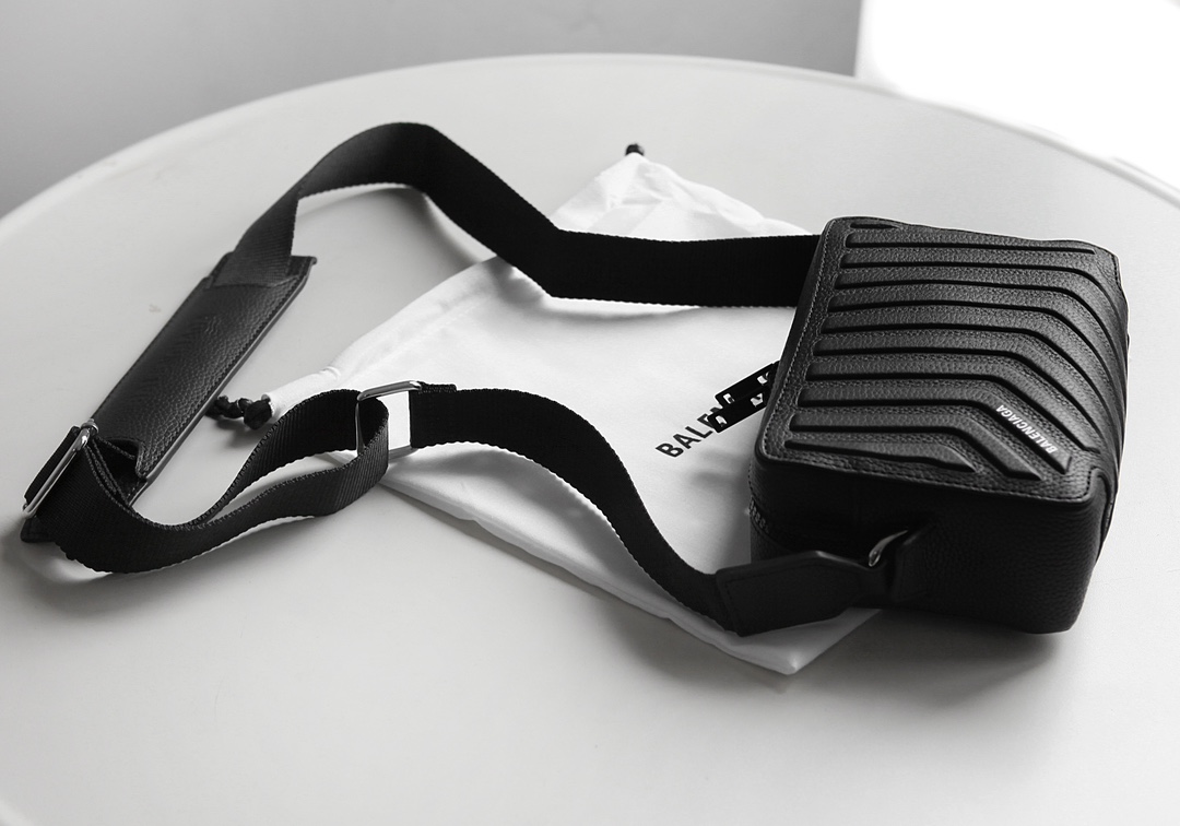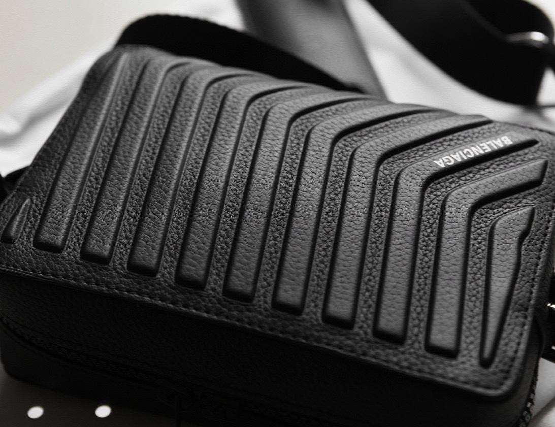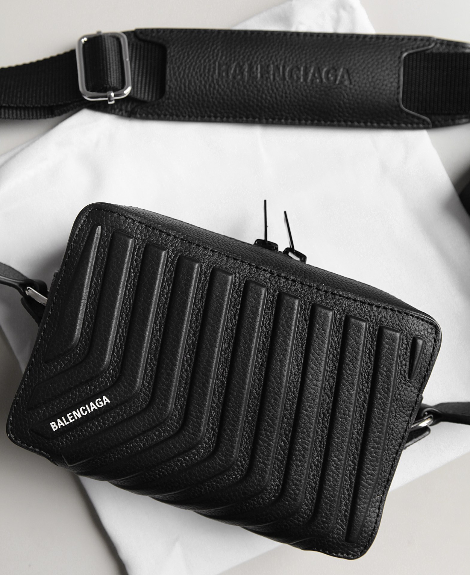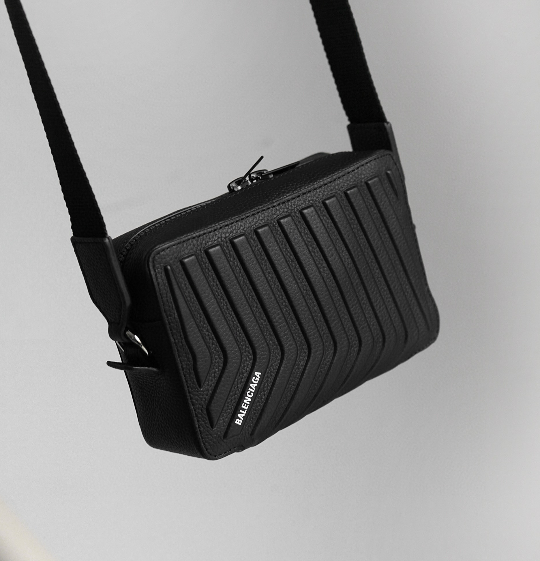 NIGO Balenciaga Men's Black Logo Embossed Shoulder Strap Leather Camera Bag Tote Shoulder Crossbody Bags #nigo75668