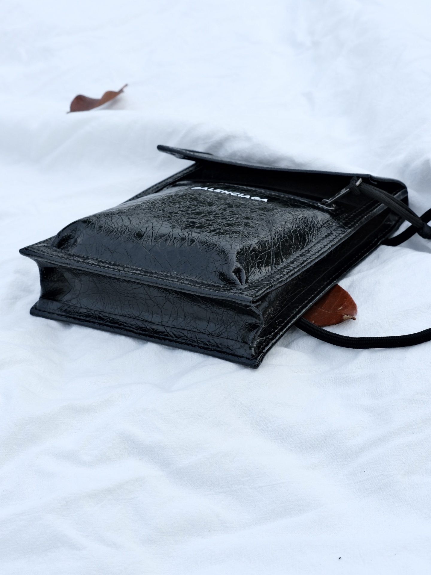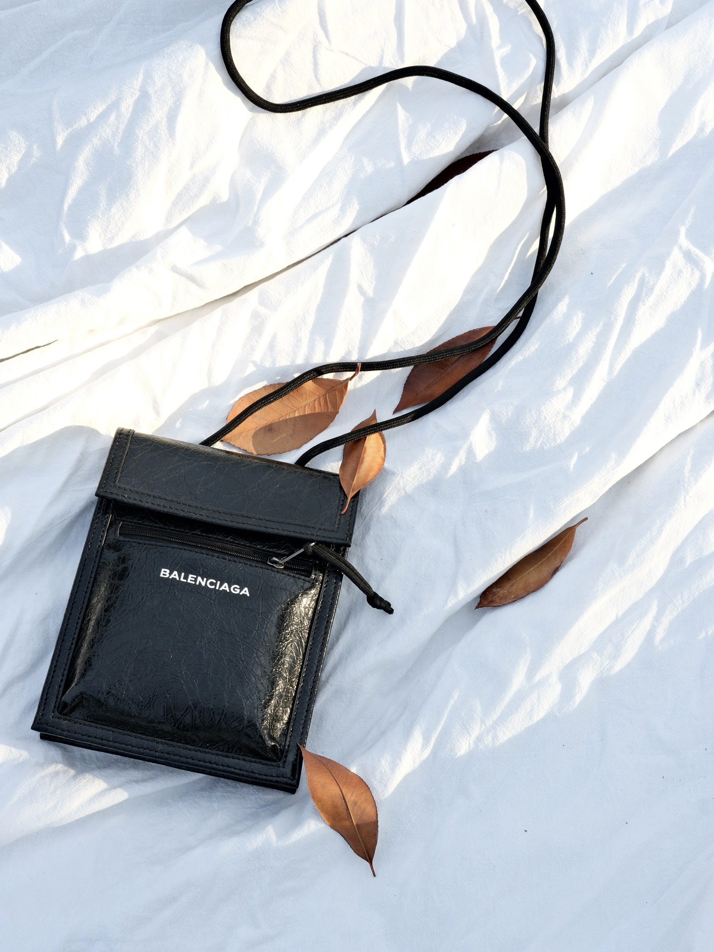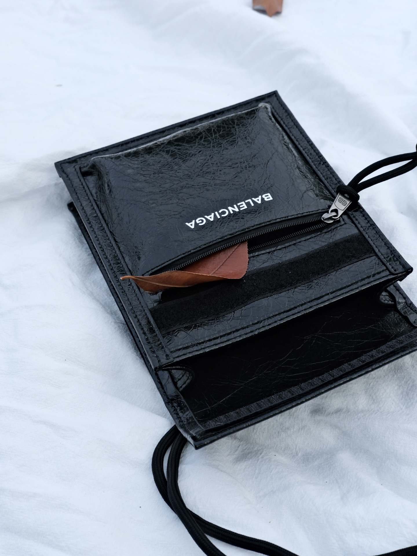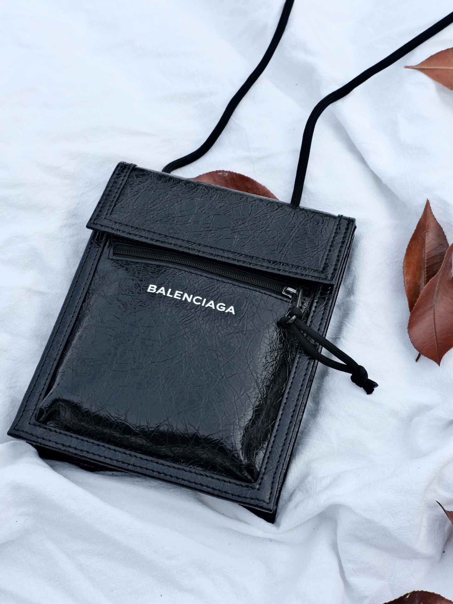 NIGO Balenciaga Men's Black Logo Lamb Leather Cell Phone Bag Shoulder Crossbody Bags #nigo99771
