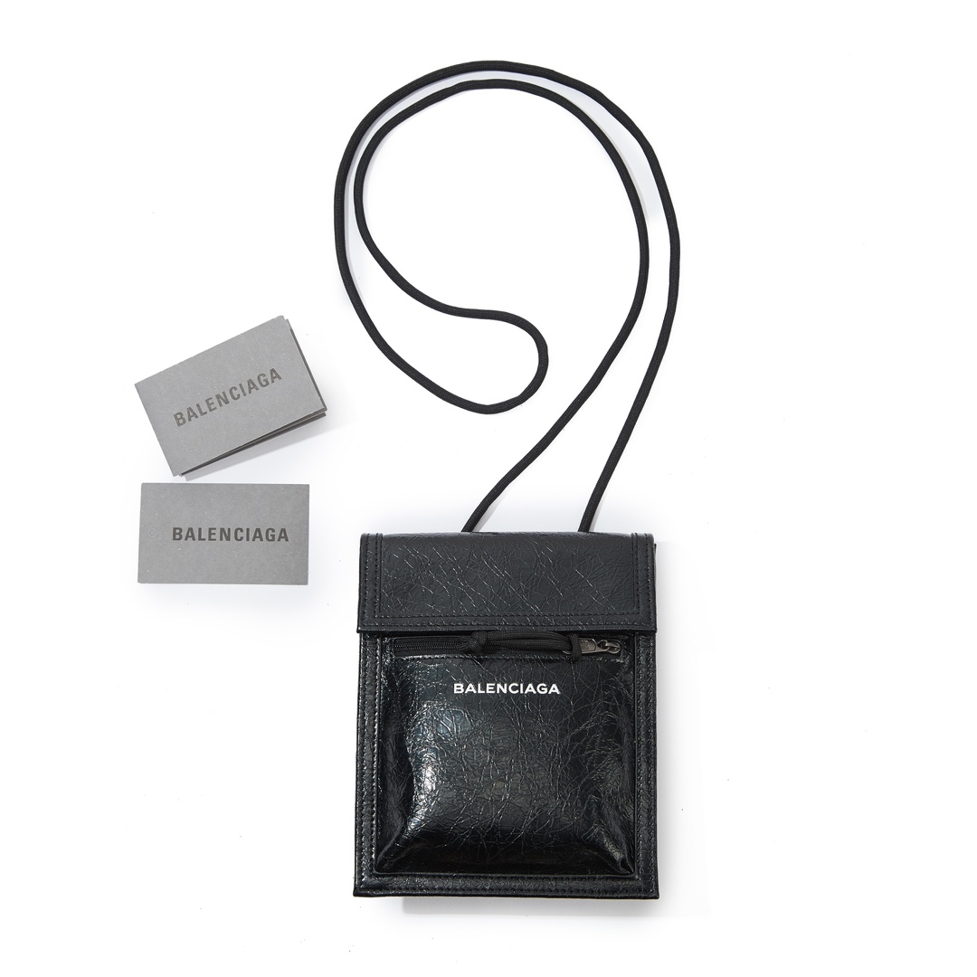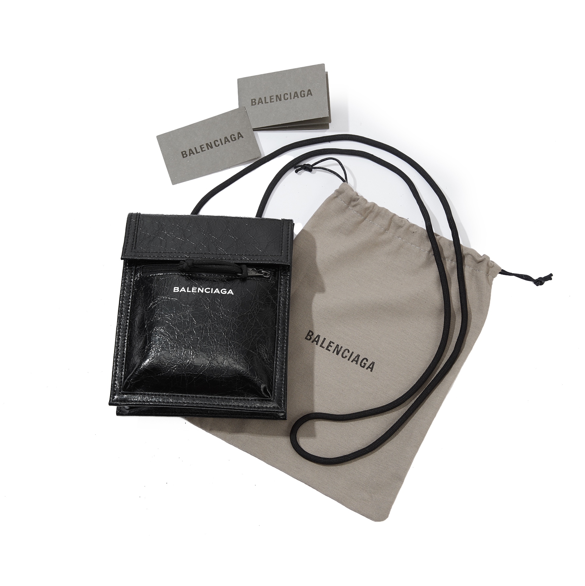 NIGO Balenciaga Men's Black Logo Lamb Leather Cell Phone Bag Shoulder Crossbody Bags #nigo99851