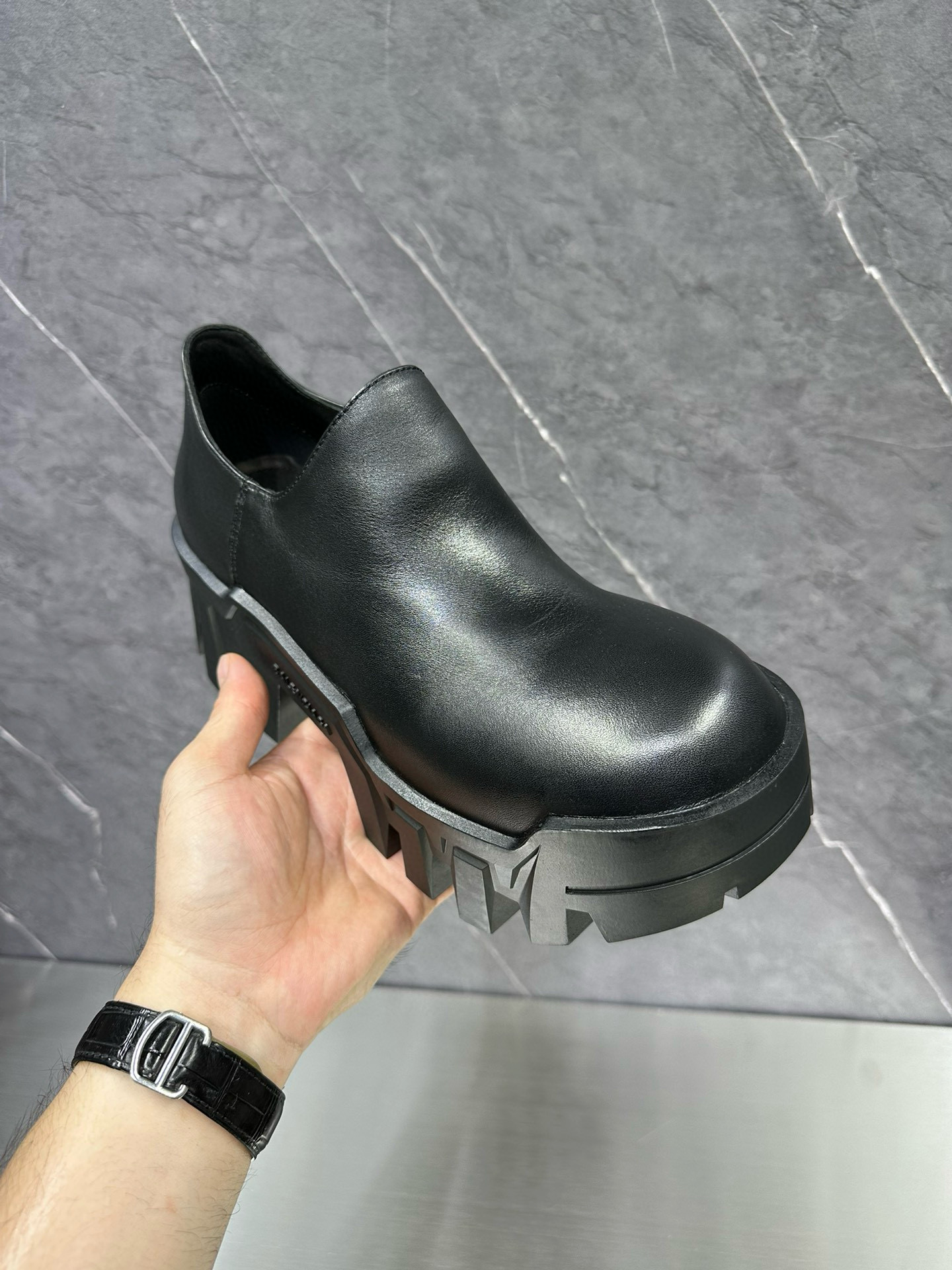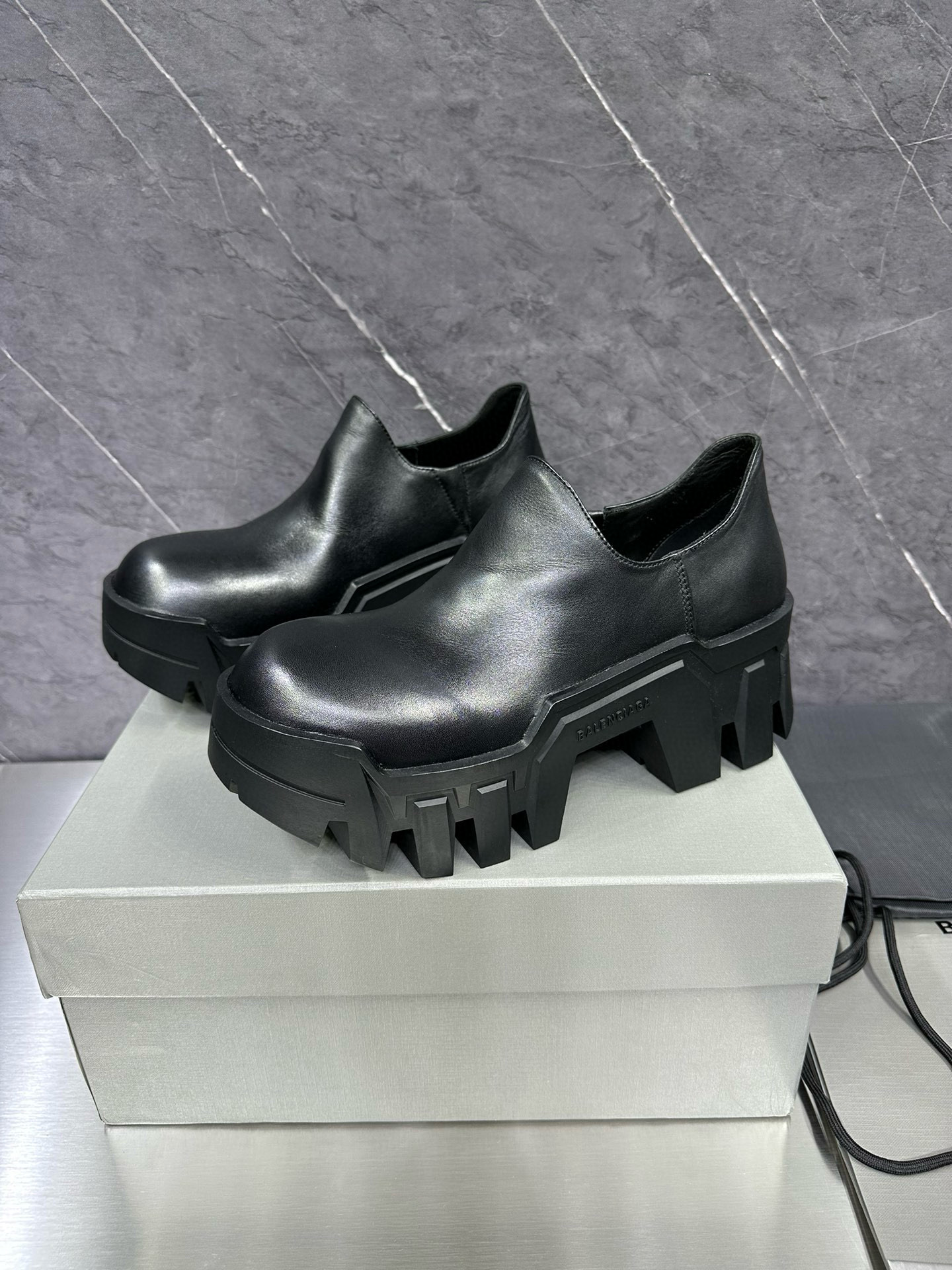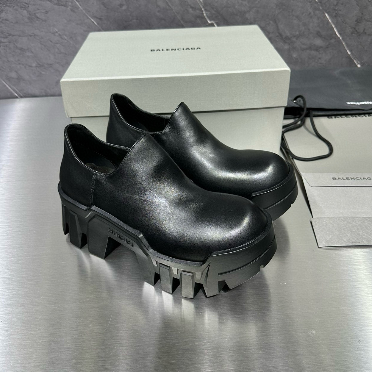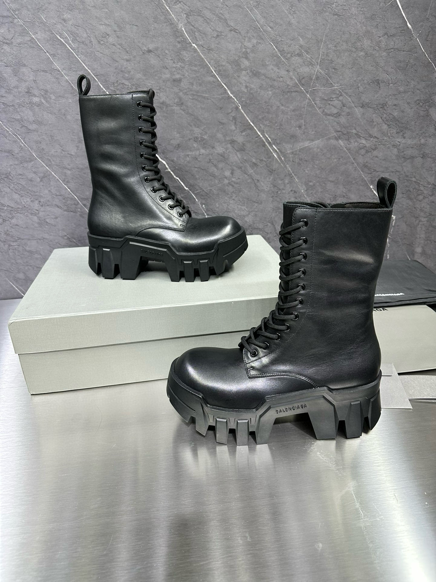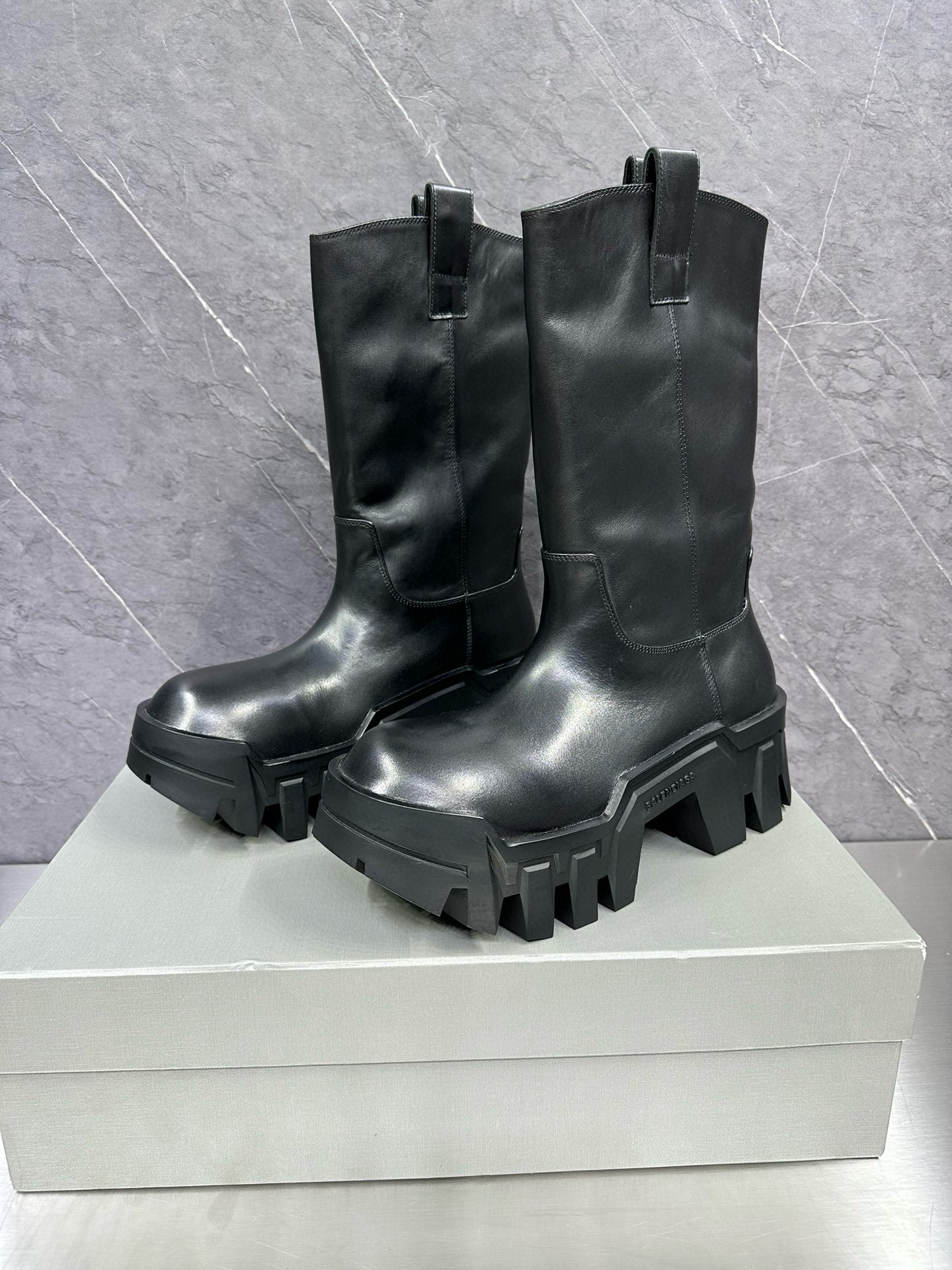NIGO Balenciaga Men's Bulldozer Fall and Winter Black Calfskin Thick Sole Mid Calf Boots Low Derby Shoes #nigo98118