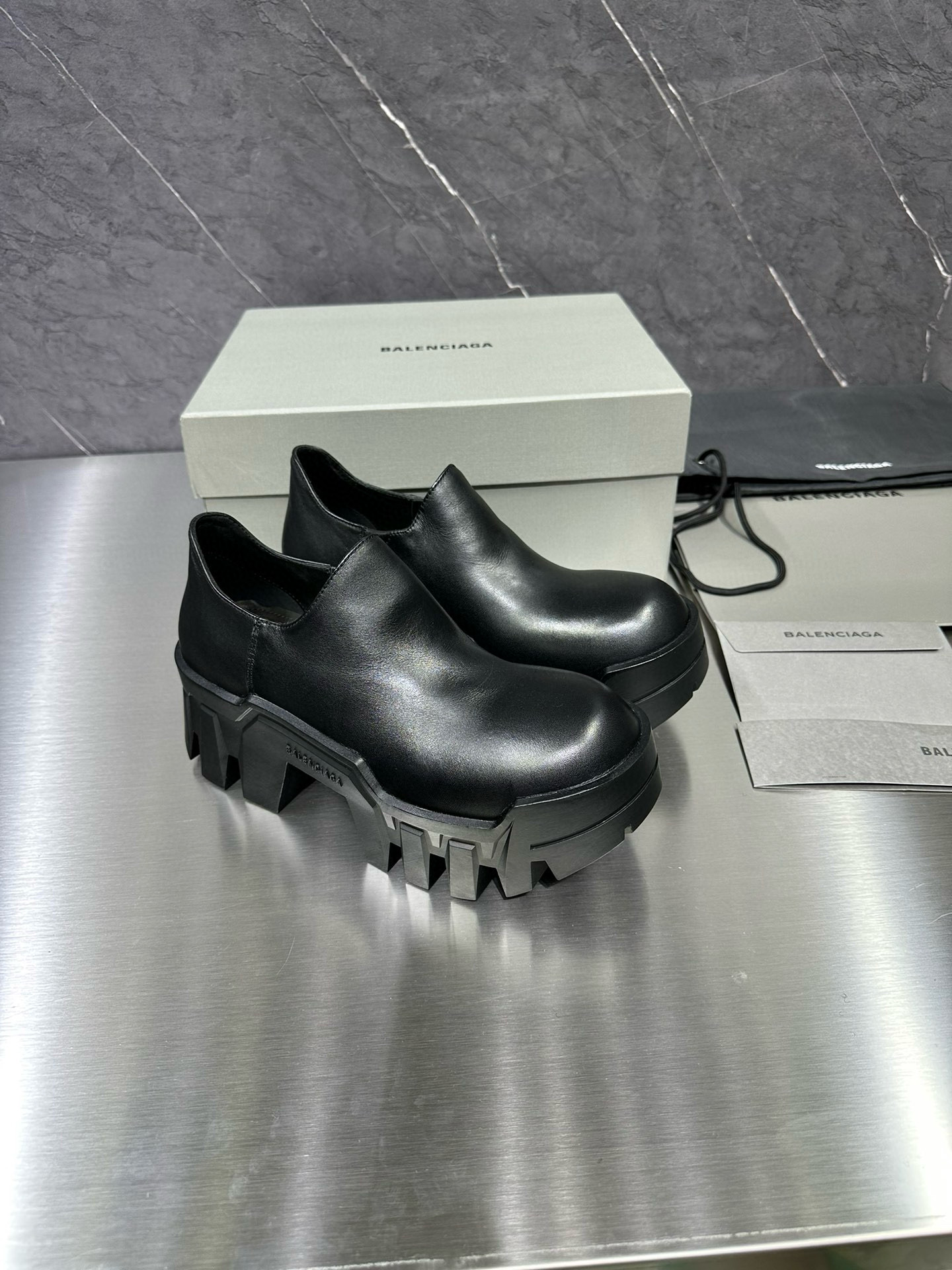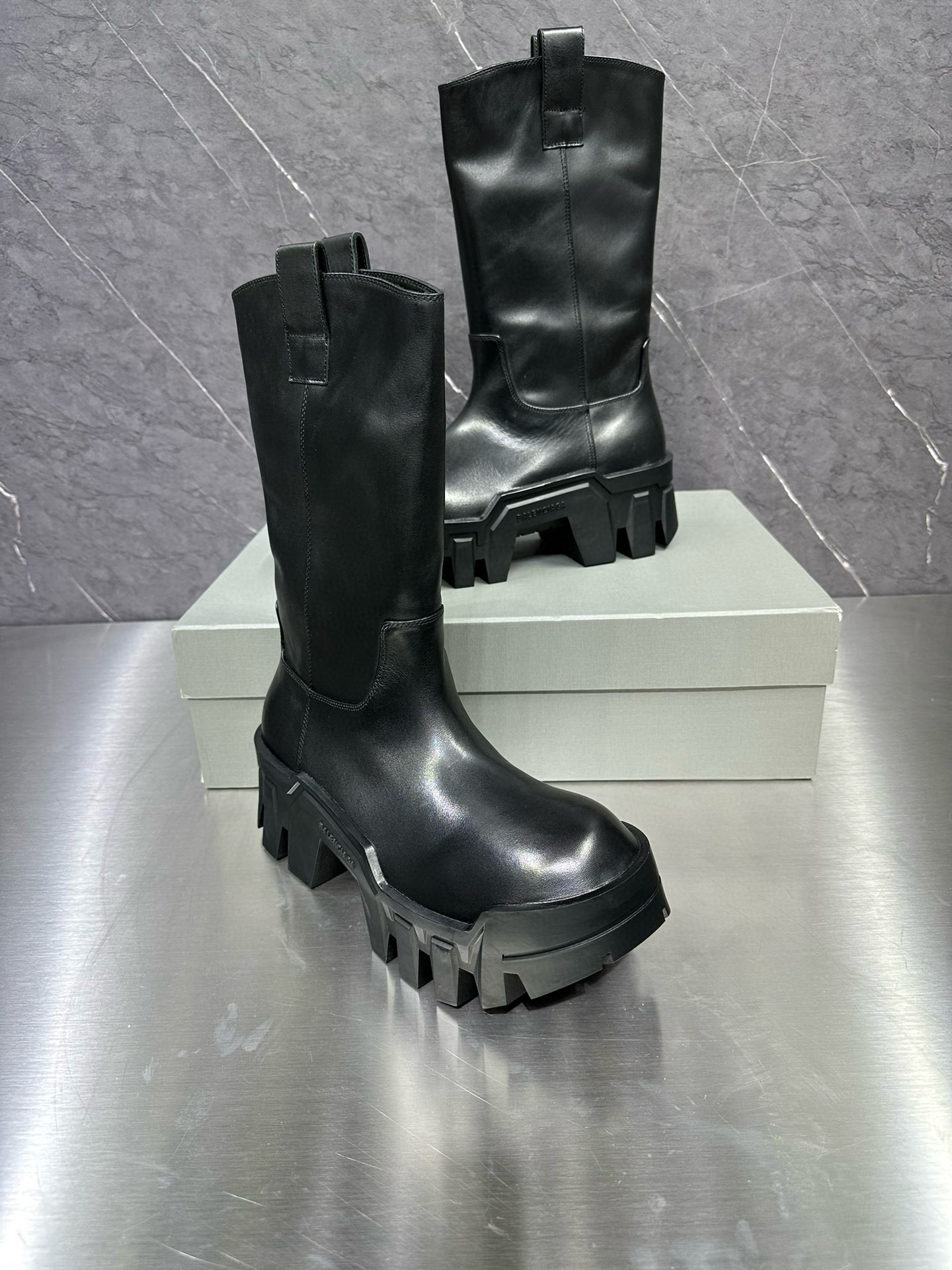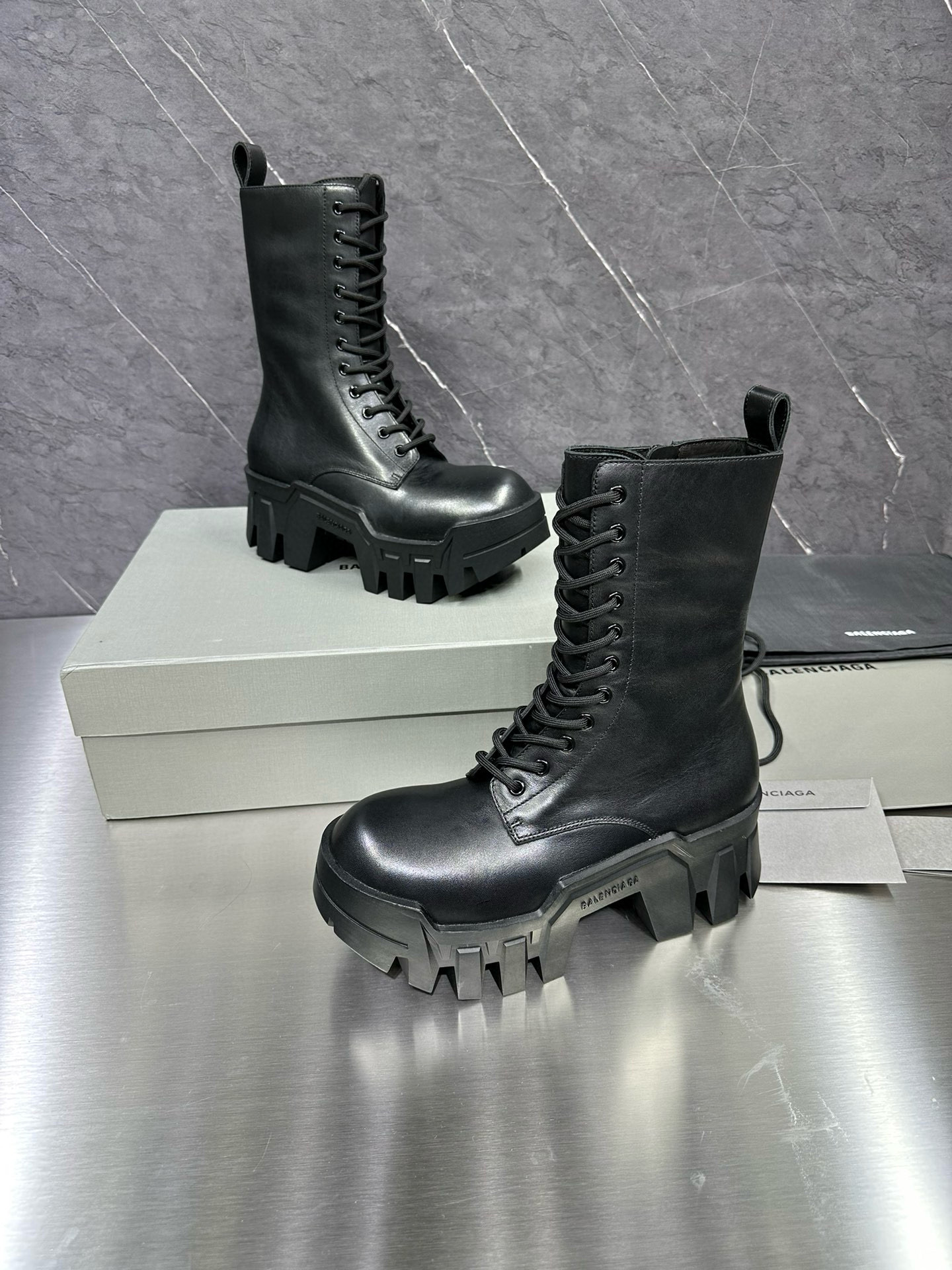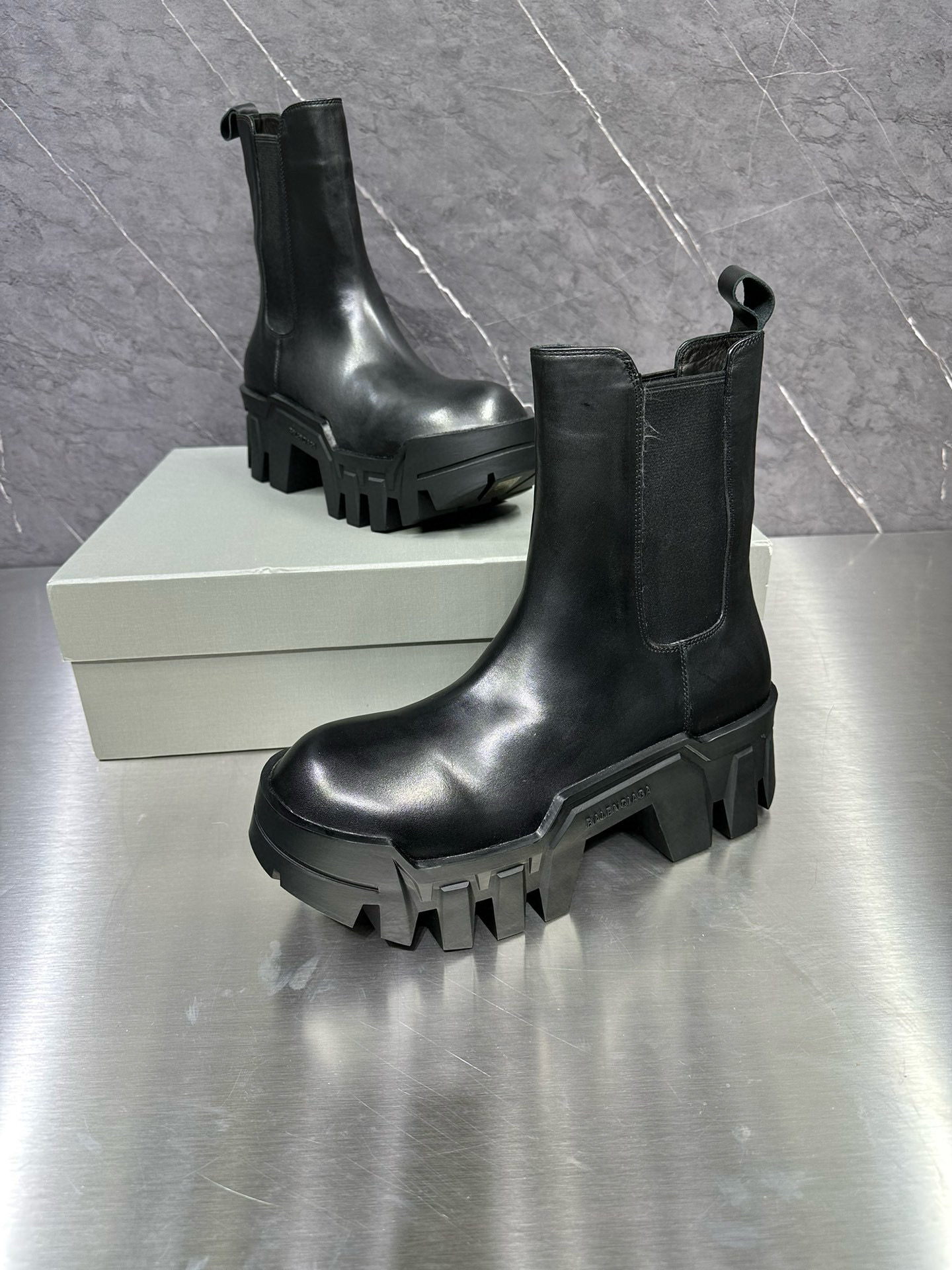 NIGO Balenciaga Men's Bulldozer Fall and Winter Black Calfskin Thick Sole Mid Calf Boots Low Derby Shoes #nigo98118