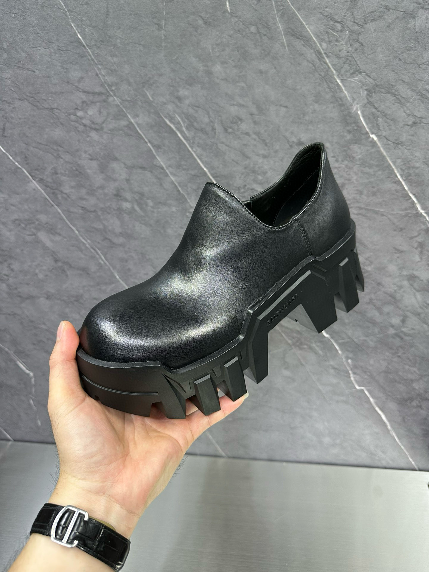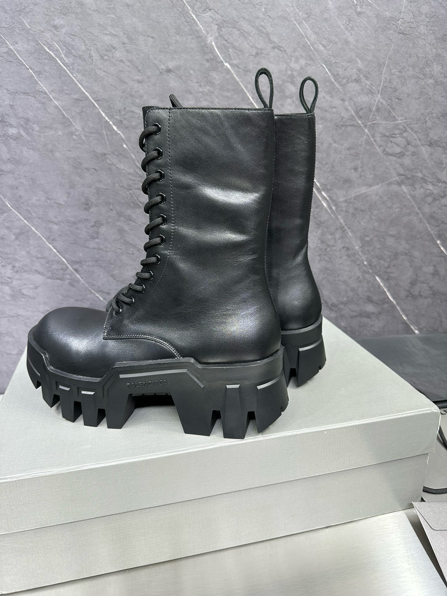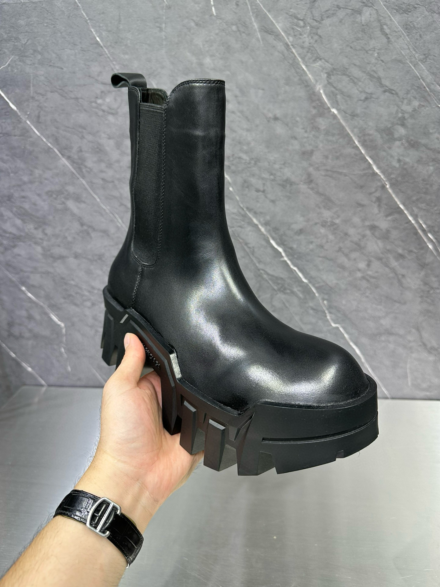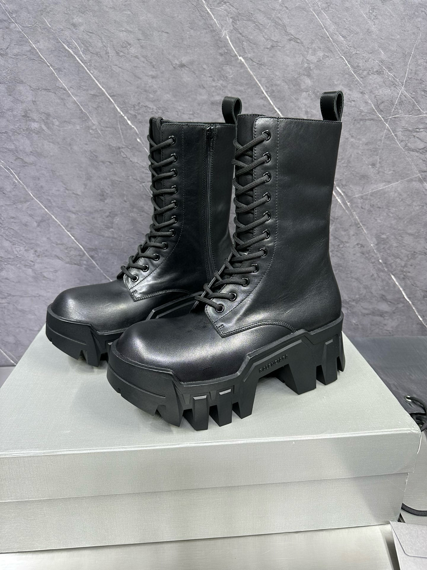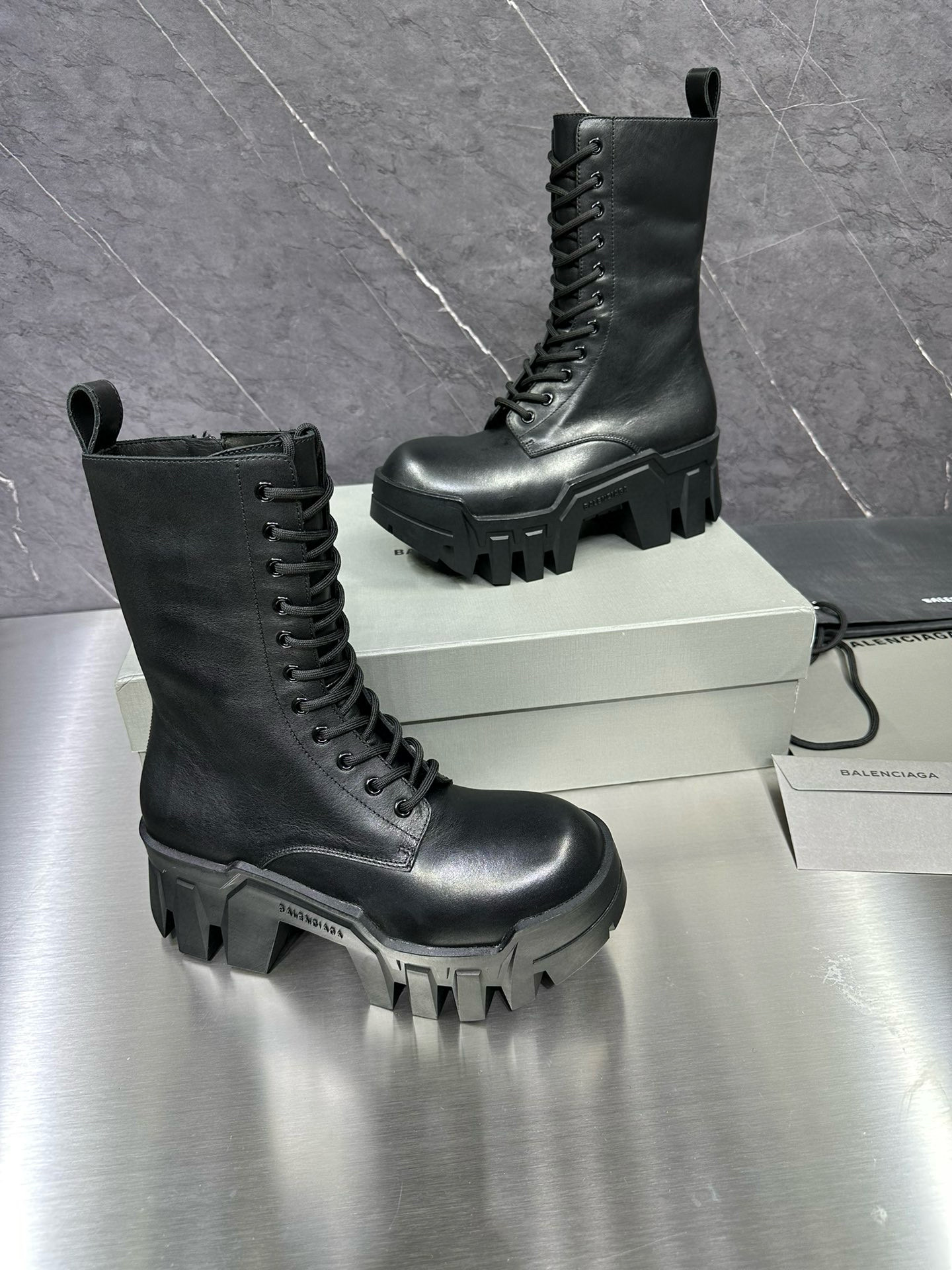 NIGO Balenciaga Men's Bulldozer Fall and Winter Black Calfskin Thick Sole Mid Calf Boots Low Derby Shoes #nigo98118