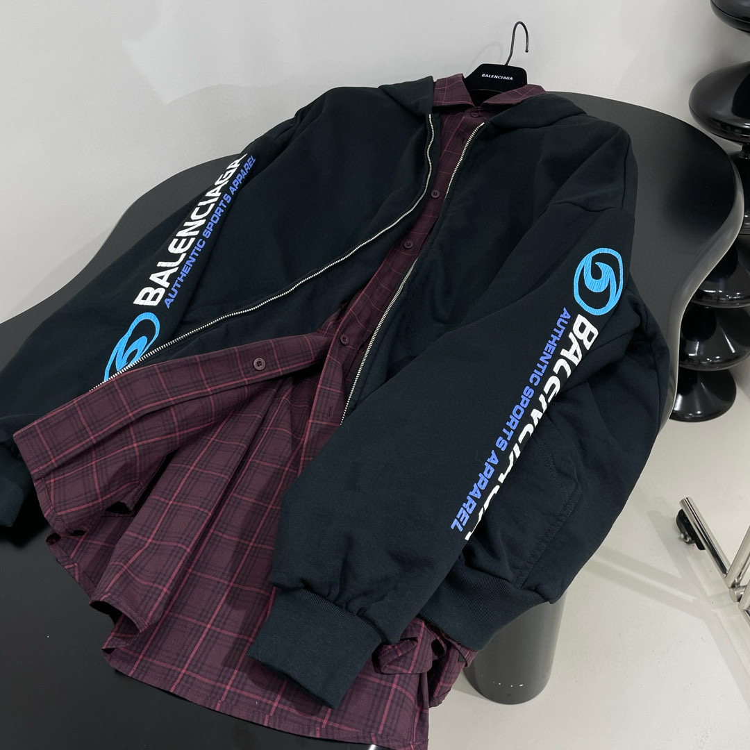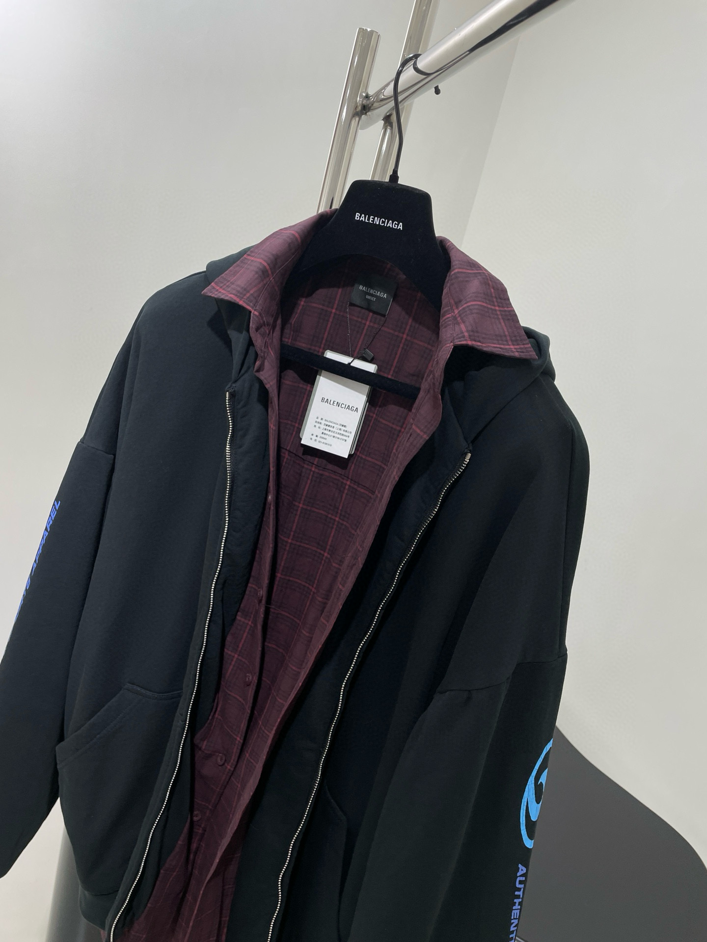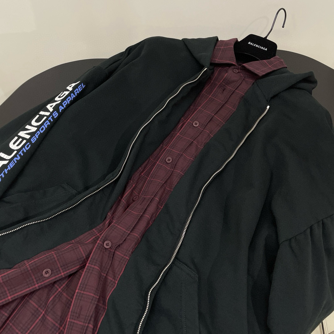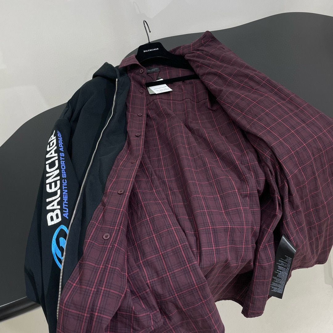 NIGO Balenciaga Men's Fall And Winter False Two Piece Single Breasted Plaid Shirt Hooded Zipper Long Sleeved Jacket #nigo98921