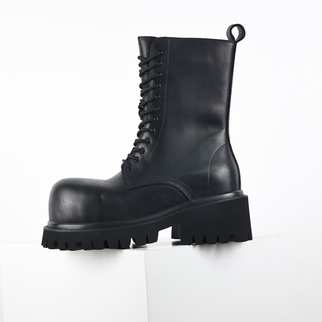 NIGO Balenciaga Men's Fall Winter Black Stomper Leather Boots Zipper Round Toe Casual Shoes Ngvp #nigo9646