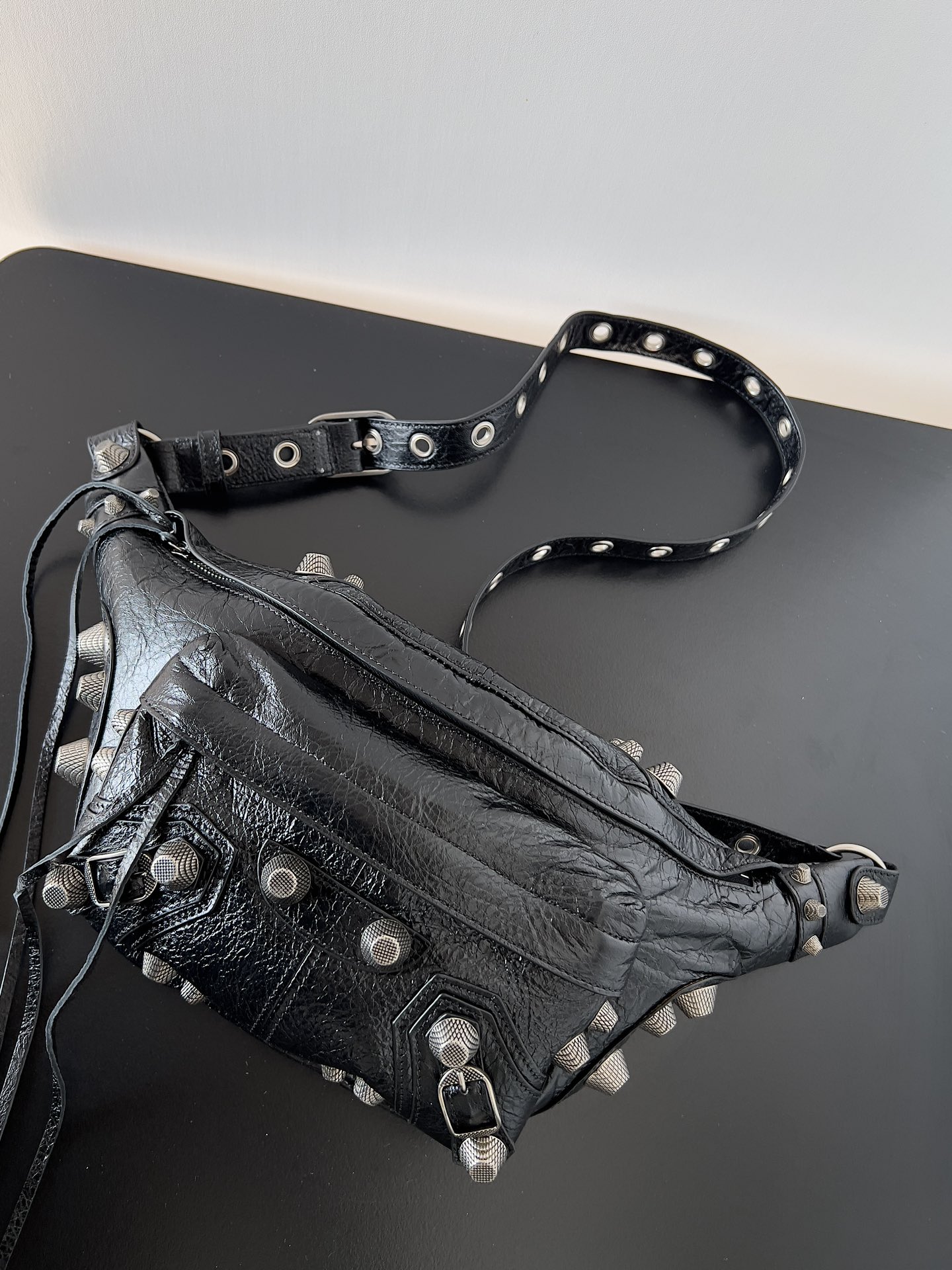 NIGO Balenciaga Men's Fashion LE CAGOLE Medium Fine Grain Sheep Leather Black Adjustable Belt Rivet Beltpack Casual Bag Ngvp #nigo8647