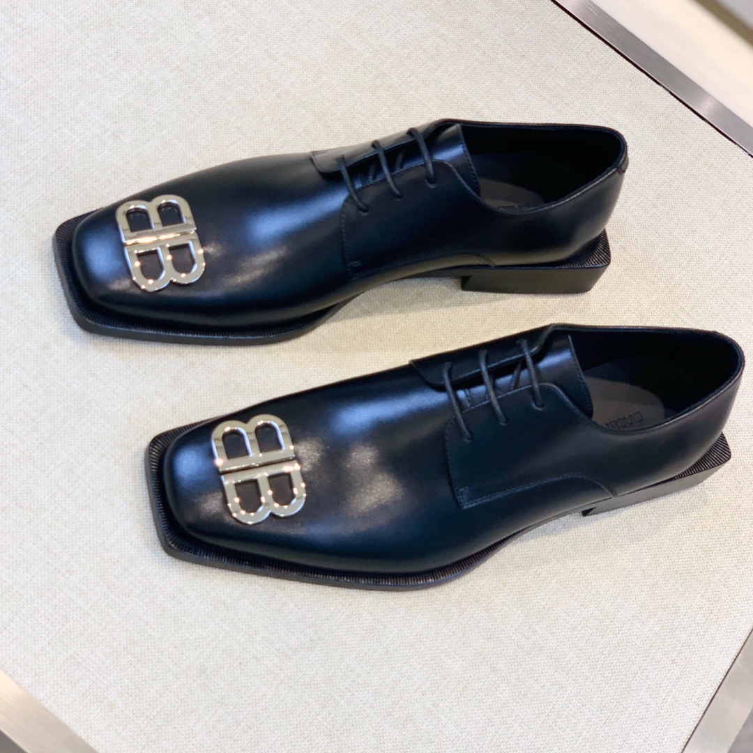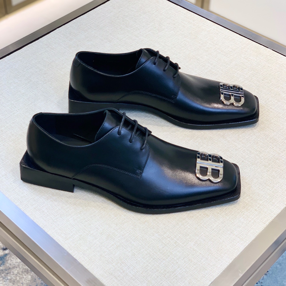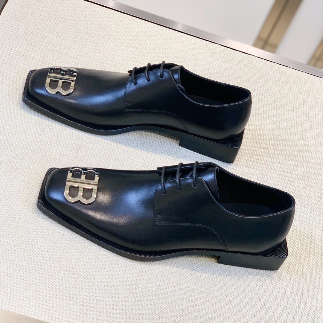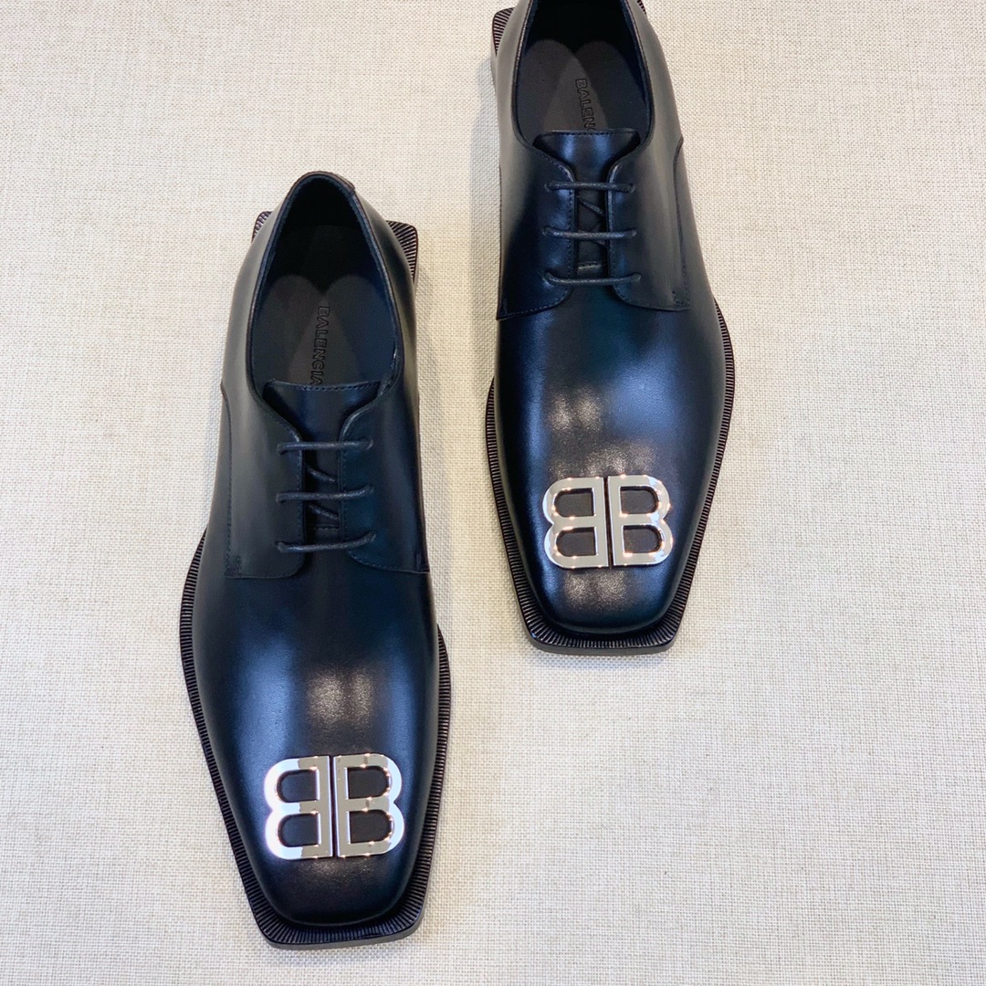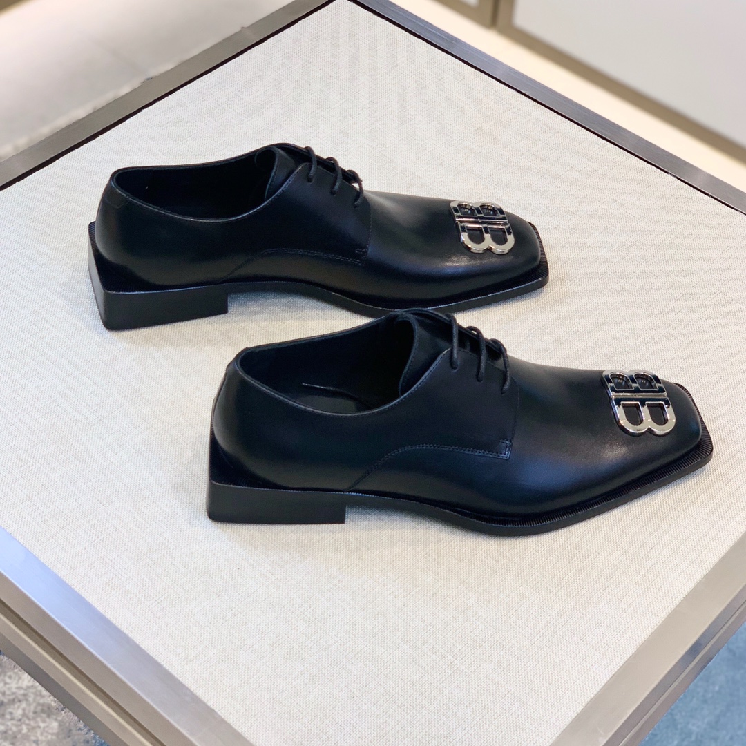 NIGO Balenciaga Men's Solid Colour Square Toe Metal BB Logo Cowhide Leather Shoes #nigo77218