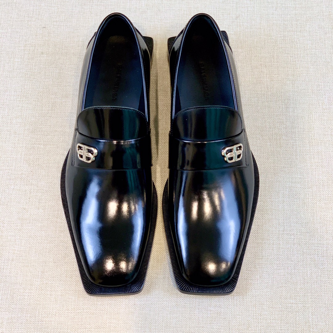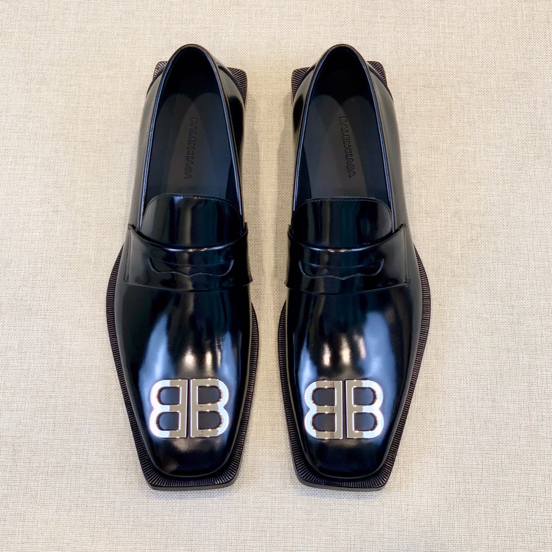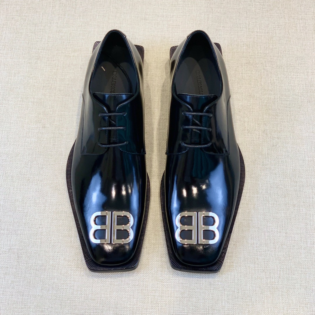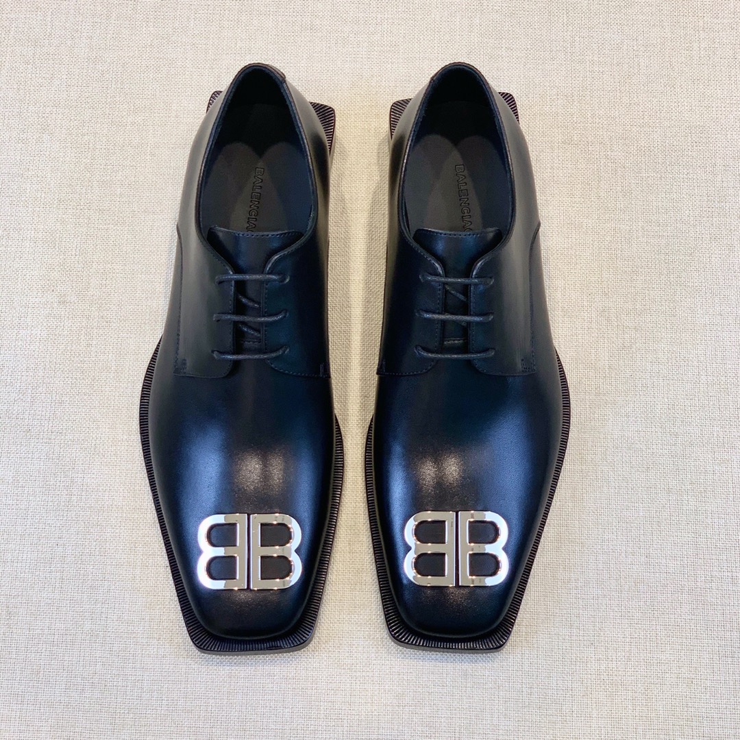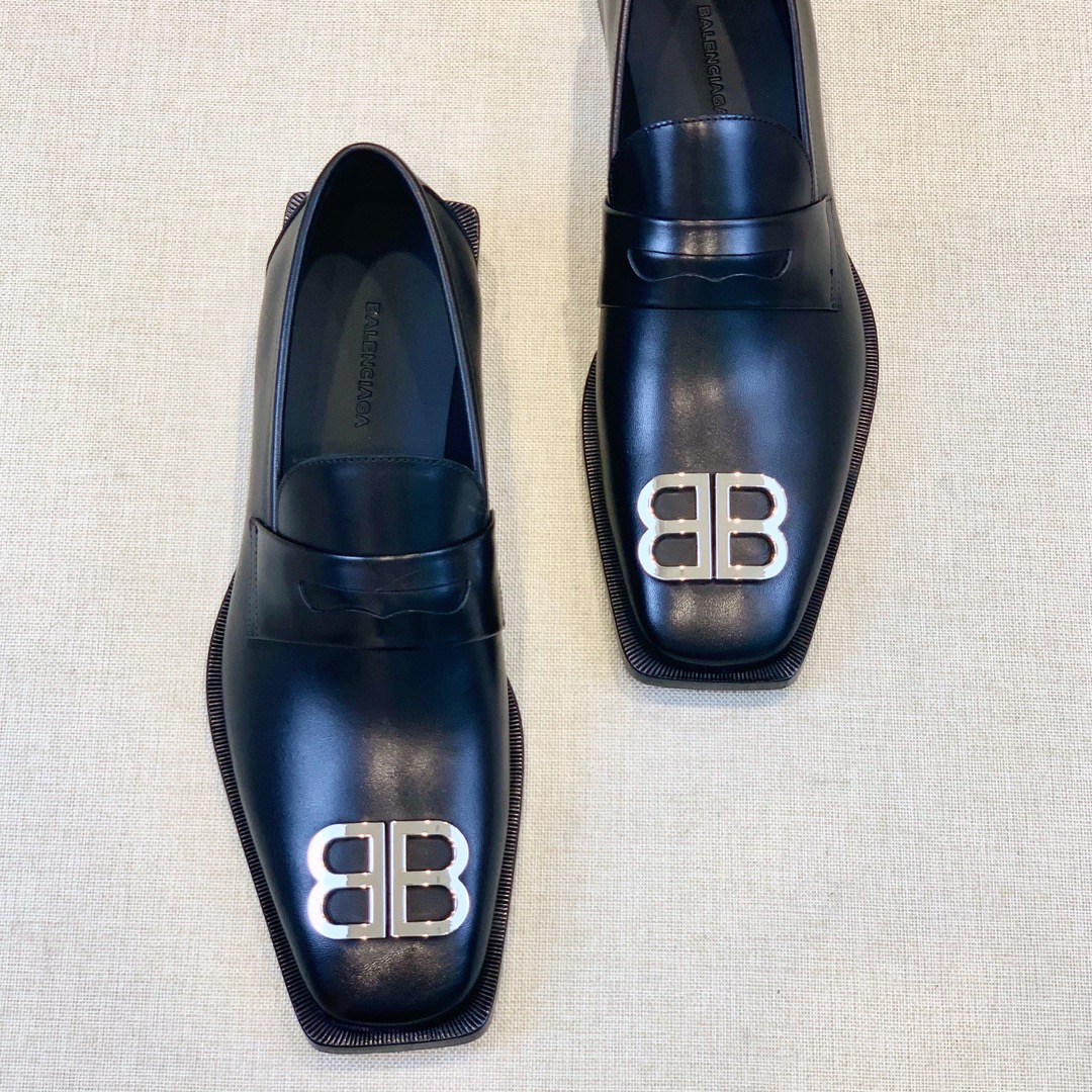 NIGO Balenciaga Men's Solid Colour Square Toe Metal BB Logo Cowhide Leather Shoes #nigo77218