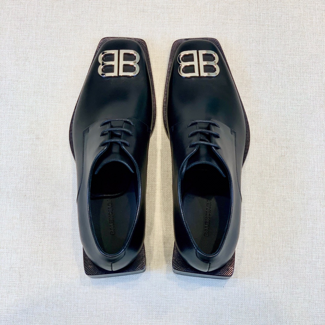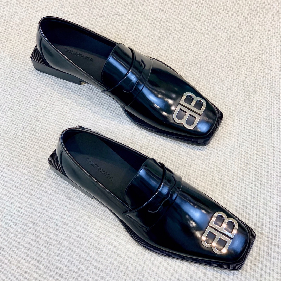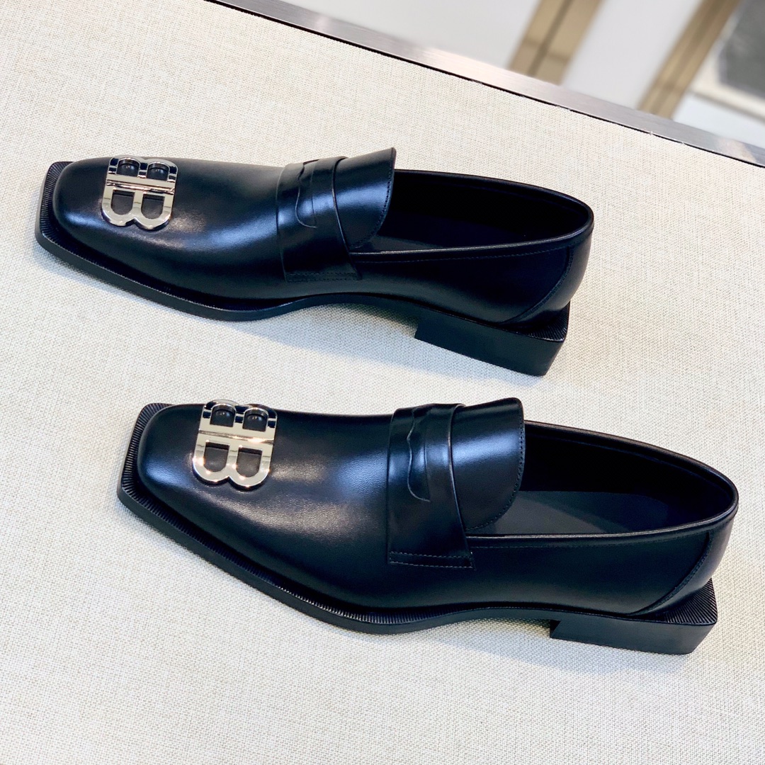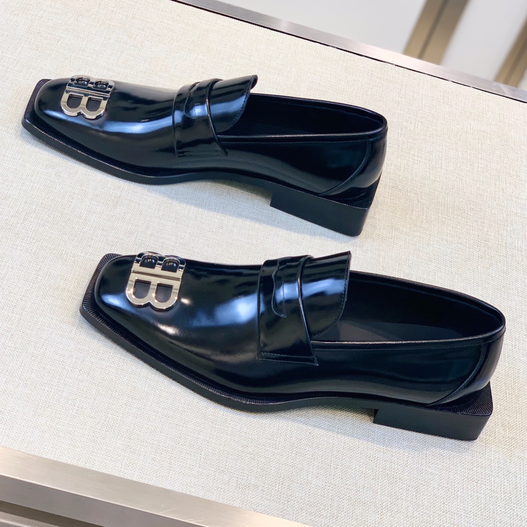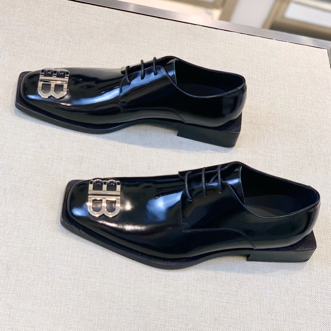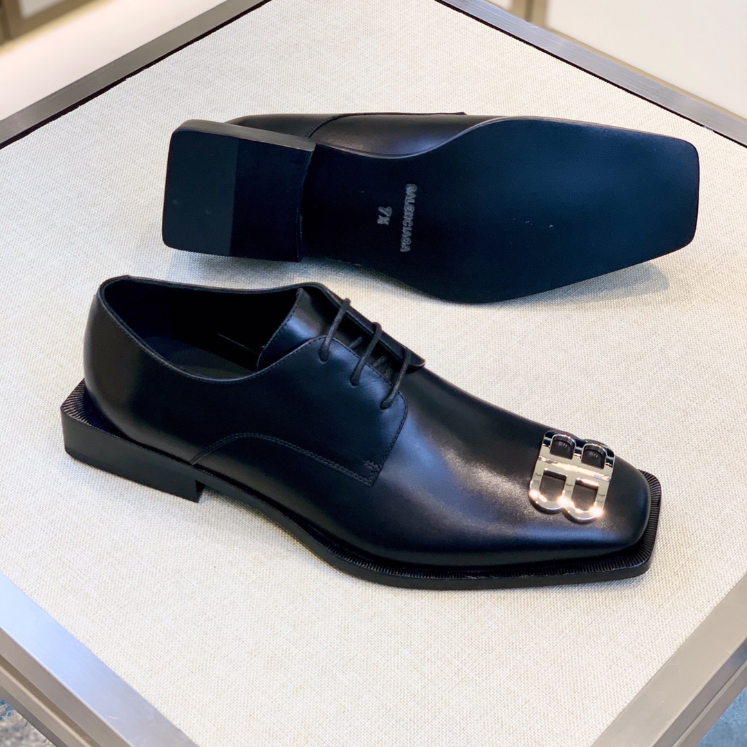NIGO Balenciaga Men's Solid Colour Square Toe Metal BB Logo Cowhide Leather Shoes #nigo77218
