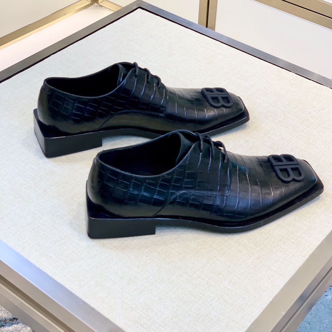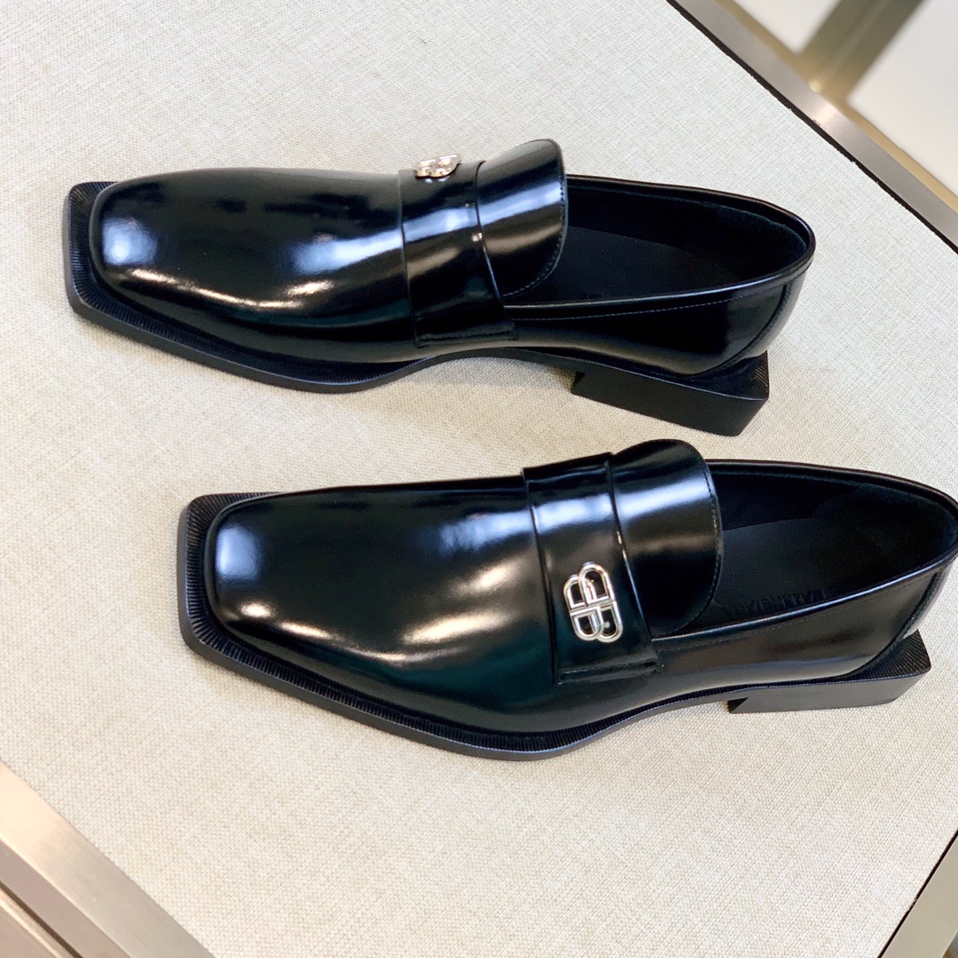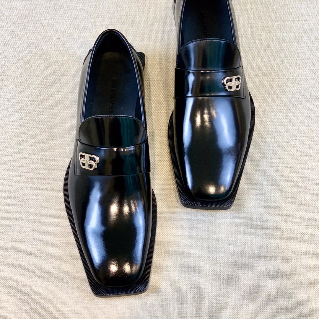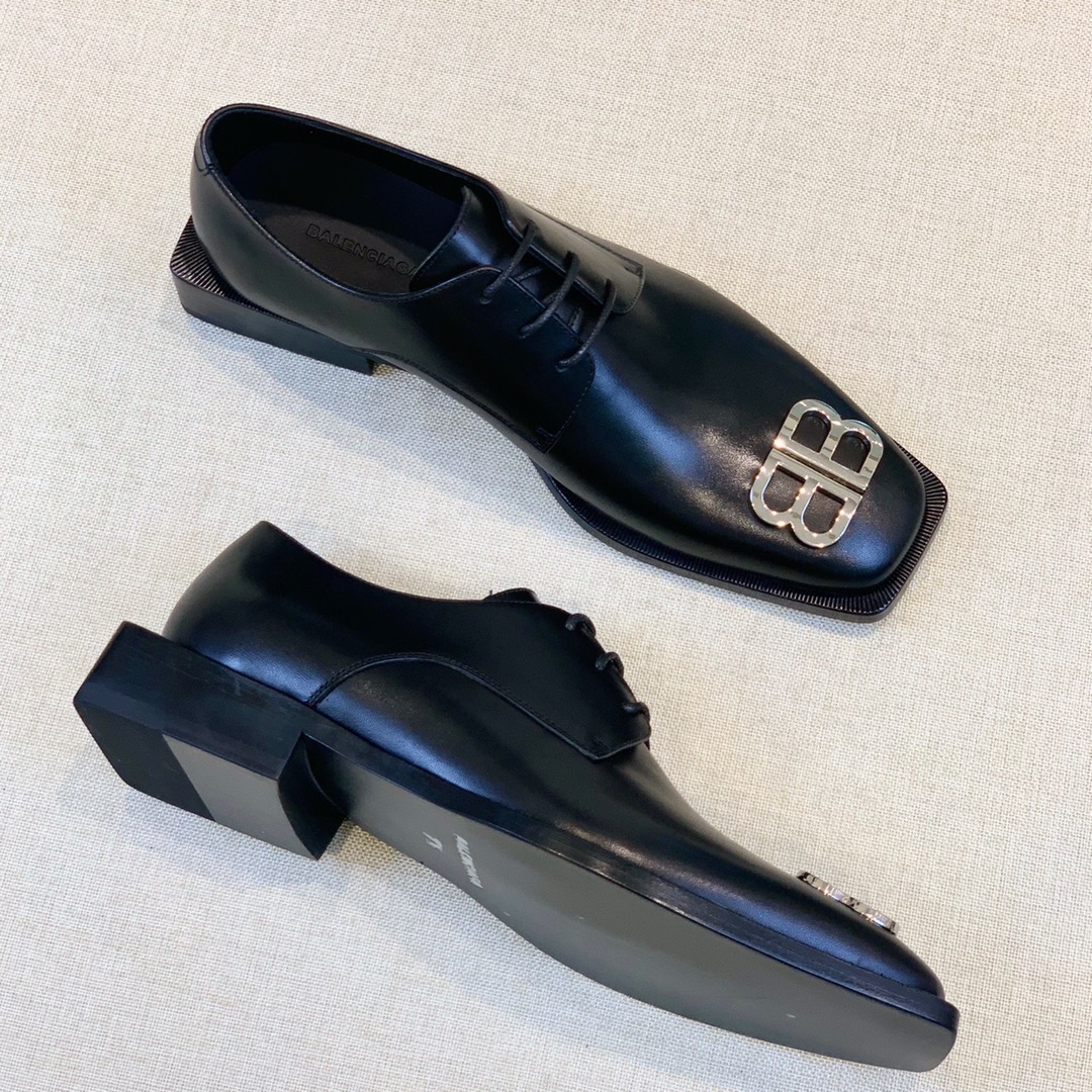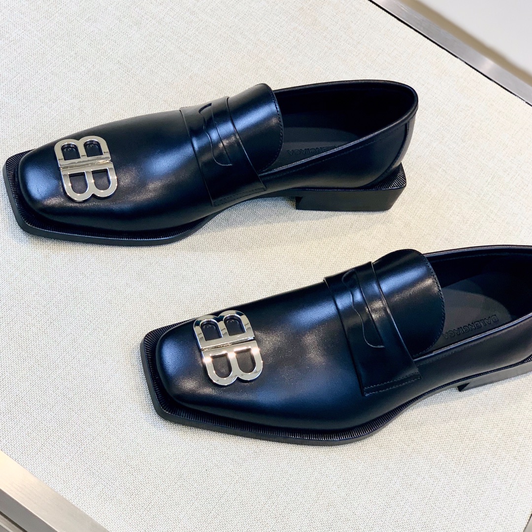 NIGO Balenciaga Men's Solid Colour Square Toe Metal BB Logo Cowhide Leather Shoes #nigo77218