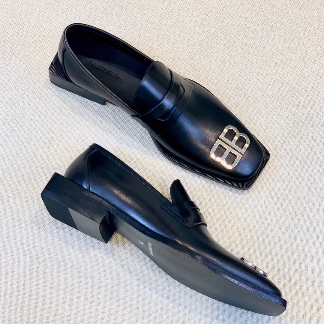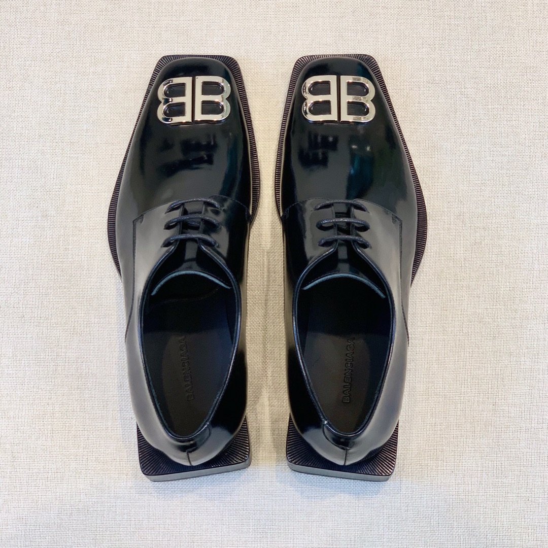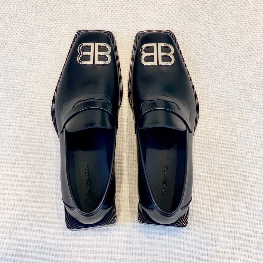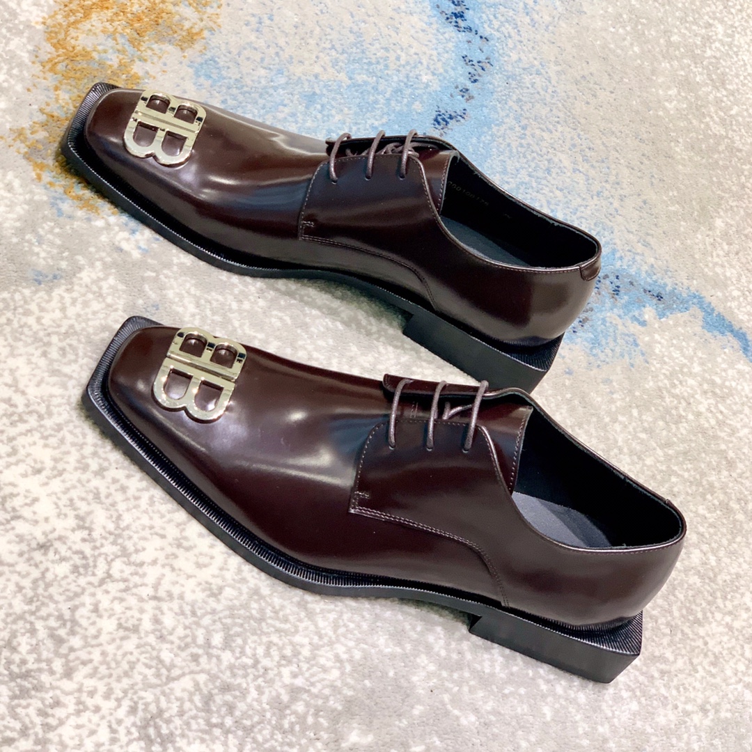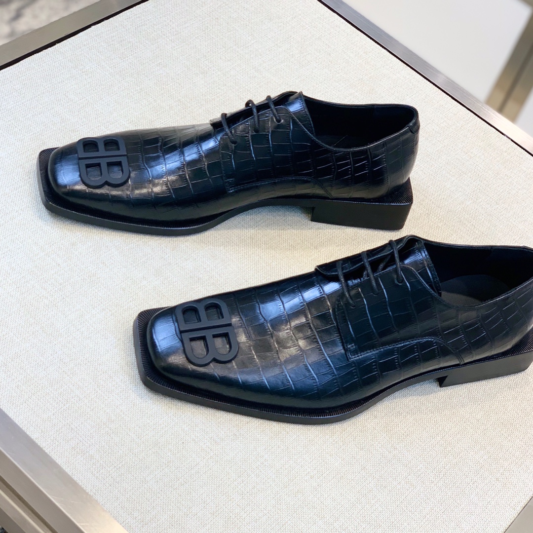 NIGO Balenciaga Men's Solid Colour Square Toe Metal BB Logo Cowhide Leather Shoes #nigo77218