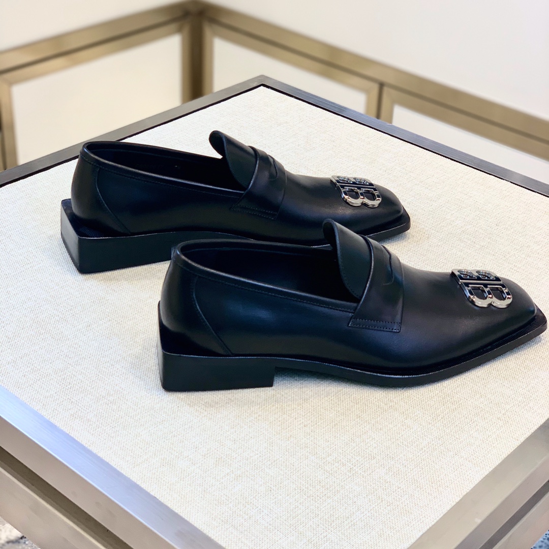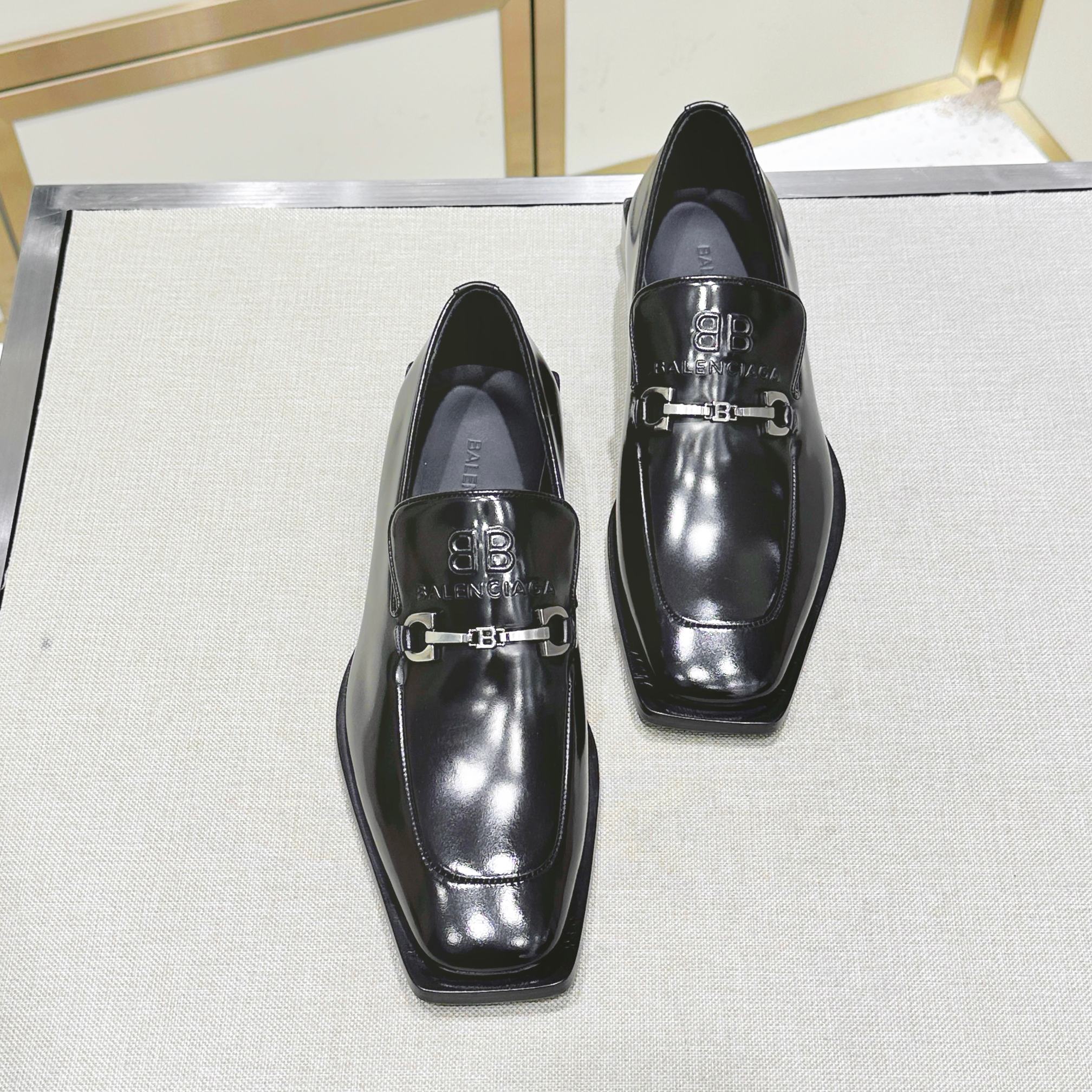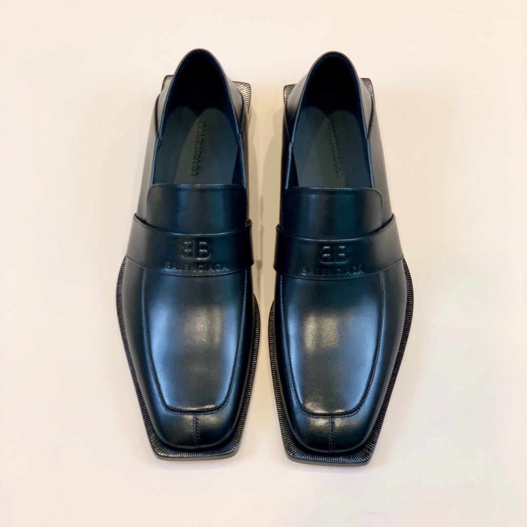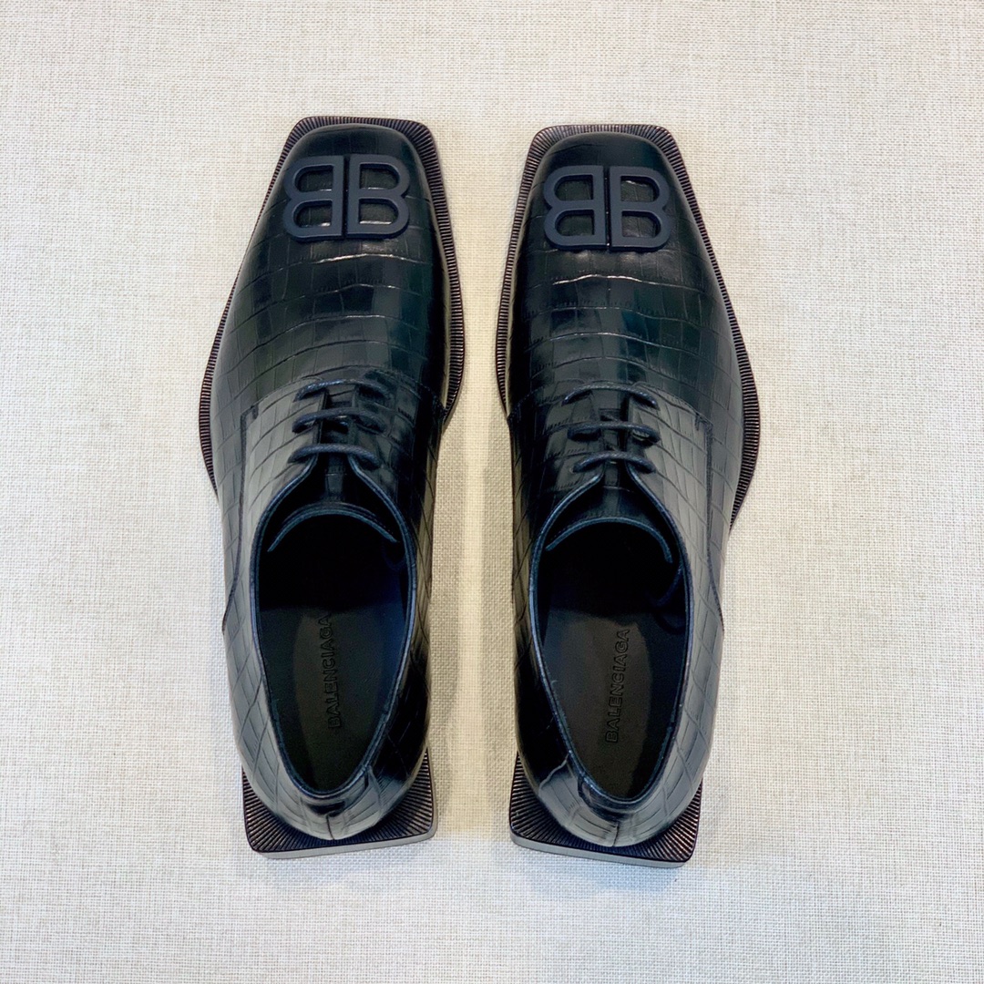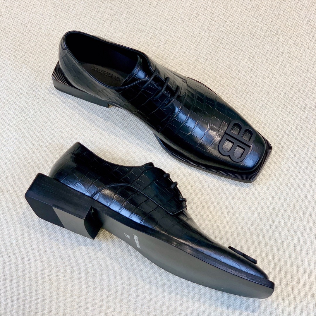 NIGO Balenciaga Men's Solid Colour Square Toe Metal BB Logo Cowhide Leather Shoes #nigo77218