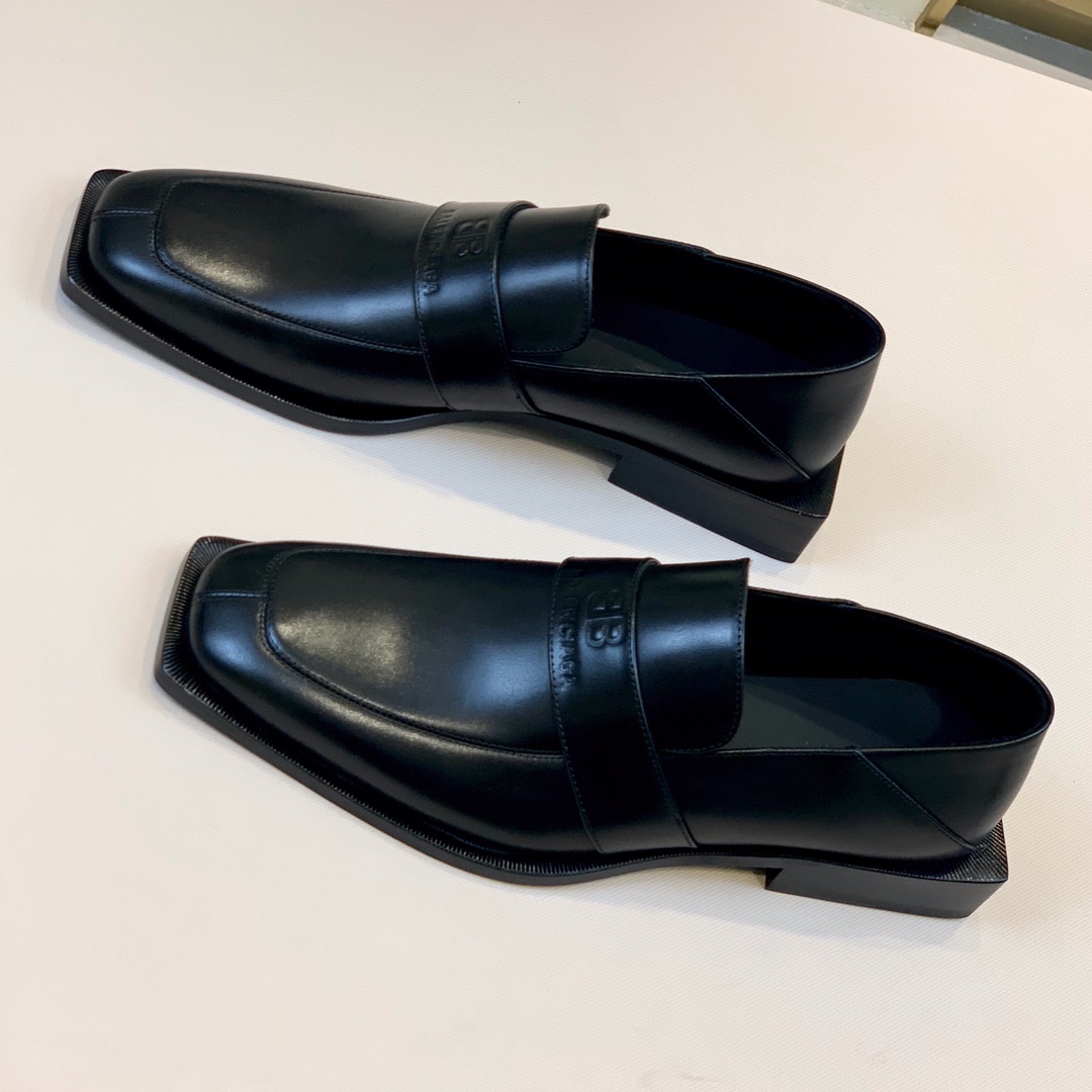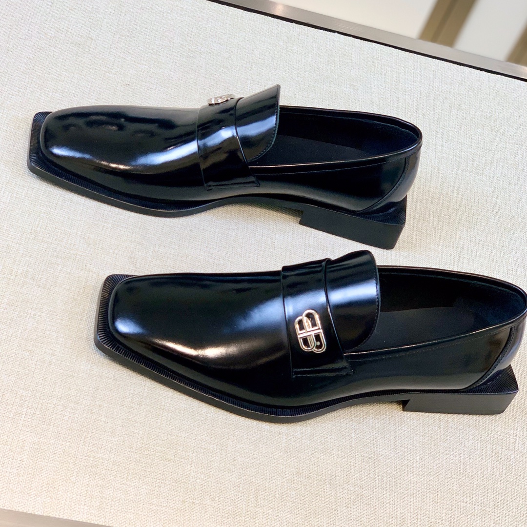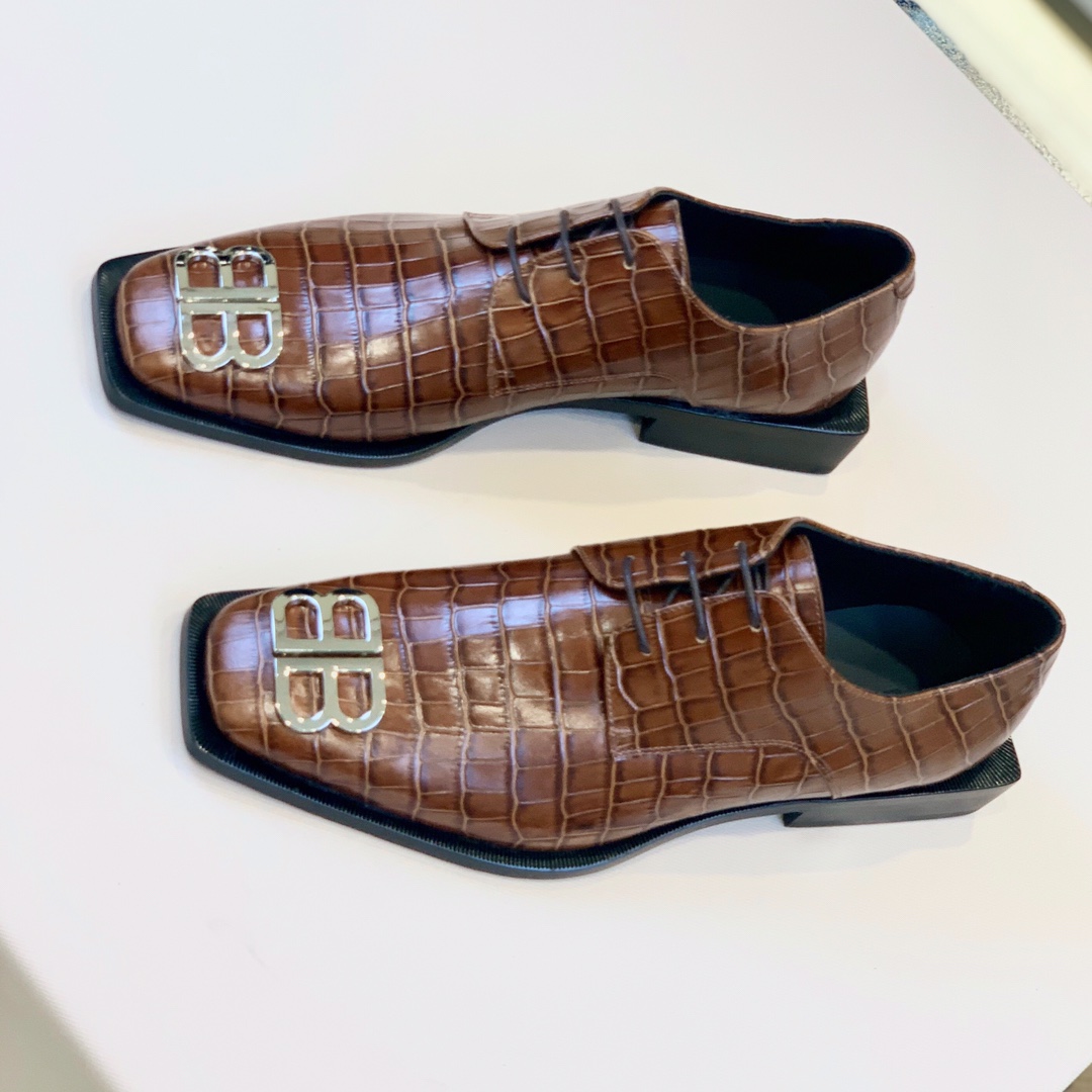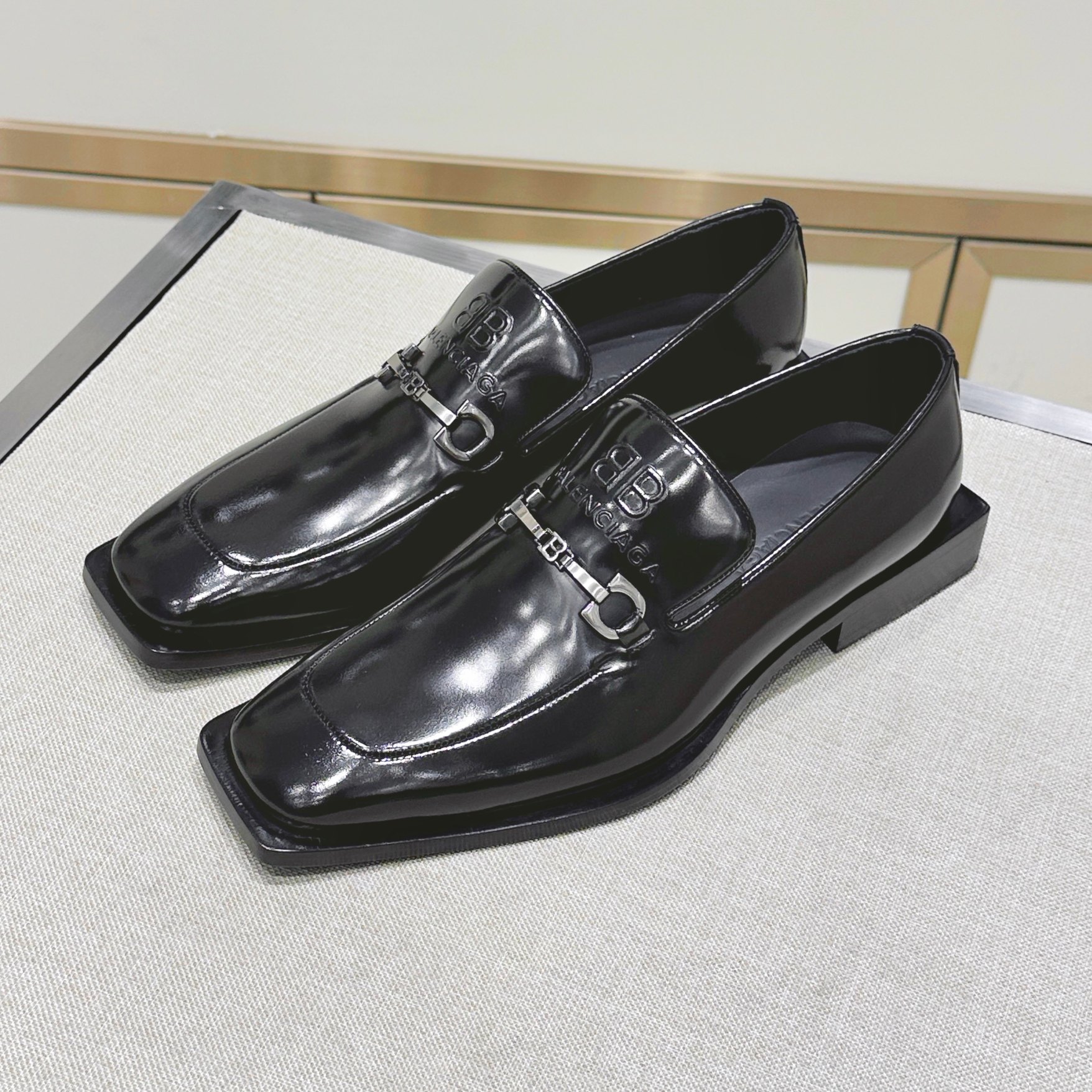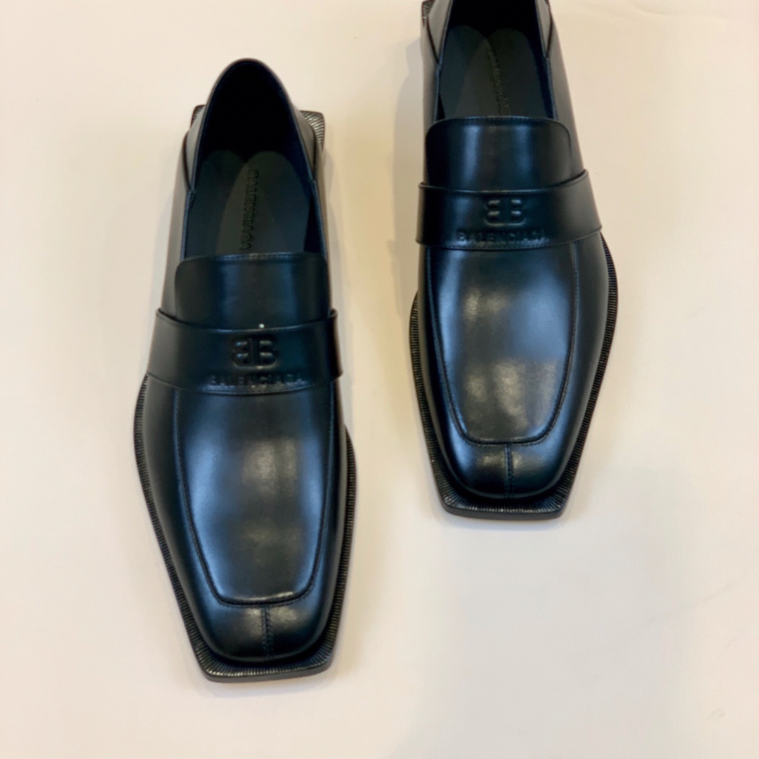 NIGO Balenciaga Men's Solid Colour Square Toe Metal BB Logo Cowhide Leather Shoes #nigo77218