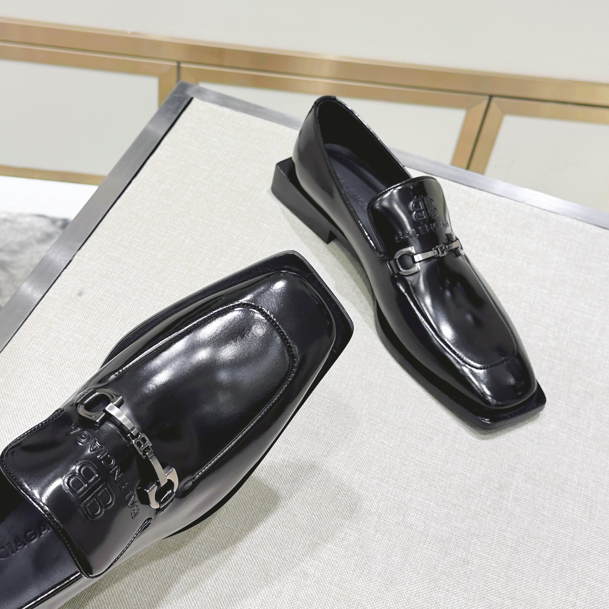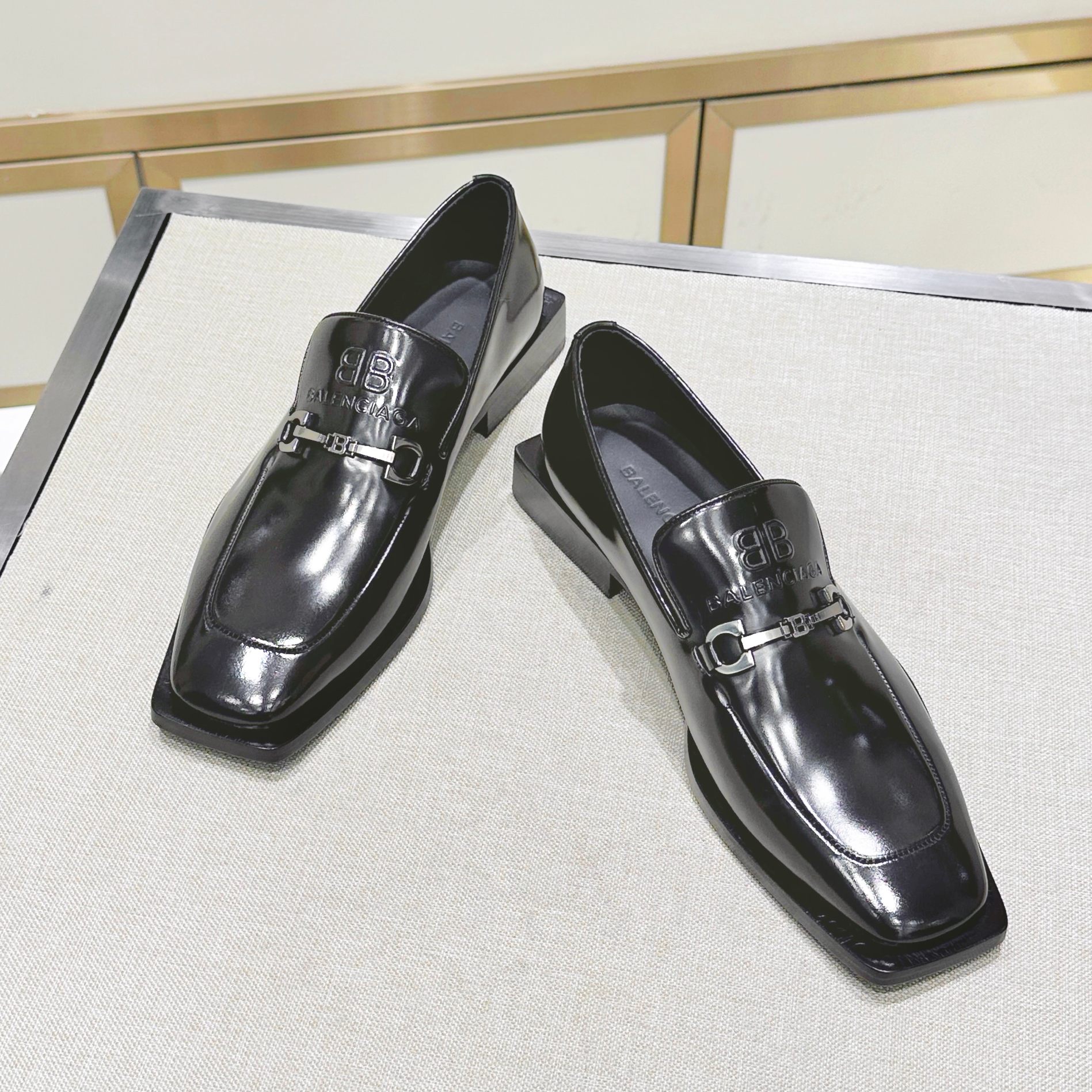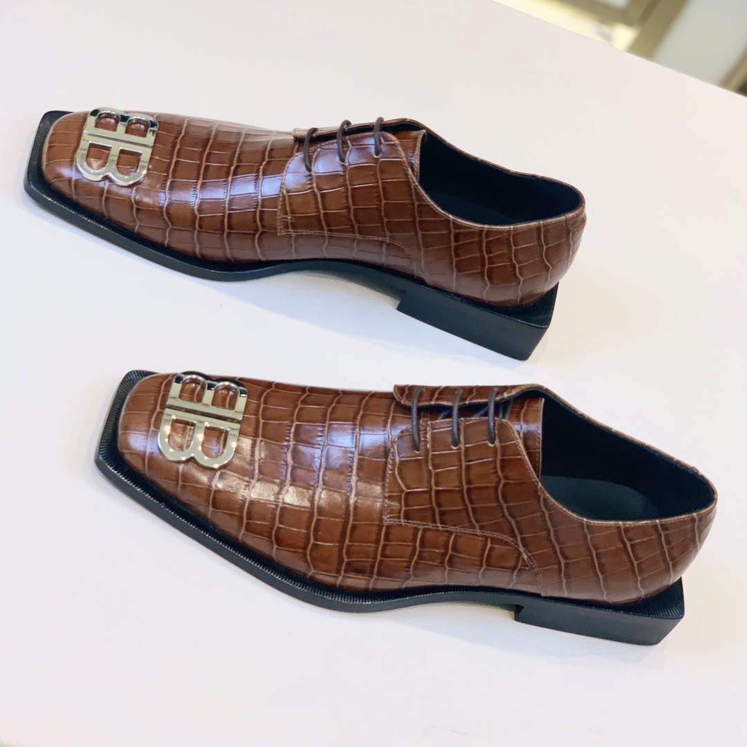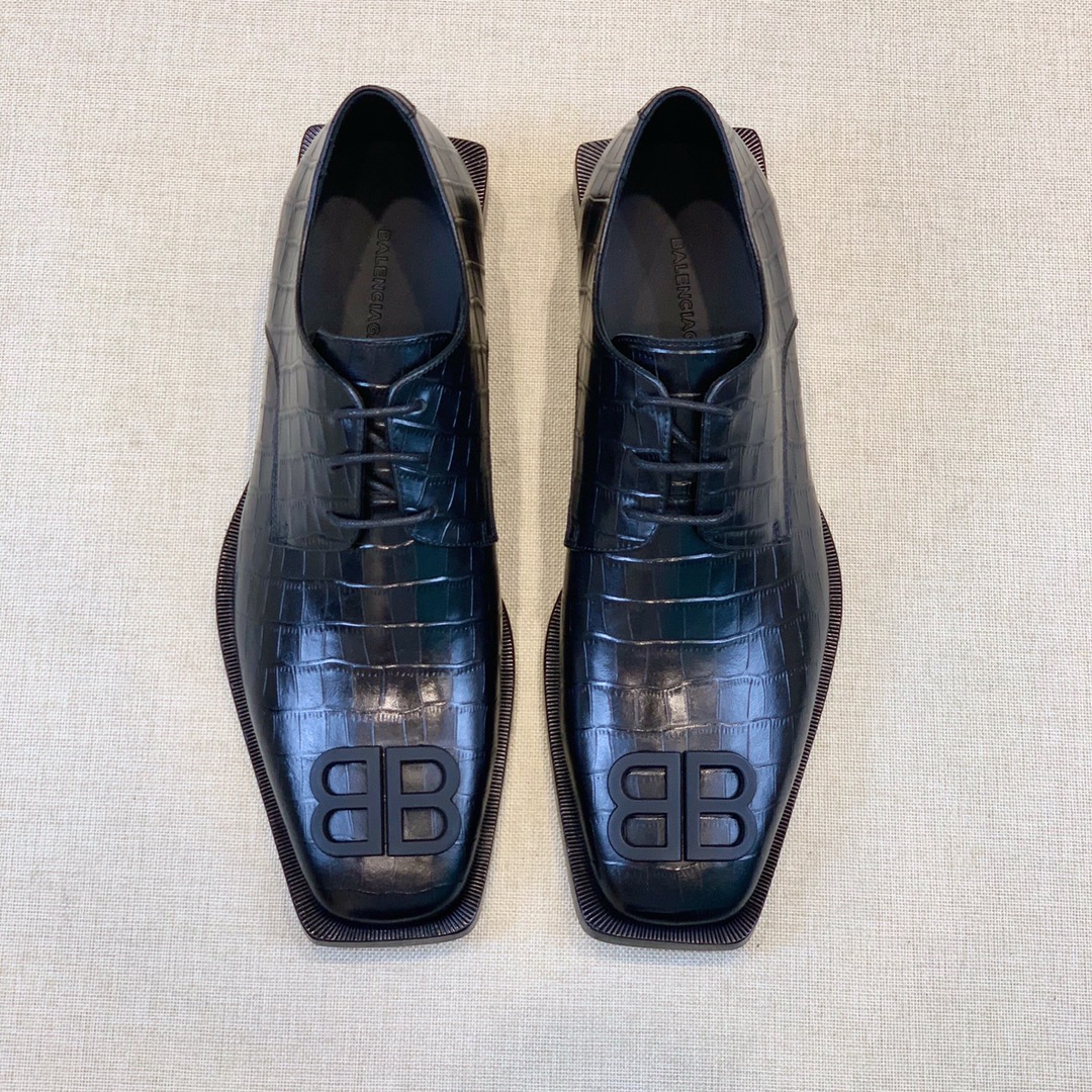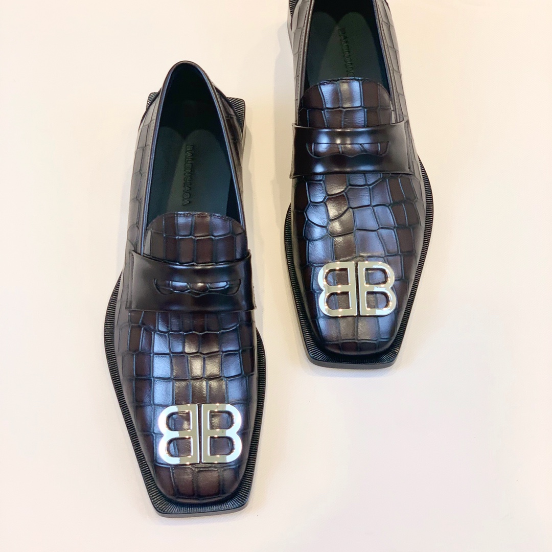 NIGO Balenciaga Men's Solid Colour Square Toe Metal BB Logo Cowhide Leather Shoes #nigo77218