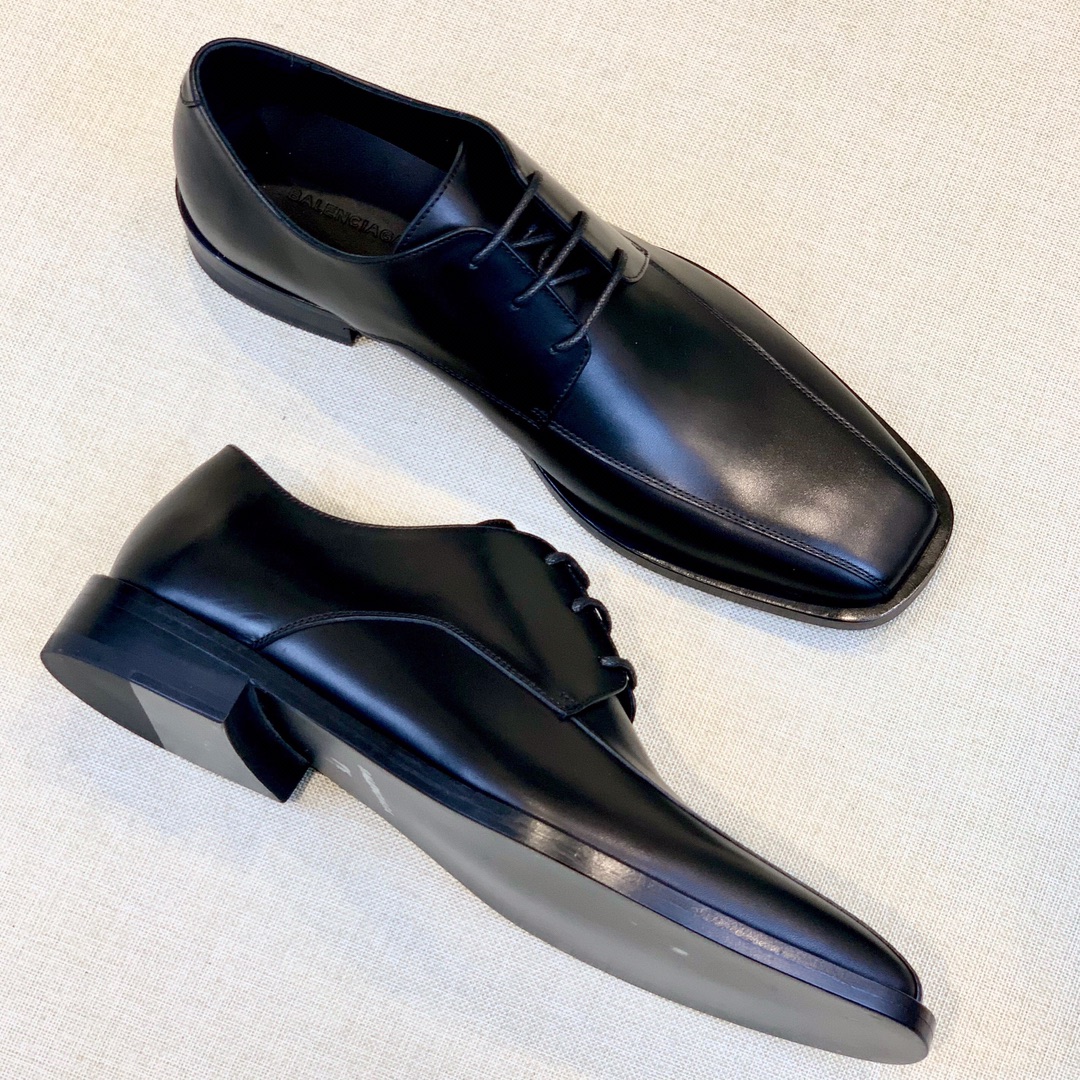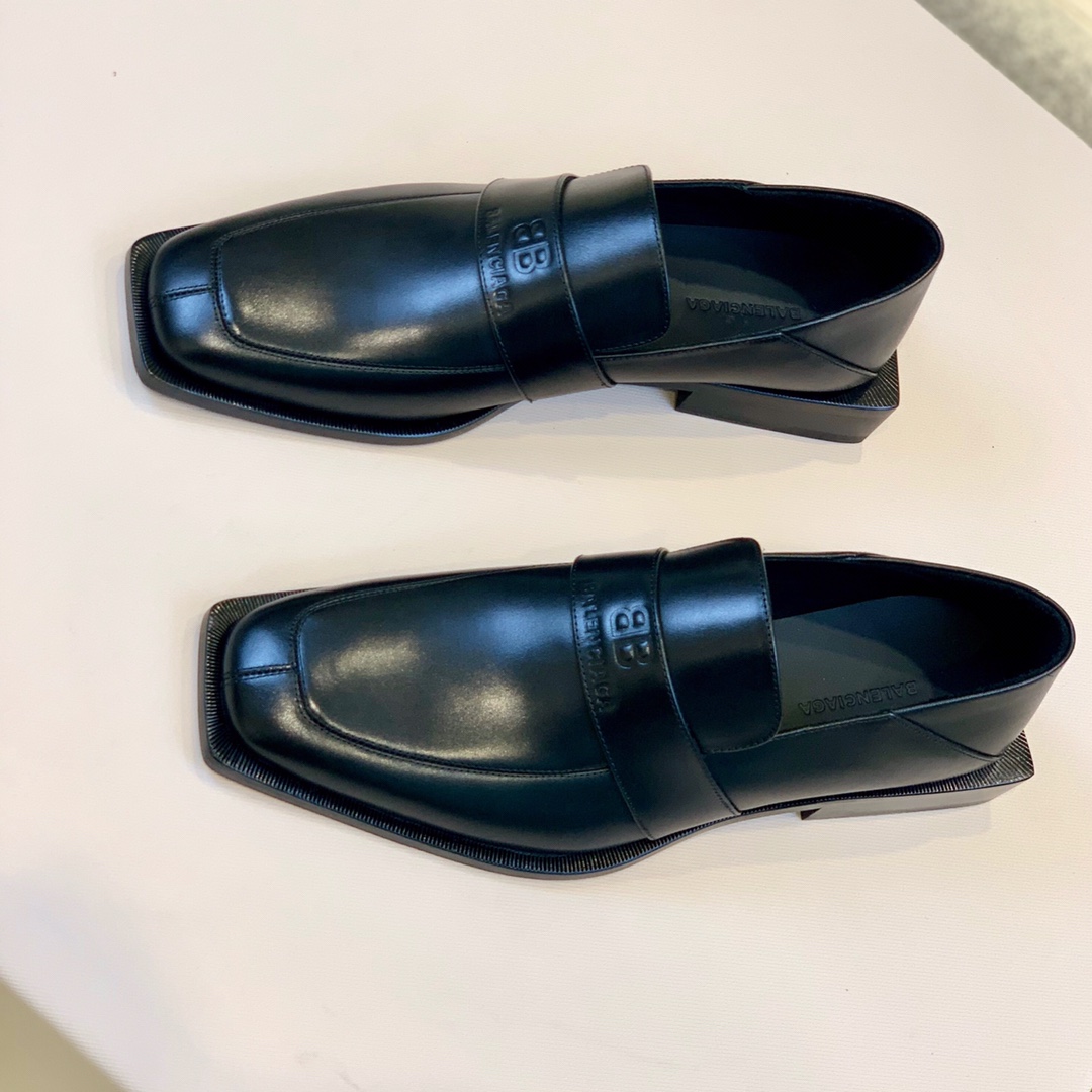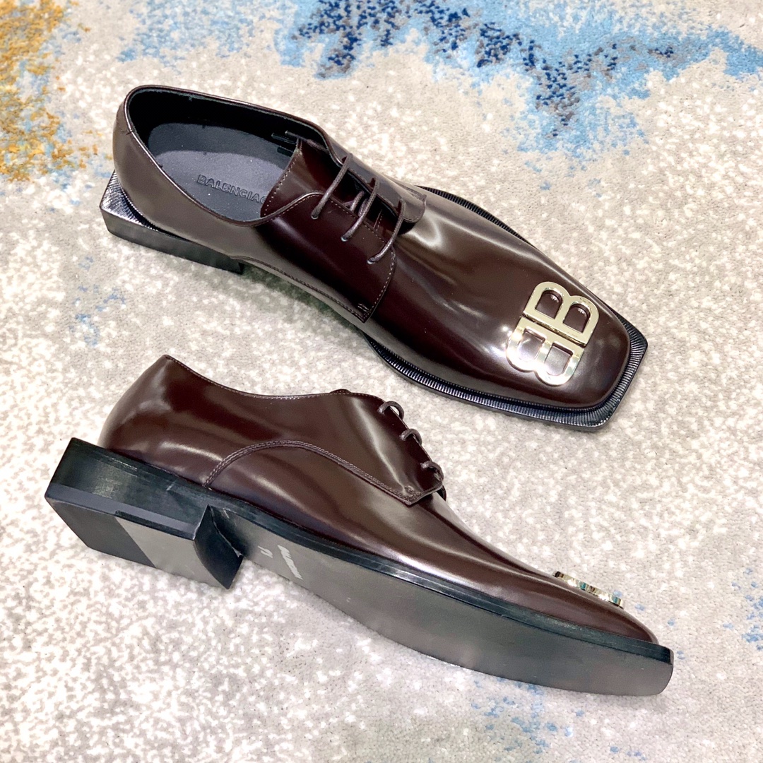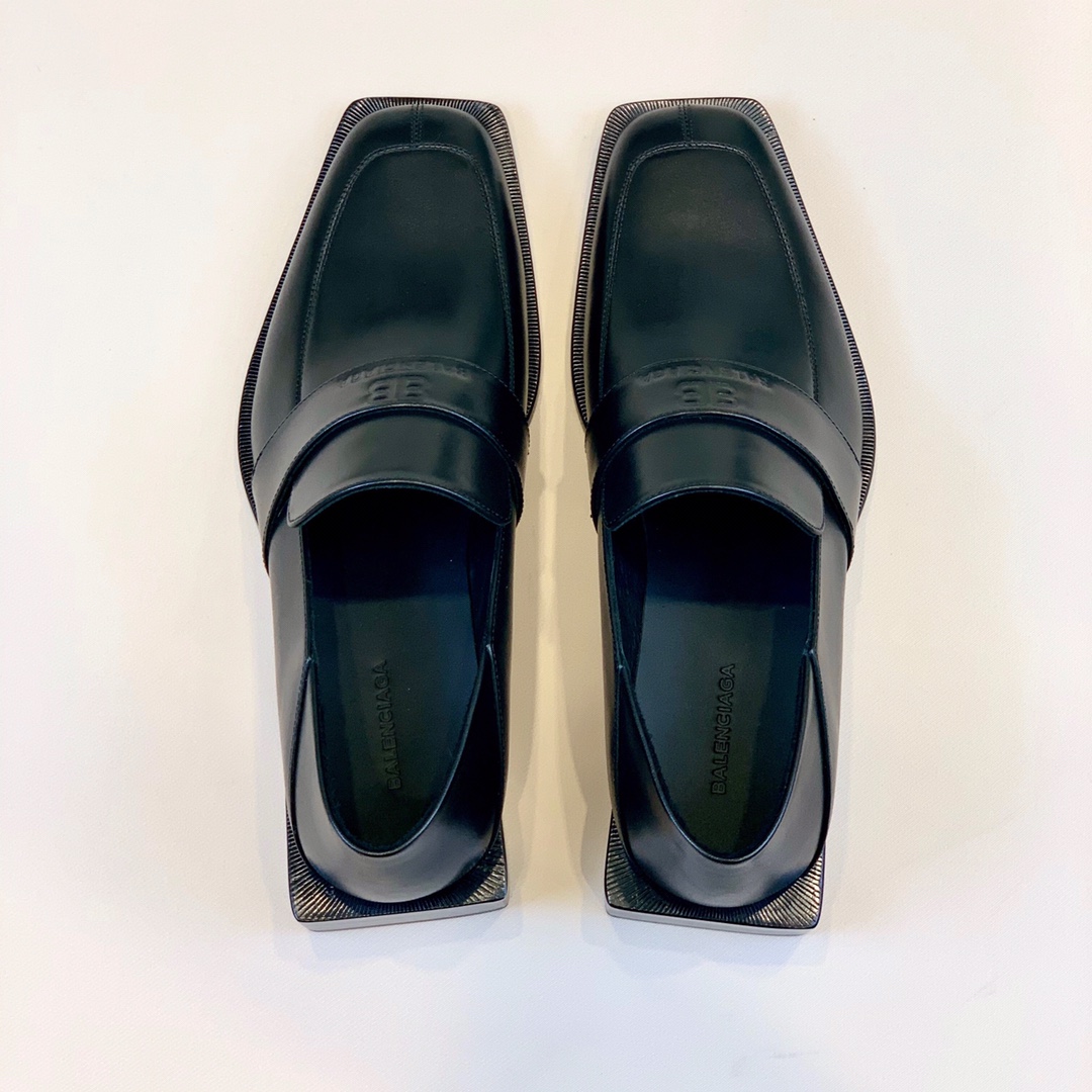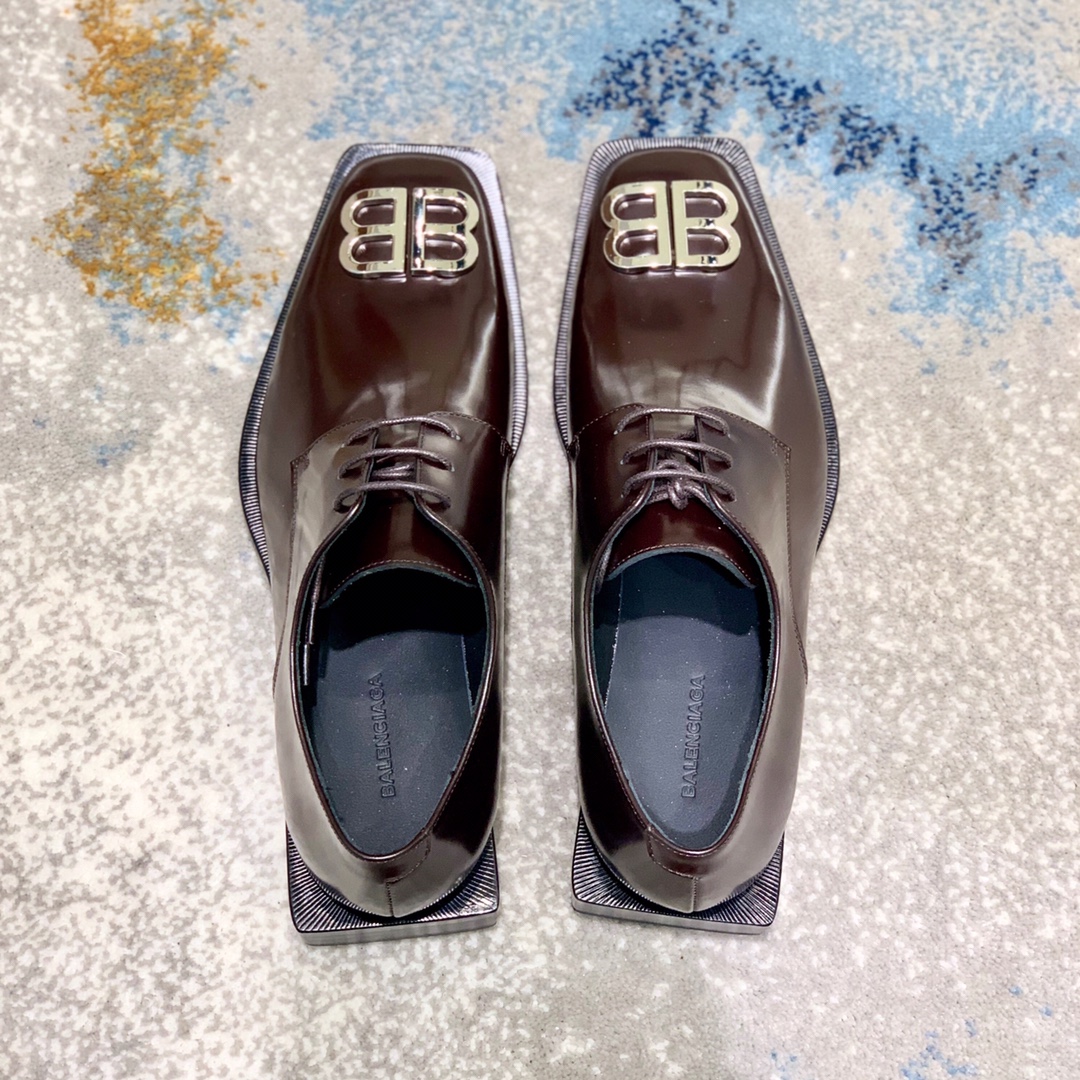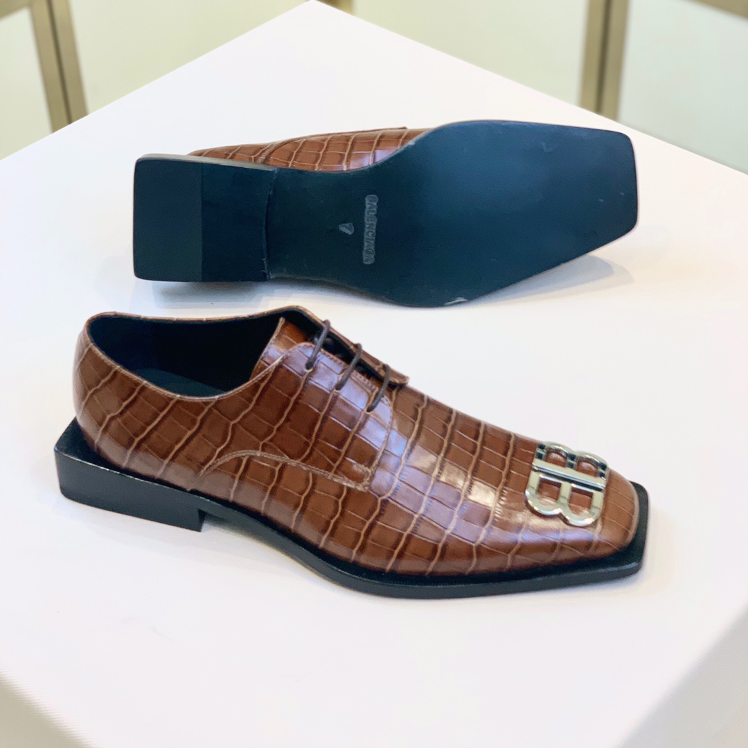 NIGO Balenciaga Men's Solid Colour Square Toe Metal BB Logo Cowhide Leather Shoes #nigo77218