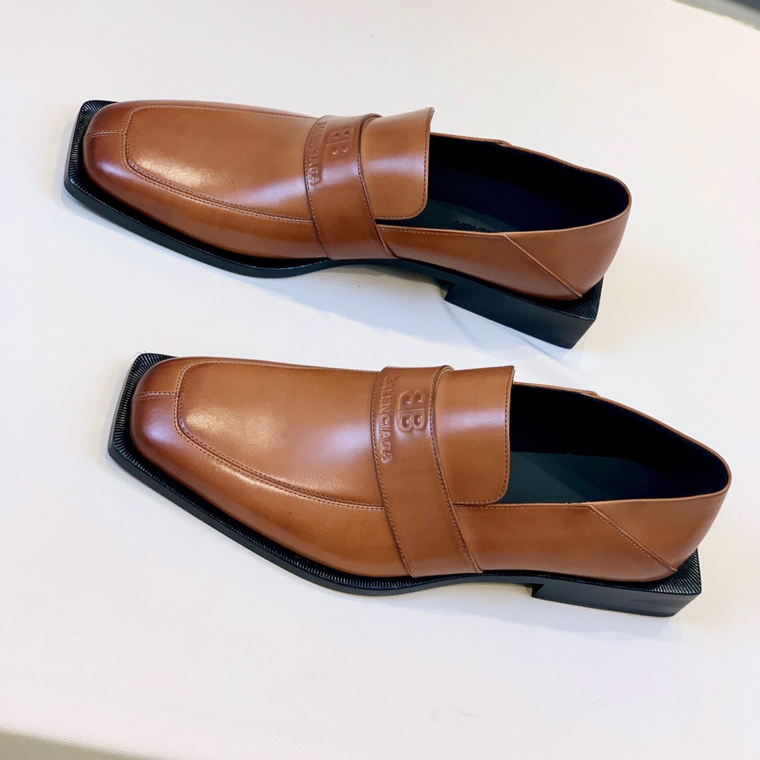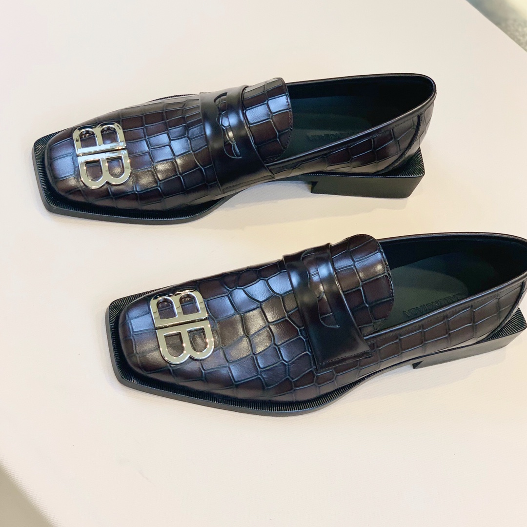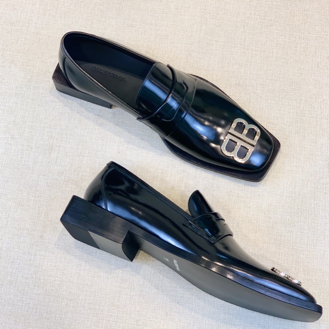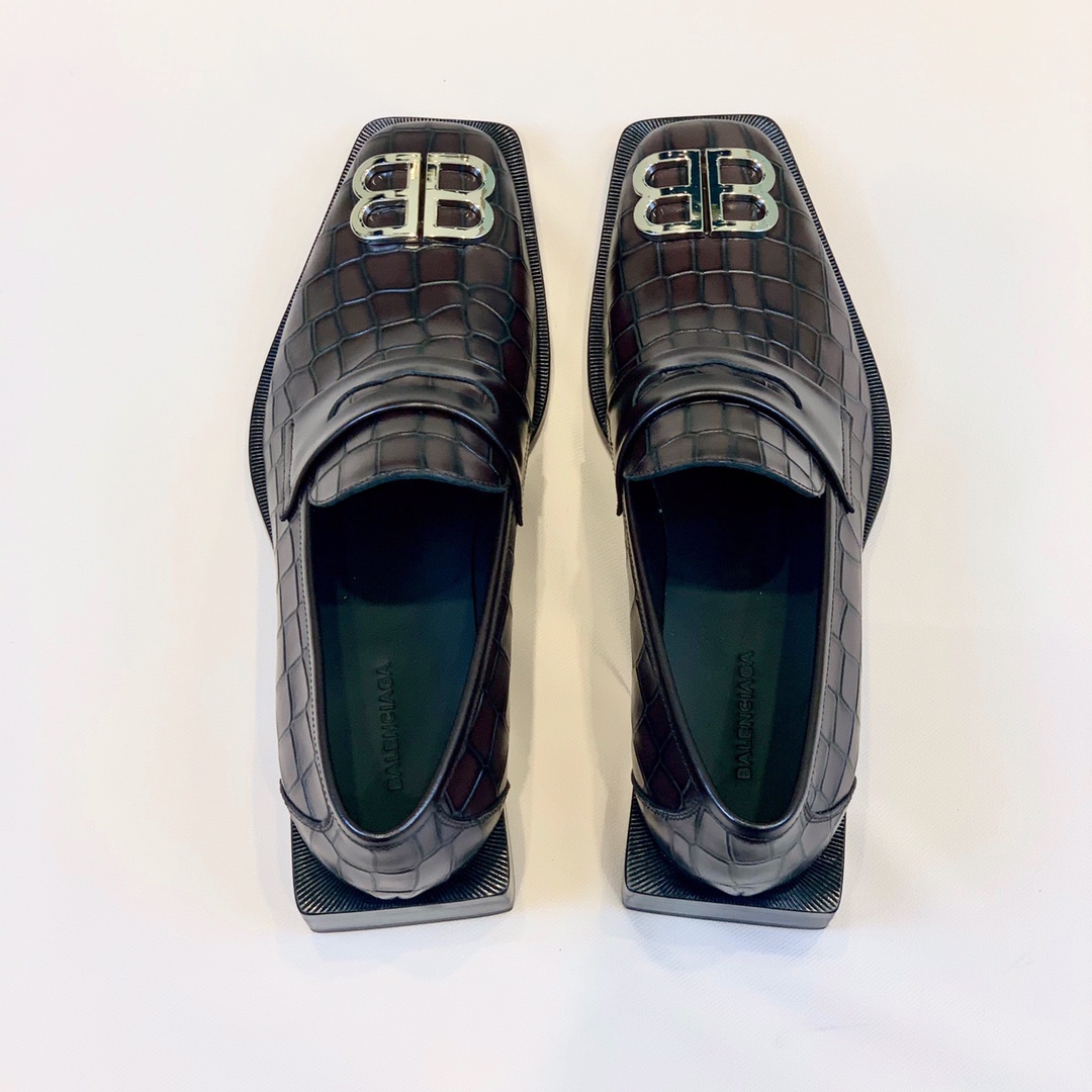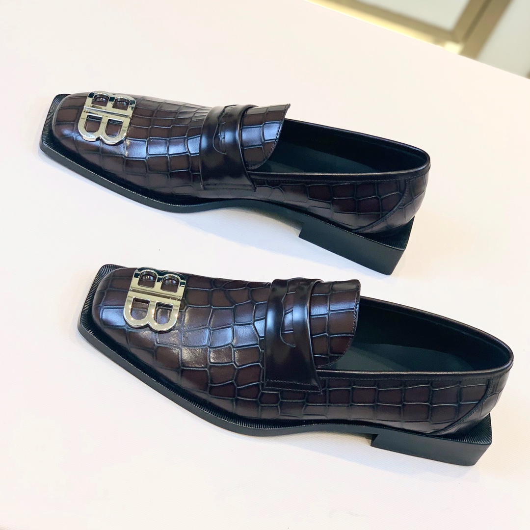 NIGO Balenciaga Men's Solid Colour Square Toe Metal BB Logo Cowhide Leather Shoes #nigo77218