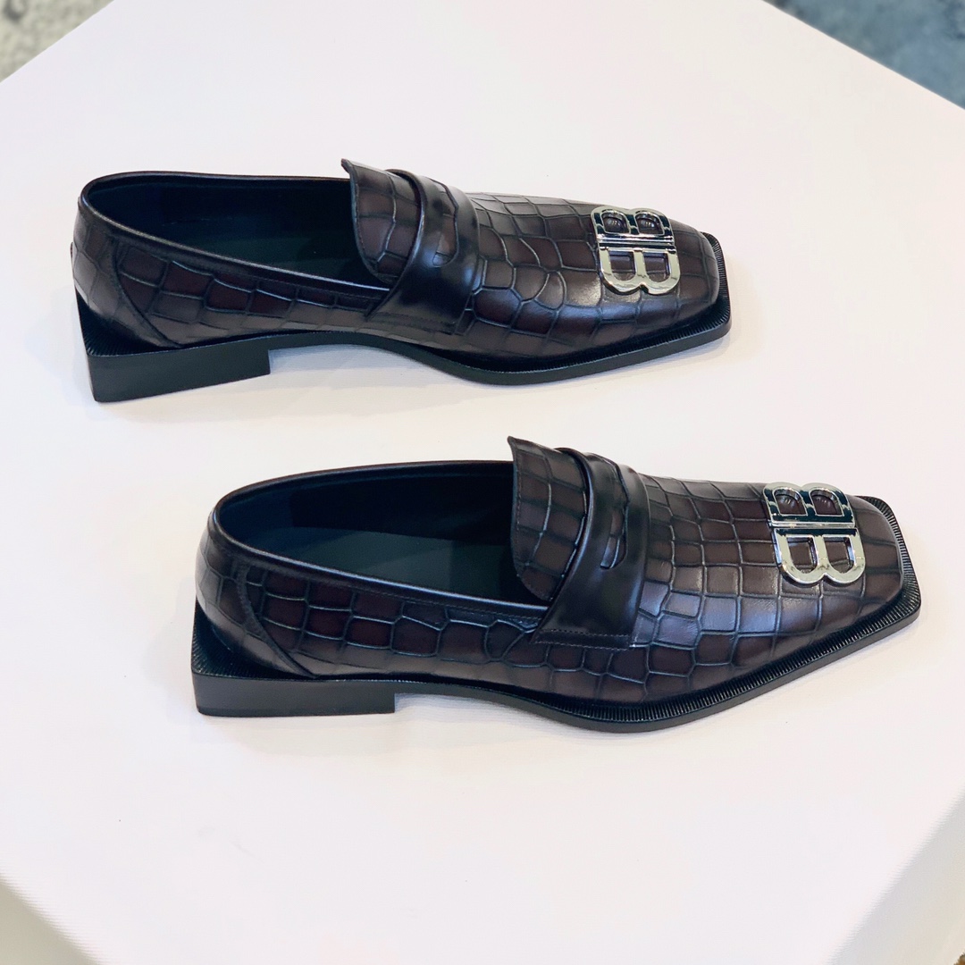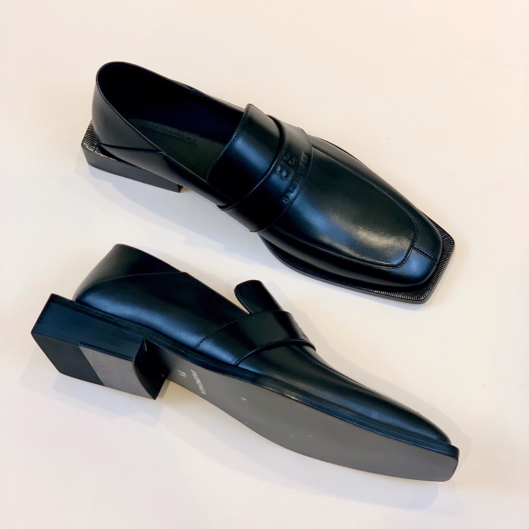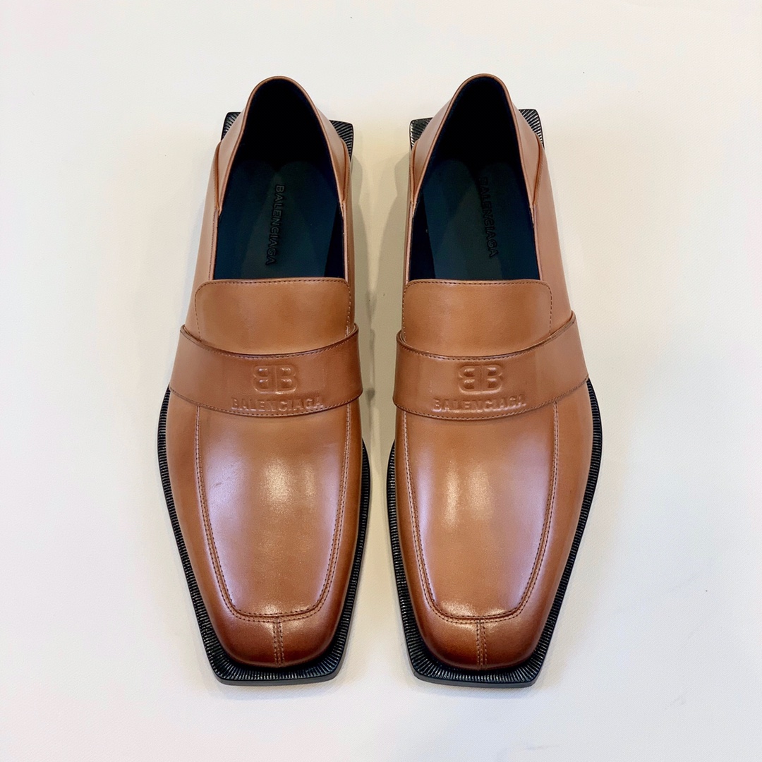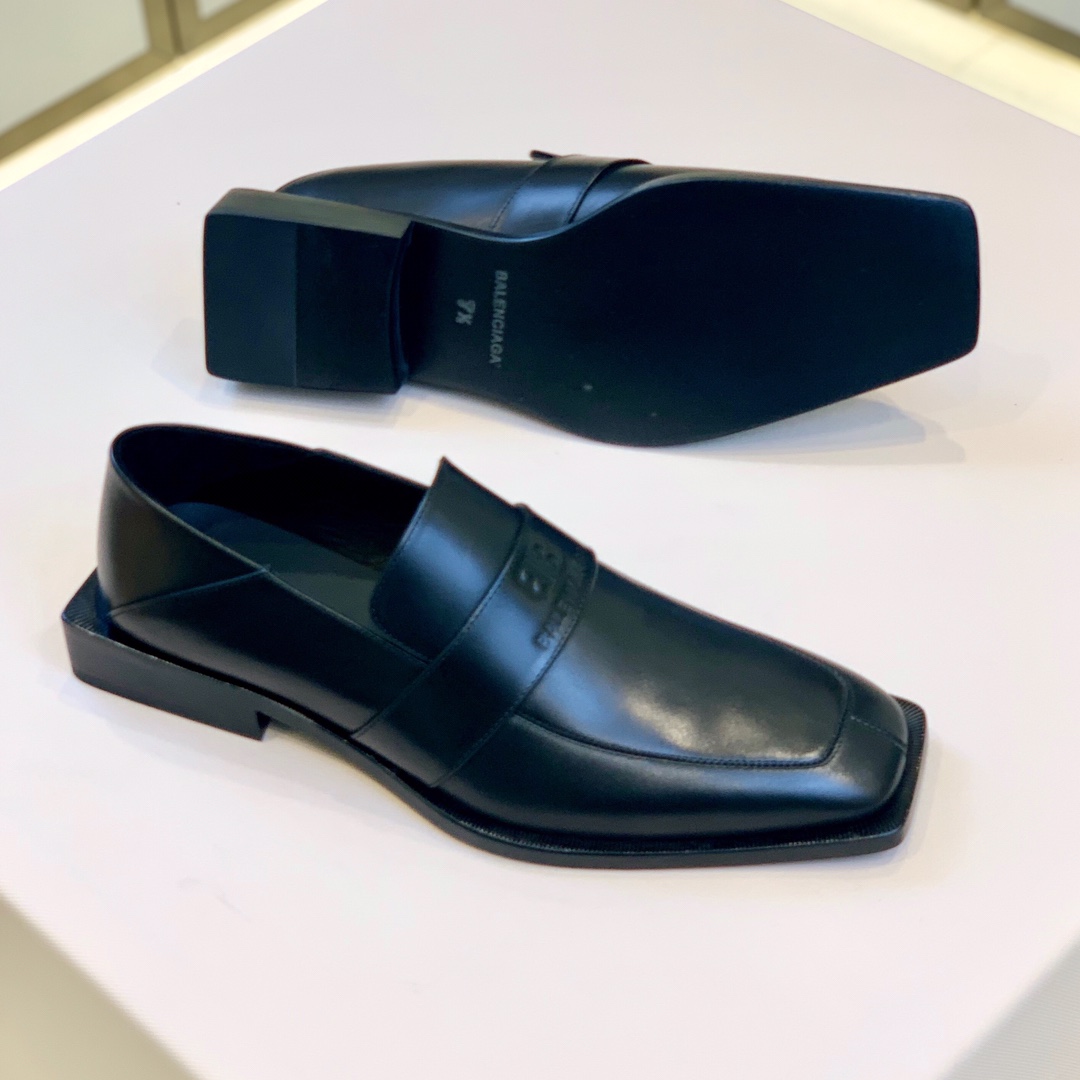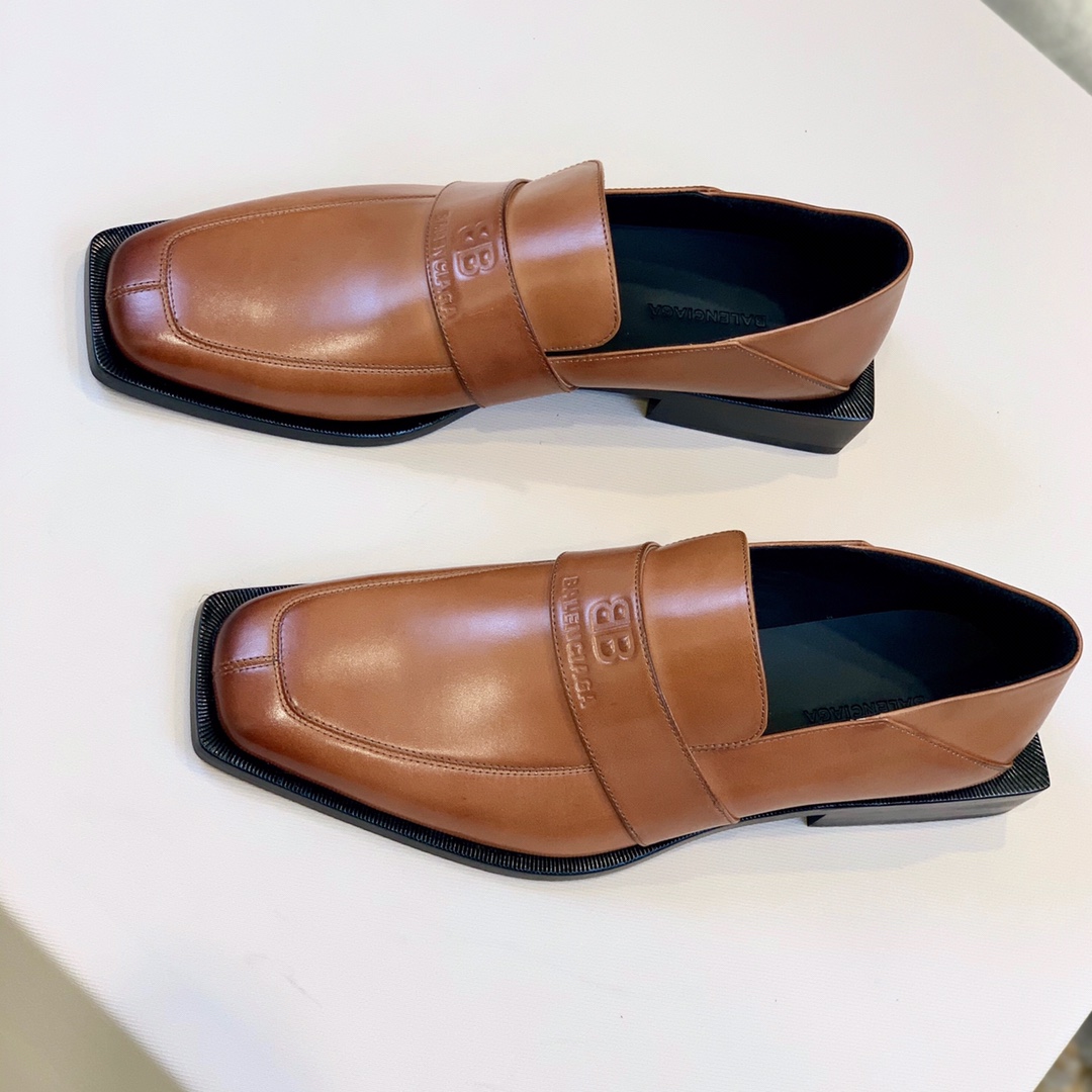 NIGO Balenciaga Men's Solid Colour Square Toe Metal BB Logo Cowhide Leather Shoes #nigo77218