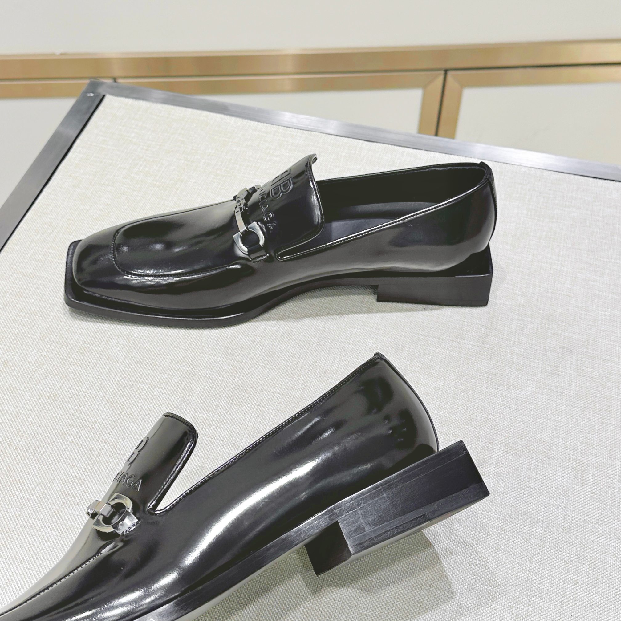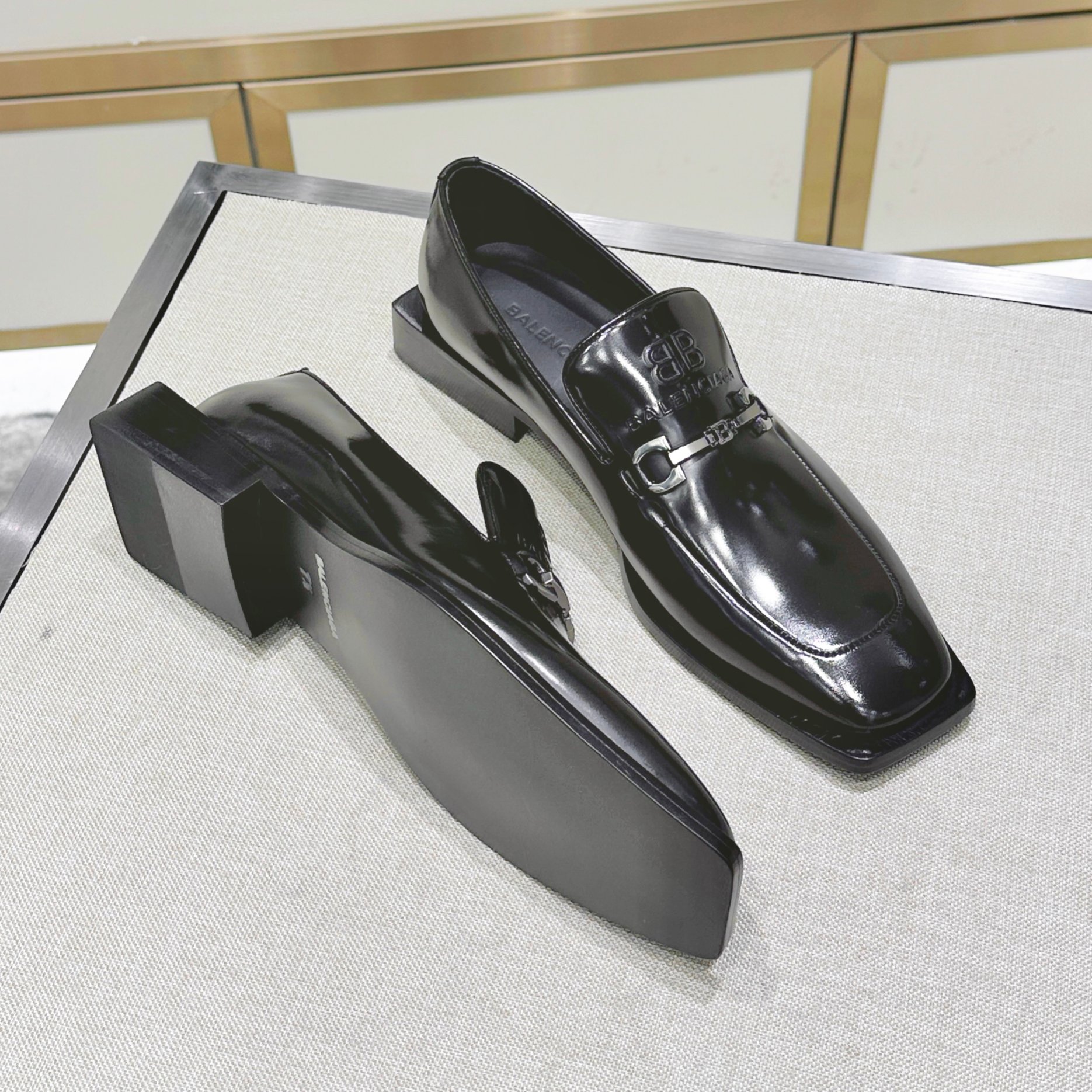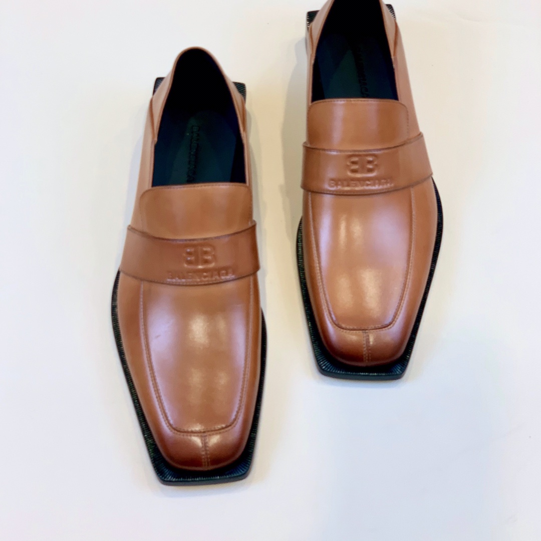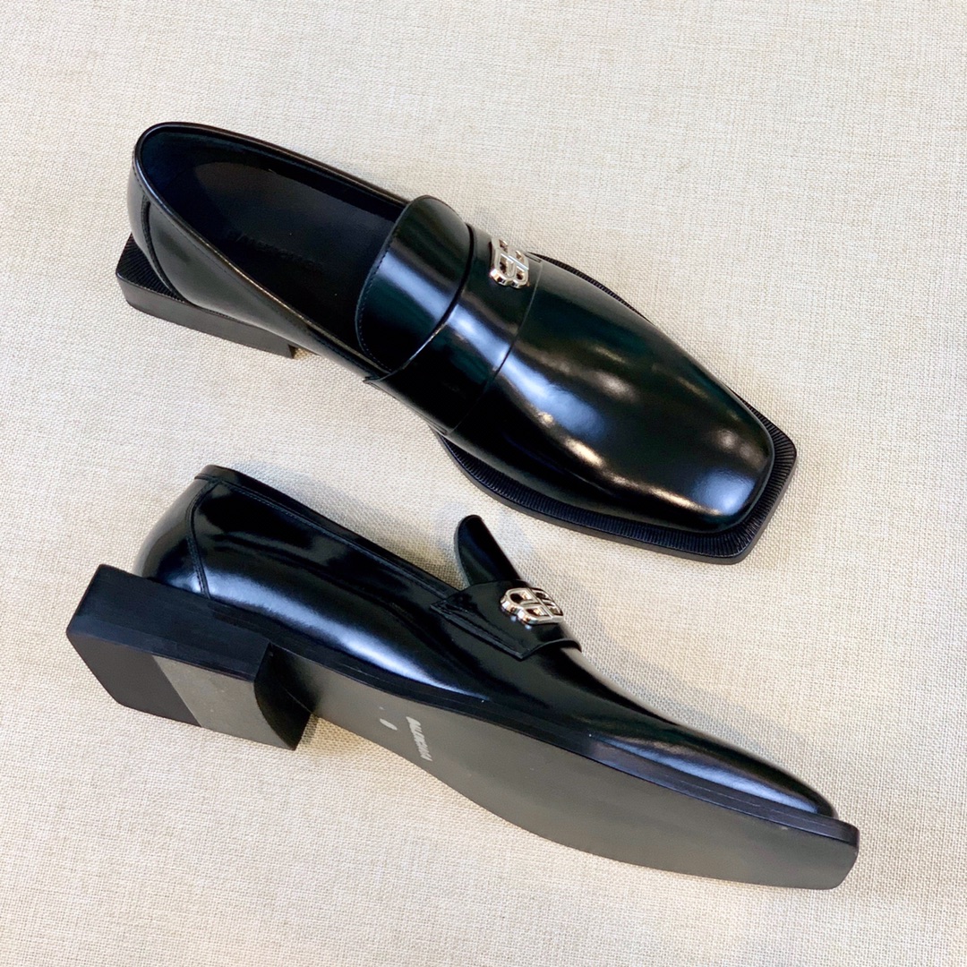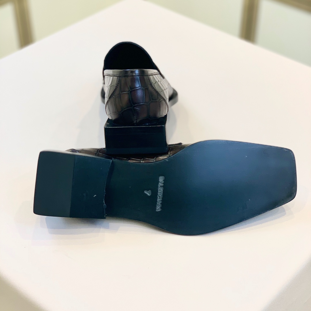 NIGO Balenciaga Men's Solid Colour Square Toe Metal BB Logo Cowhide Leather Shoes #nigo77218