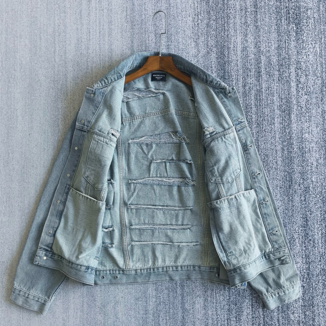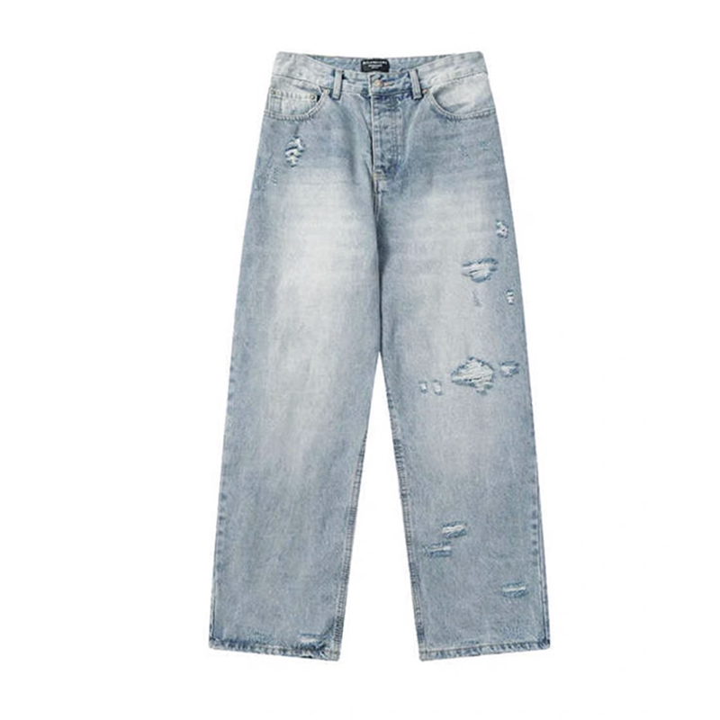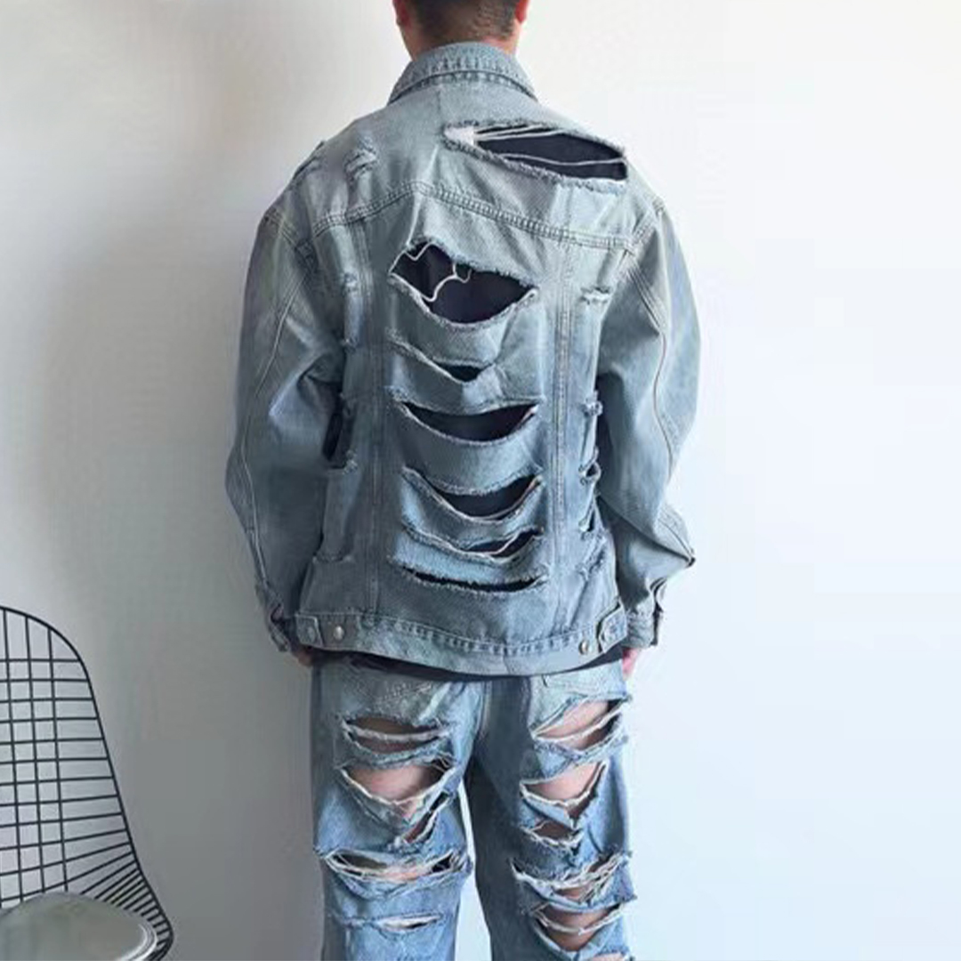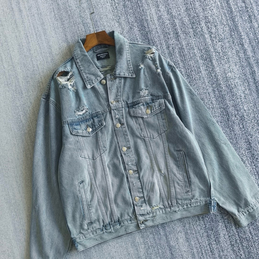 NIGO Balenciaga Men's Spring And Fall Cotton Blue Washed Hole Loose Long-Sleeved Denim Jacket Casual Pants Ngvp #nigo8143