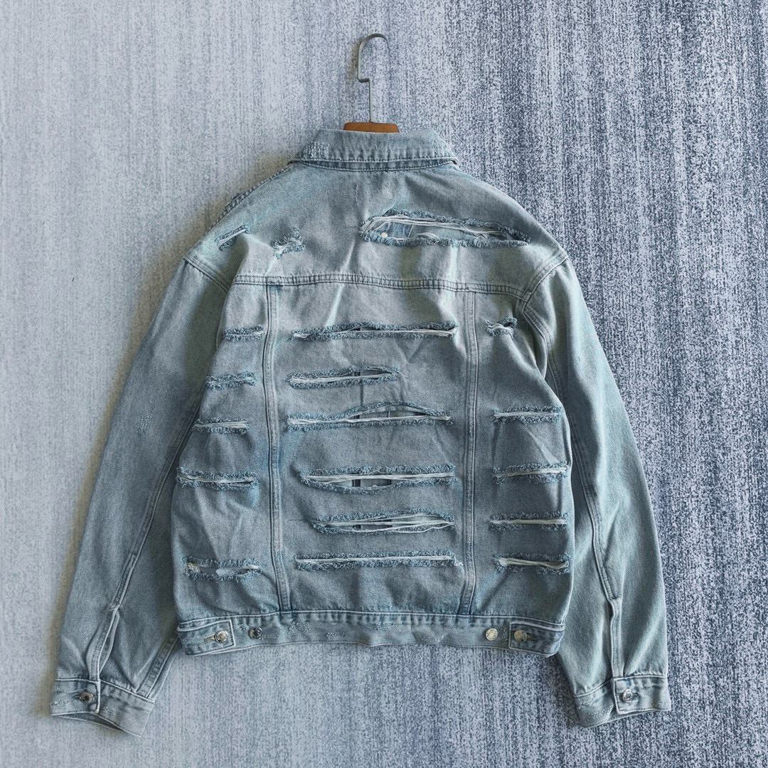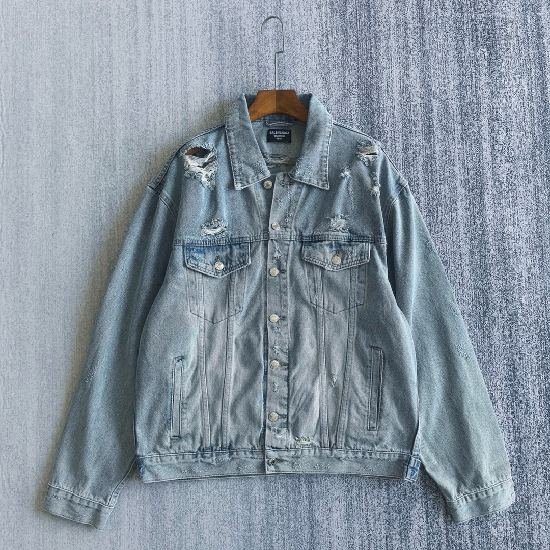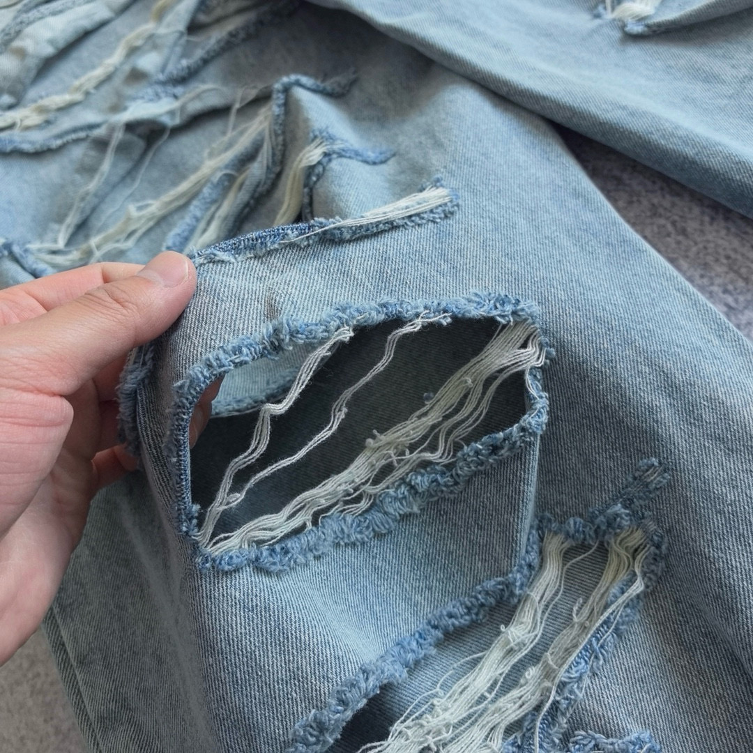 NIGO Balenciaga Men's Spring And Fall Cotton Blue Washed Hole Loose Long-Sleeved Denim Jacket Casual Pants Ngvp #nigo8143