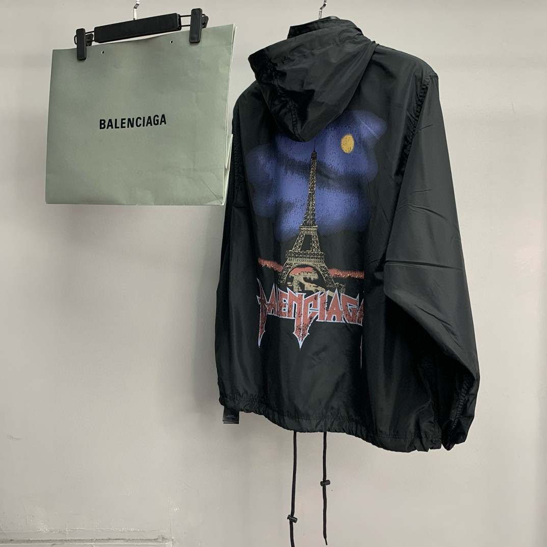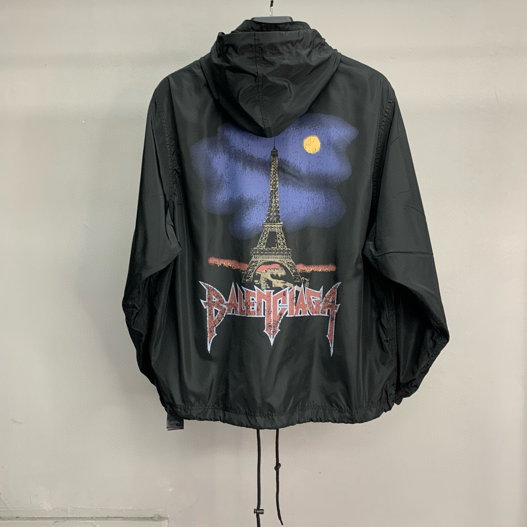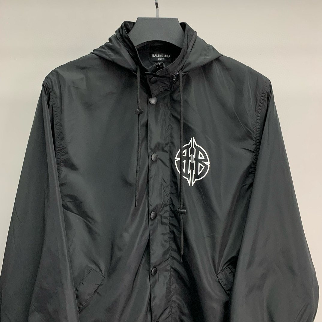 NIGO Balenciaga Men's Spring/Summer Black Tech Poplin Single Breasted Zip Hooded Jacket #nigo99428