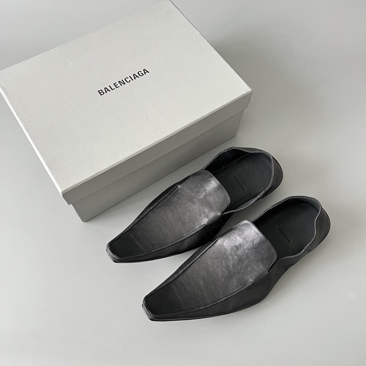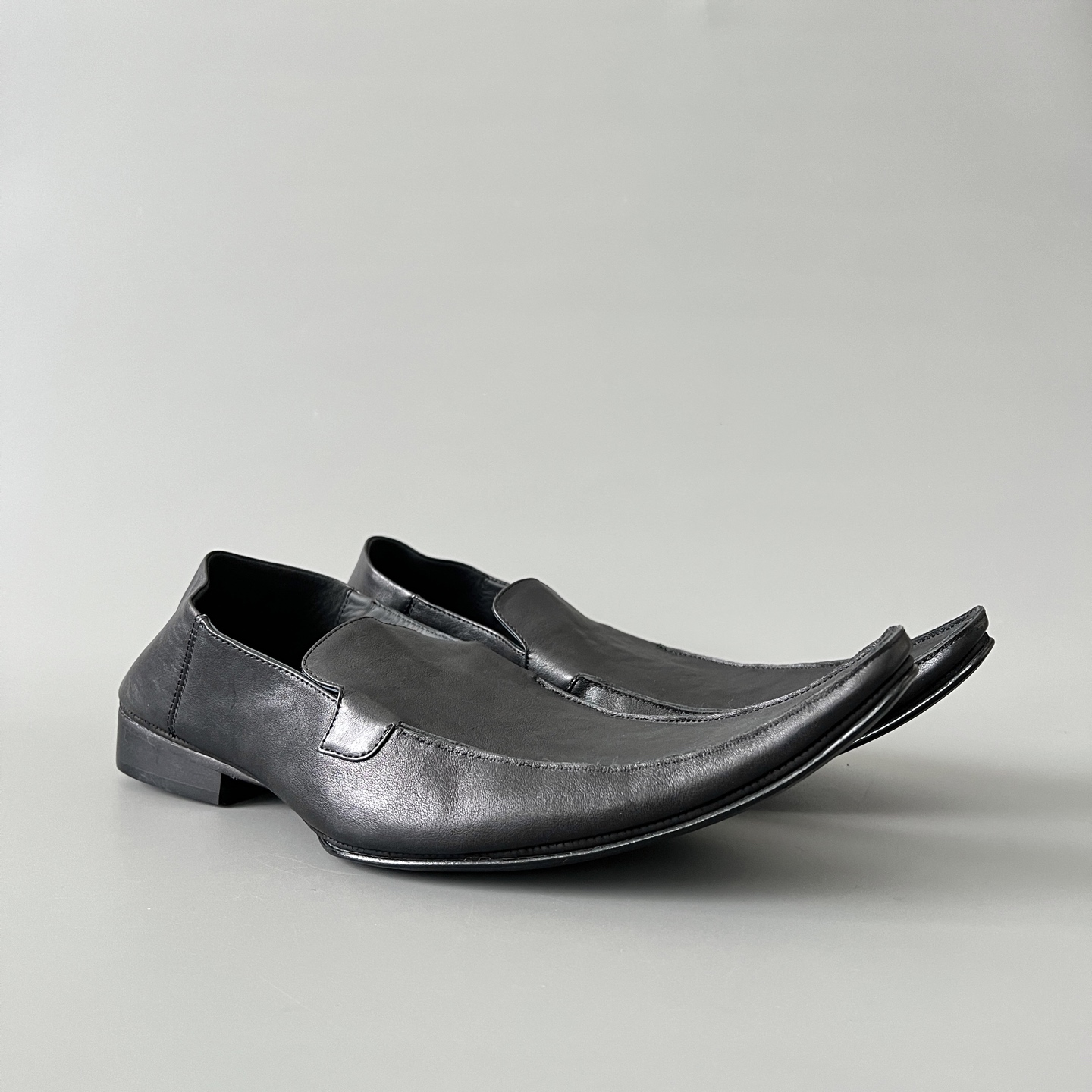 NIGO Balenciaga Men's Spring Summer Square Pointed Toe Cow Leather Shoes Horseshoe Heel High Street Trend Warped Toe Loafers Ngvp #nigo1591