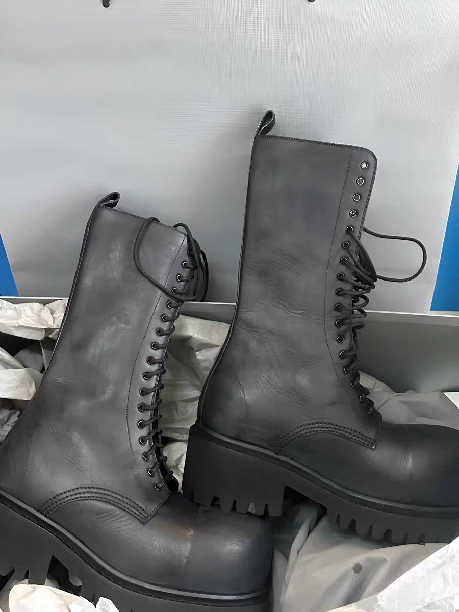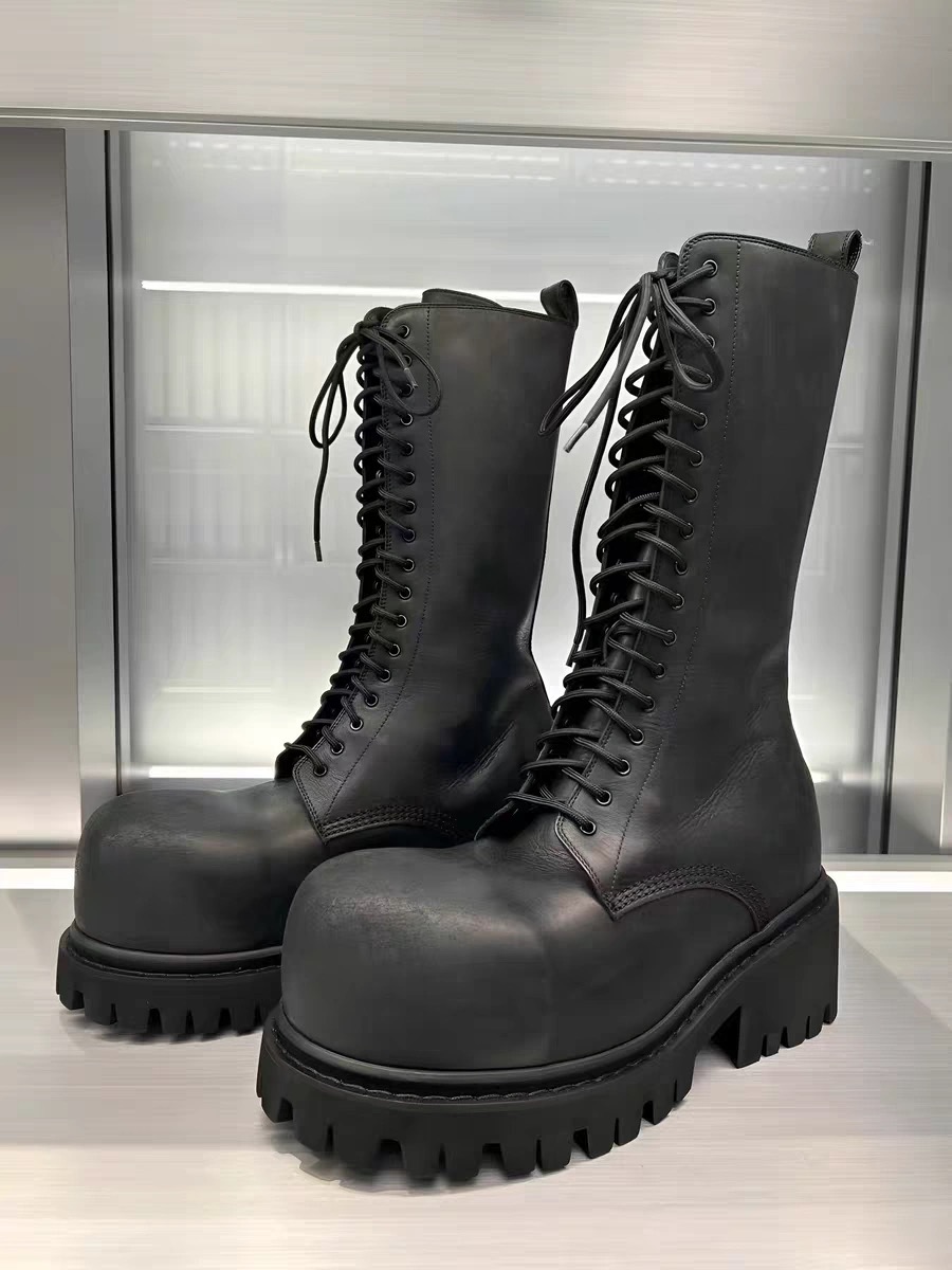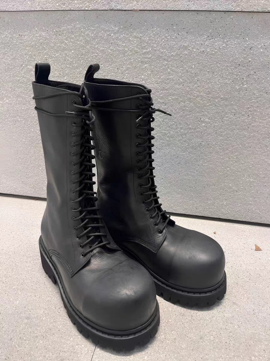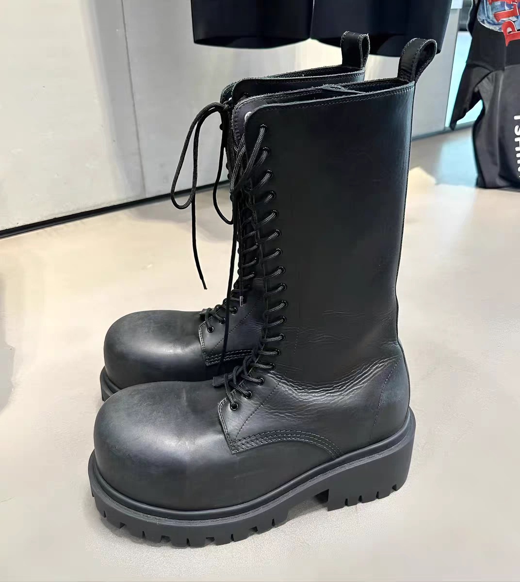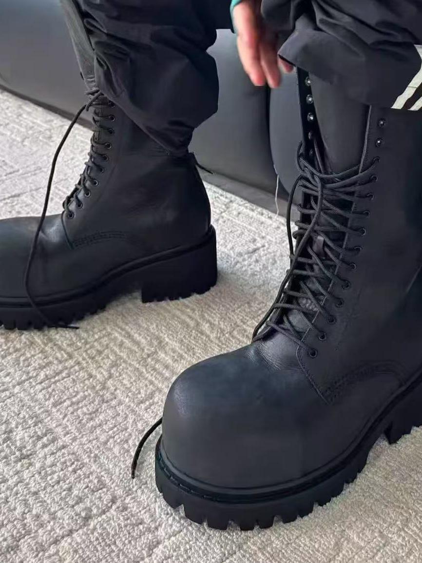 NIGO Balenciaga Men's Stomper Boot In Black Autumn And Winter Heightened Thick Sole High Calf High Street Trend Hip Hop Lacing Big Head Boots Ngvp #nigo9859