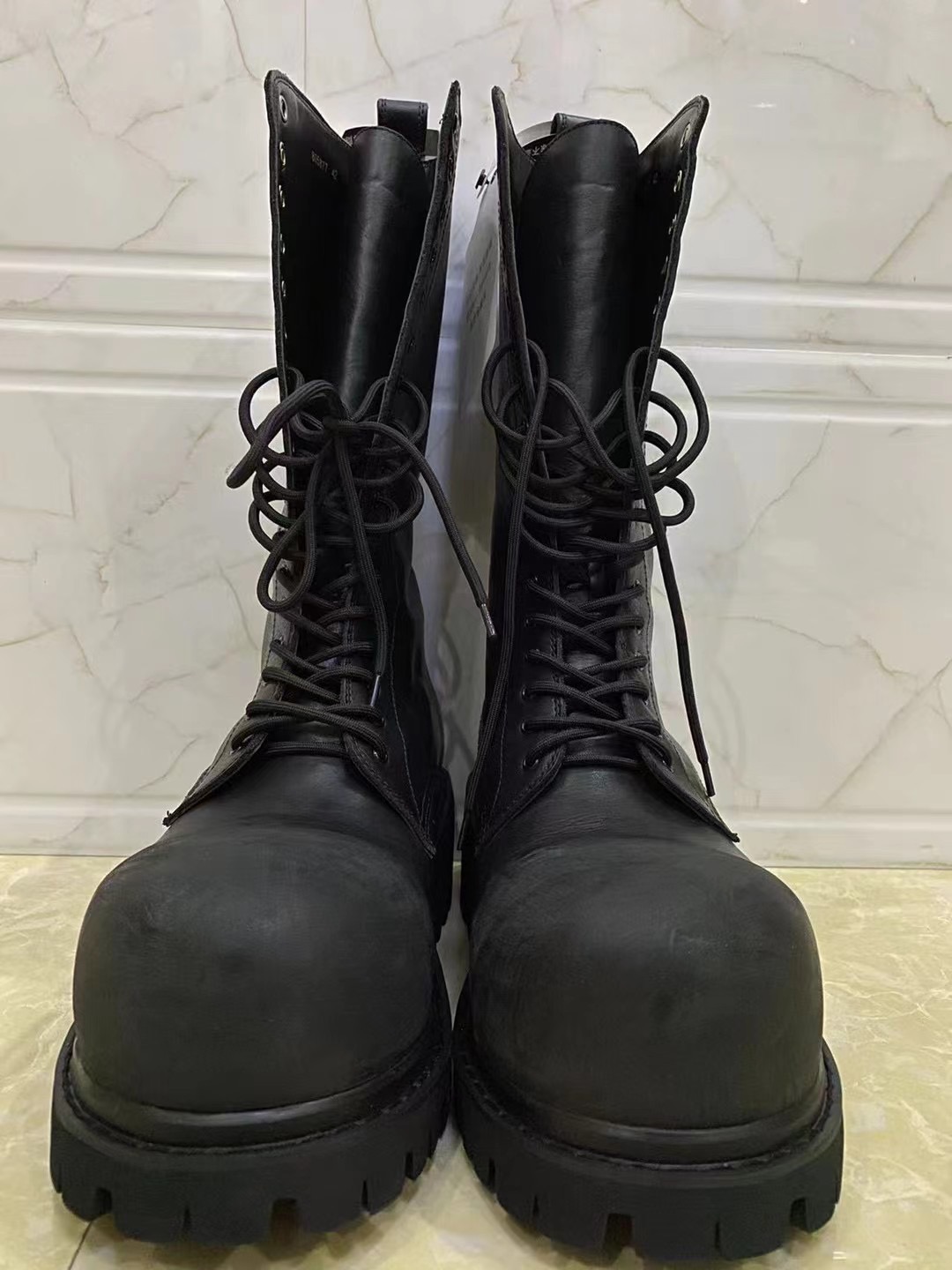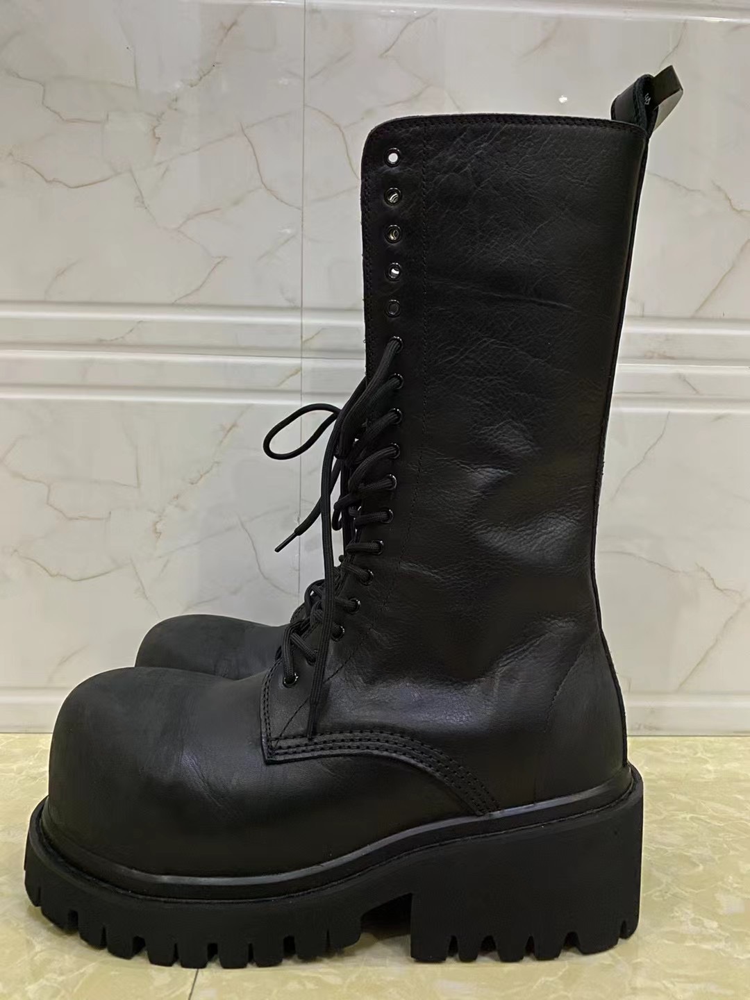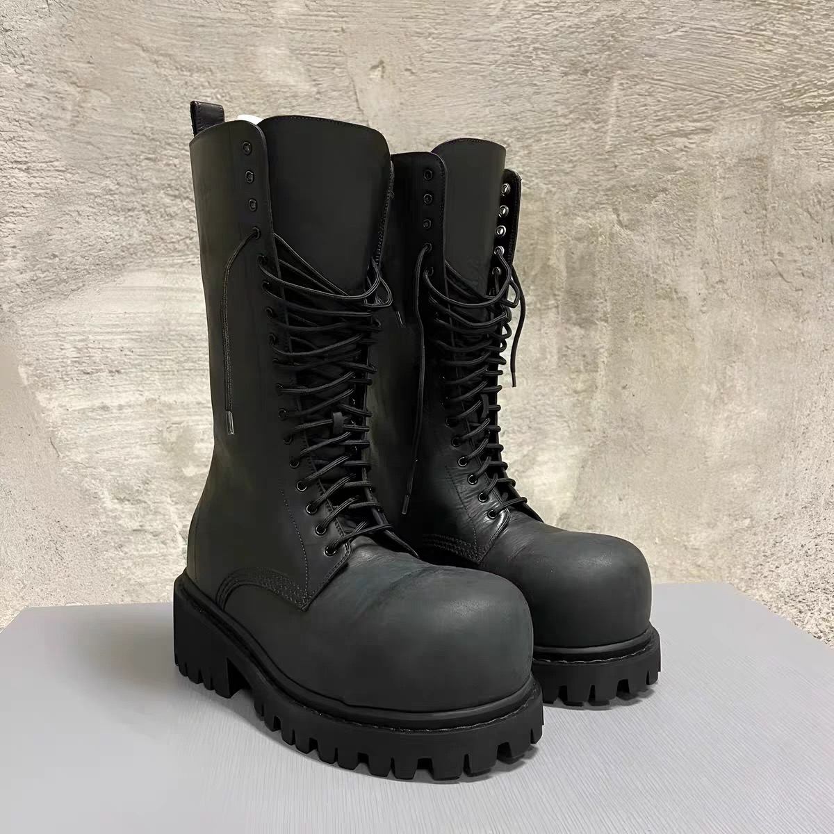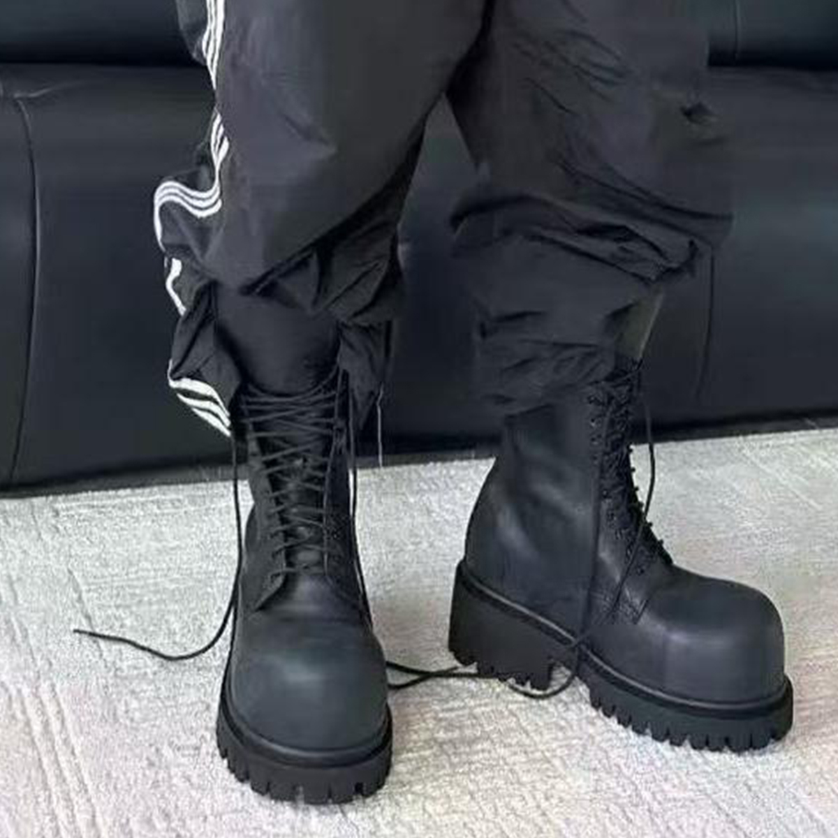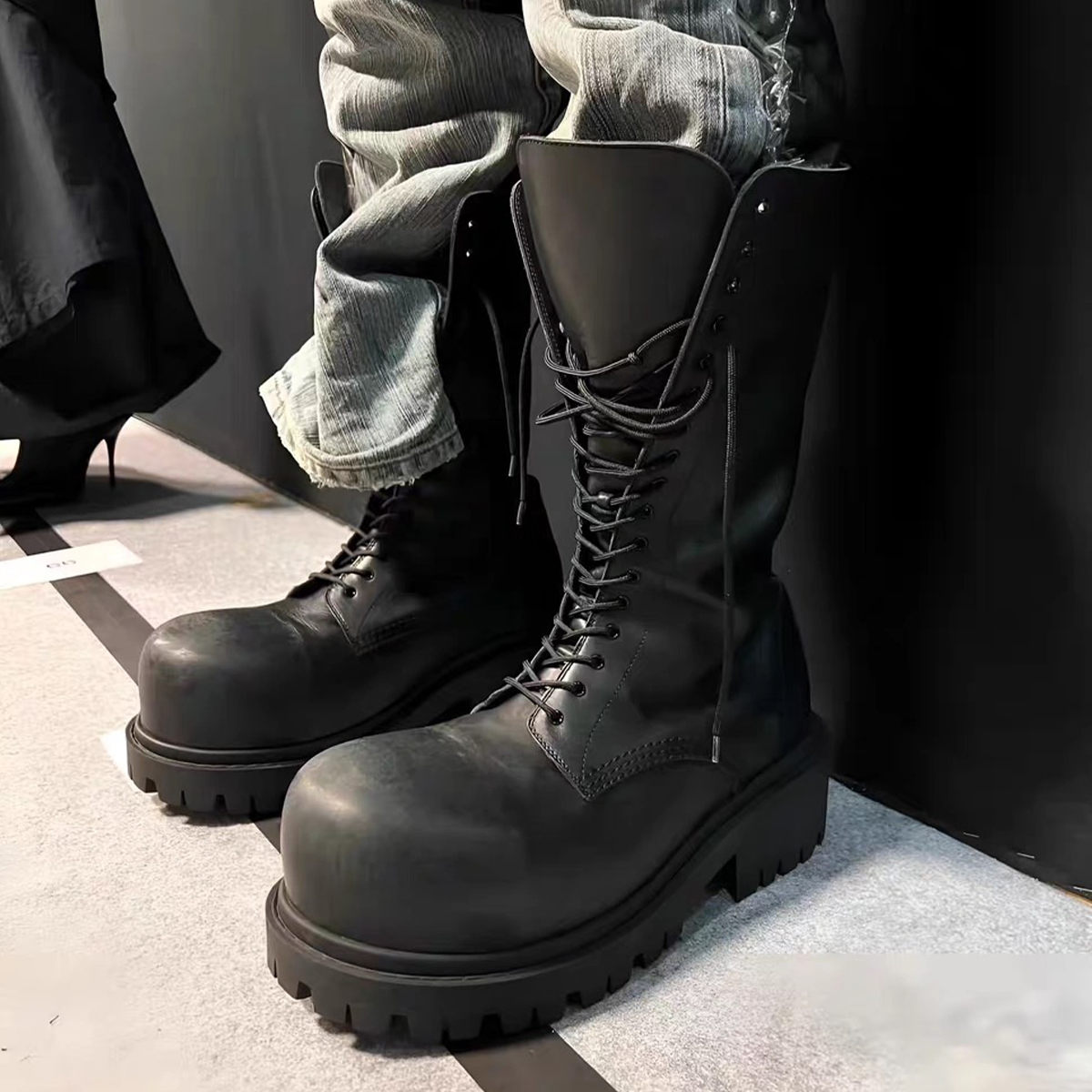 NIGO Balenciaga Men's Stomper Boot In Black Autumn And Winter Heightened Thick Sole High Calf High Street Trend Hip Hop Lacing Big Head Boots Ngvp #nigo9859