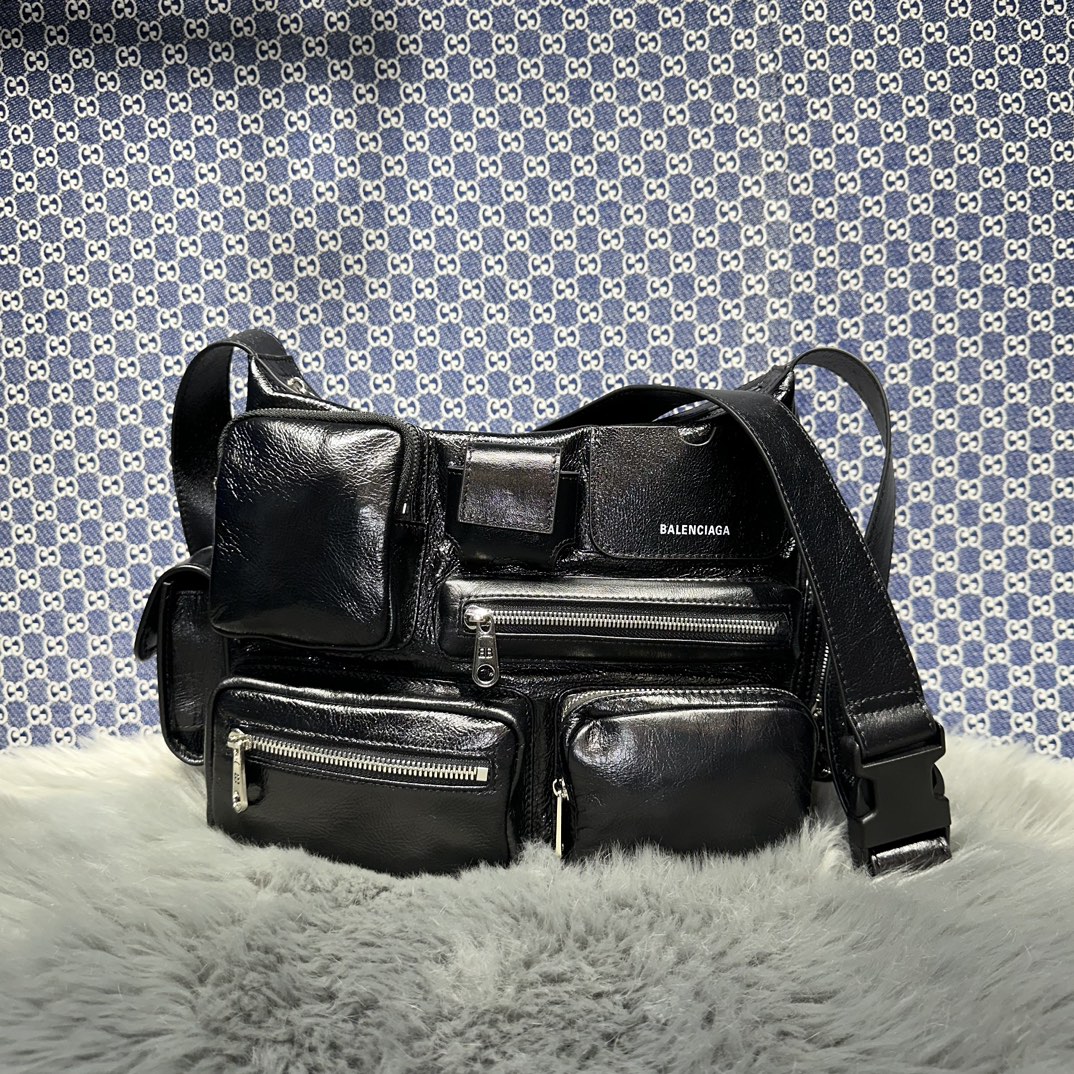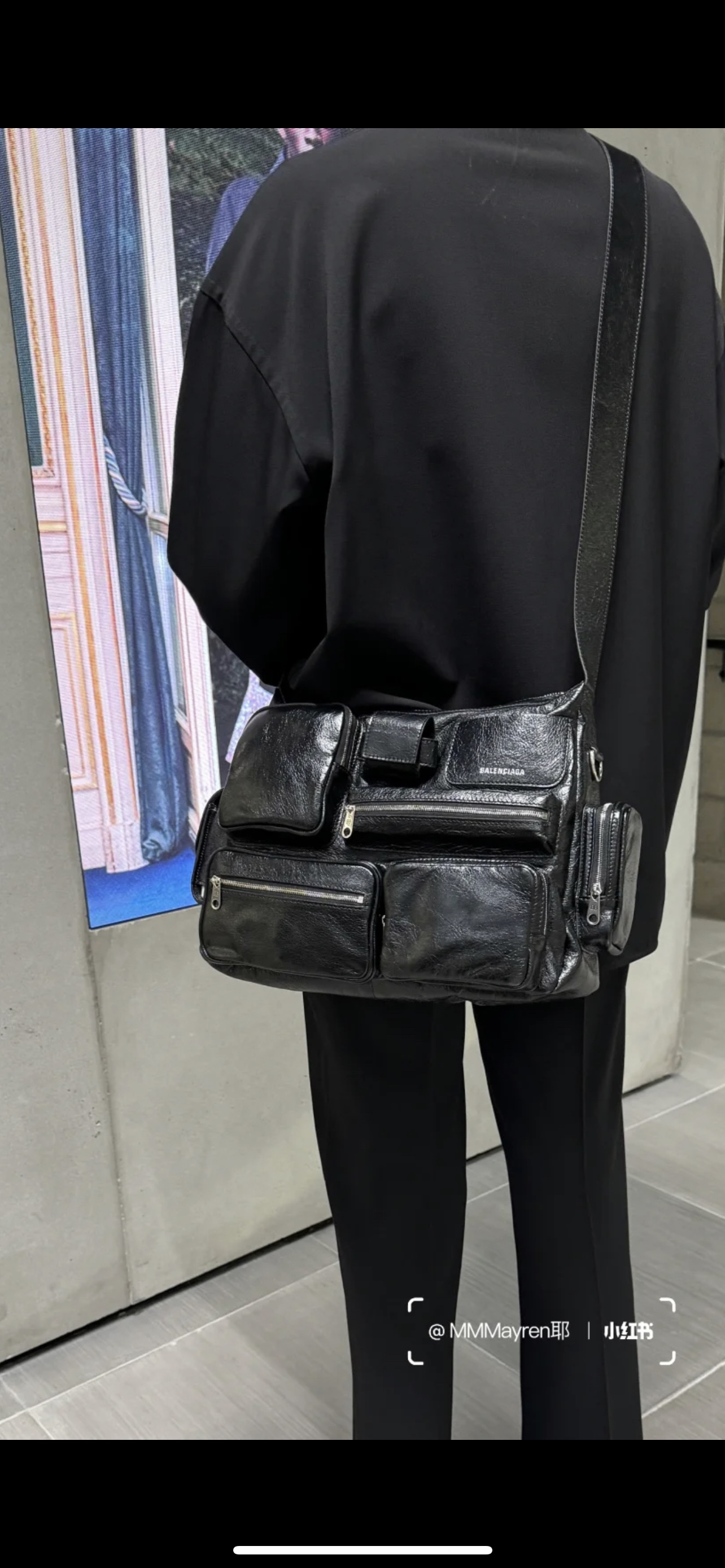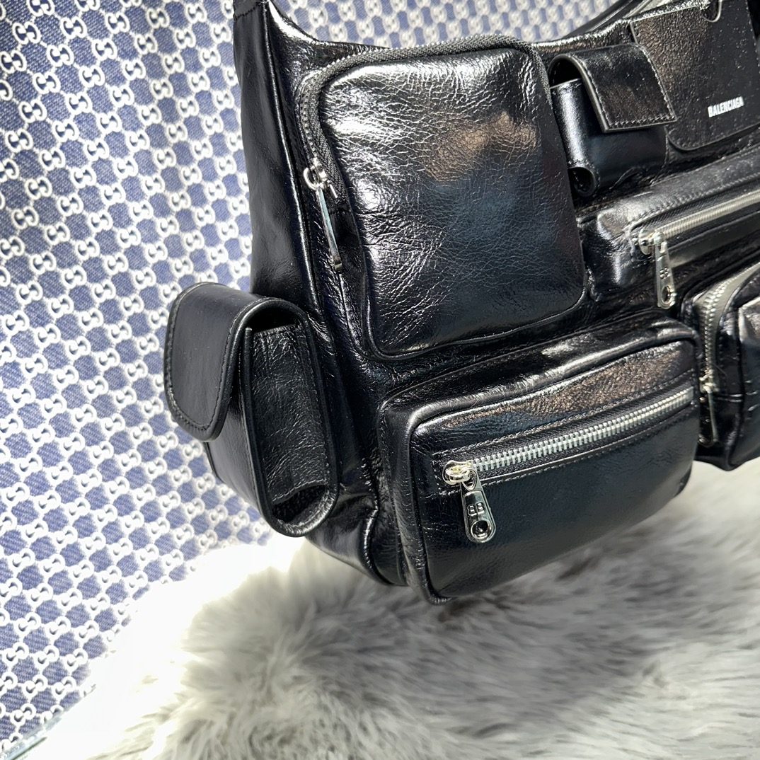 NIGO Balenciaga Men's Superbusy Black Fine Grain Sheep Leather Tote Shoulder Messenger Bag Bags #nigo99447