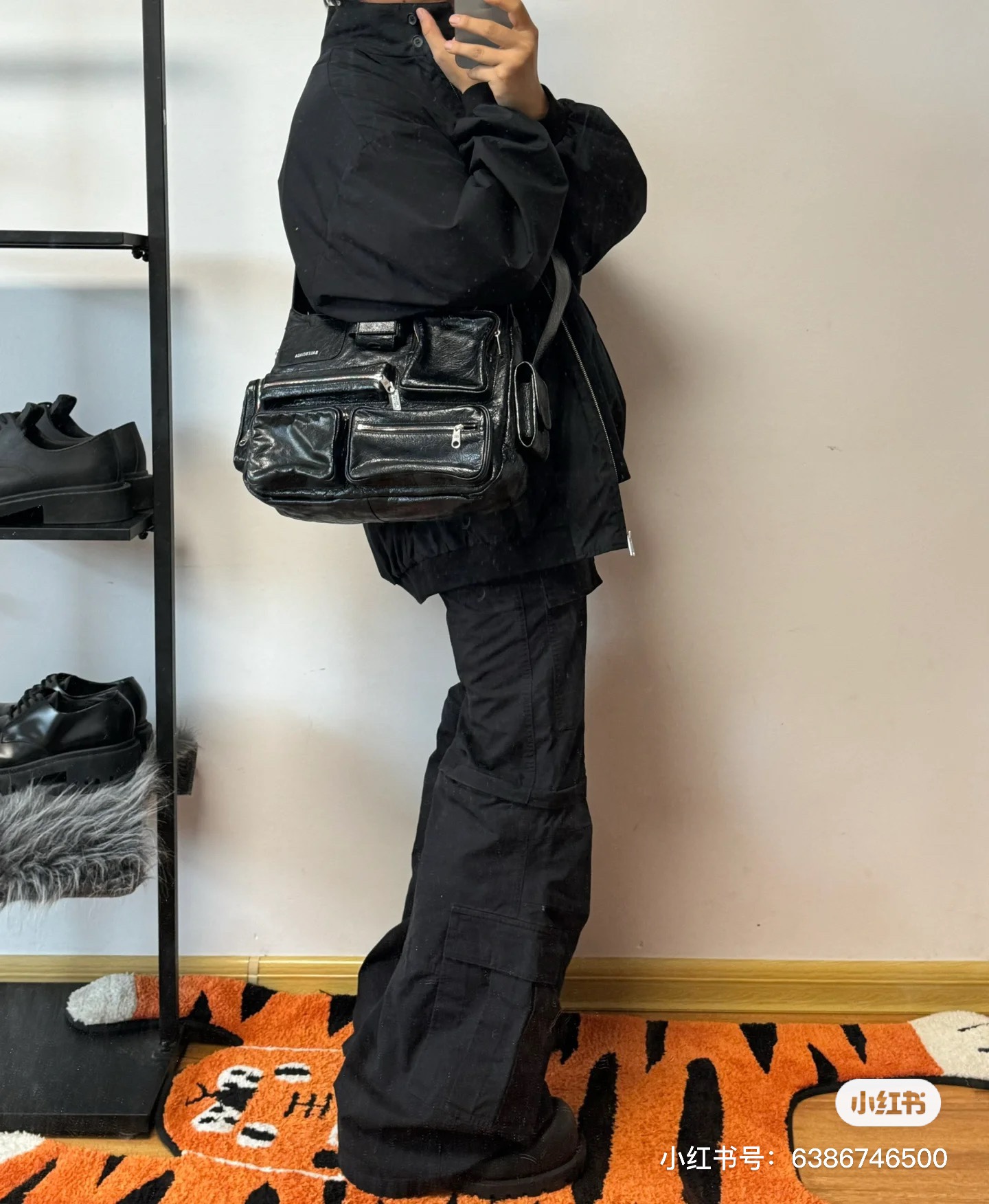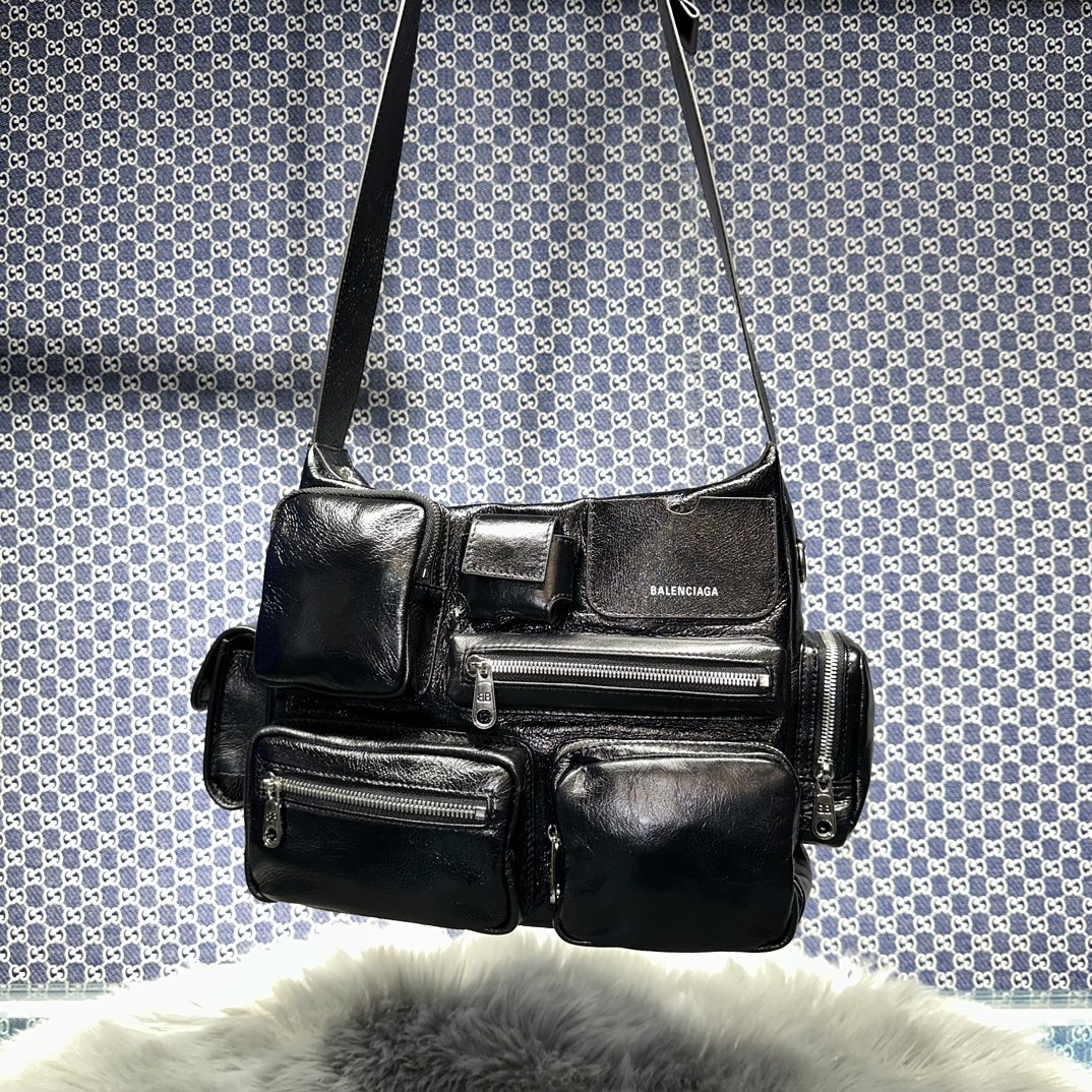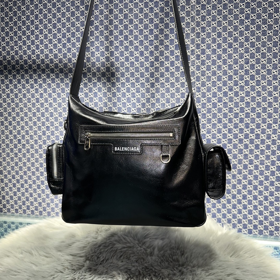 NIGO Balenciaga Men's Superbusy Black Fine Grain Sheep Leather Tote Shoulder Messenger Bag Bags #nigo99447