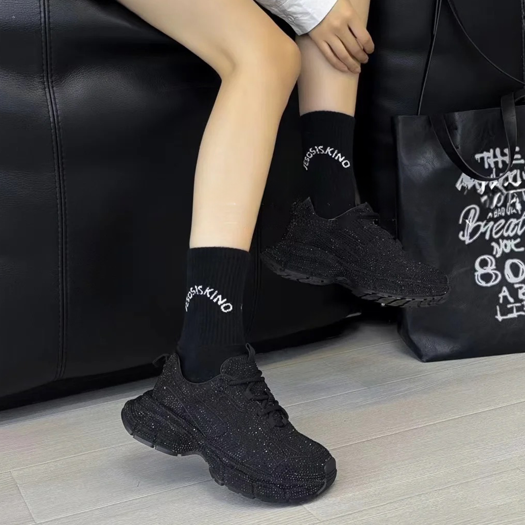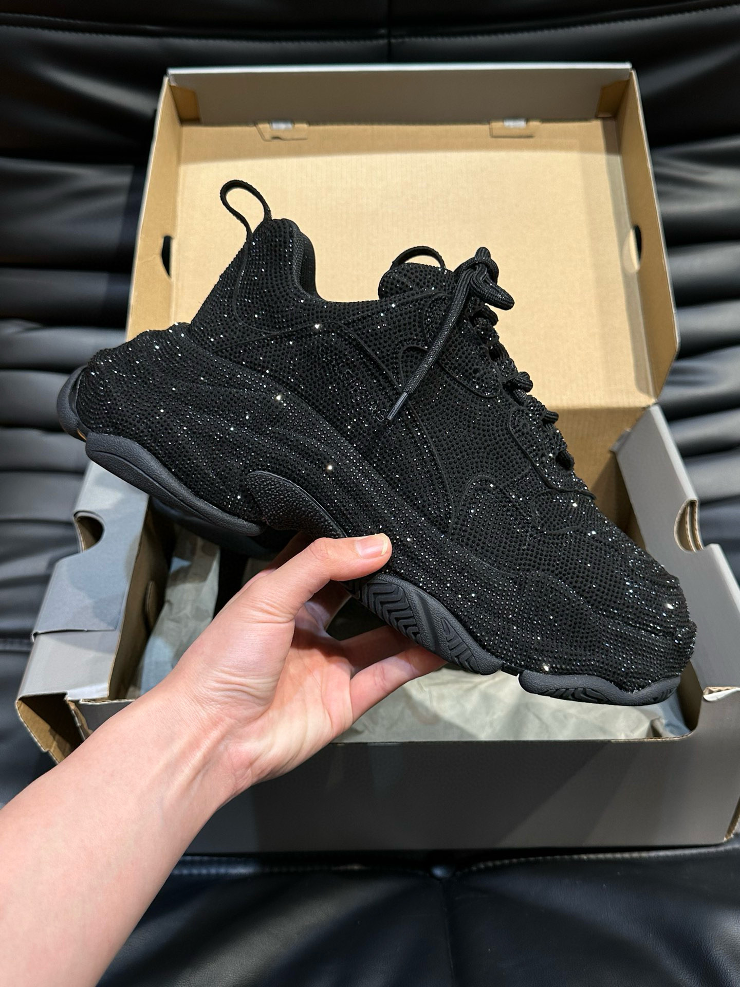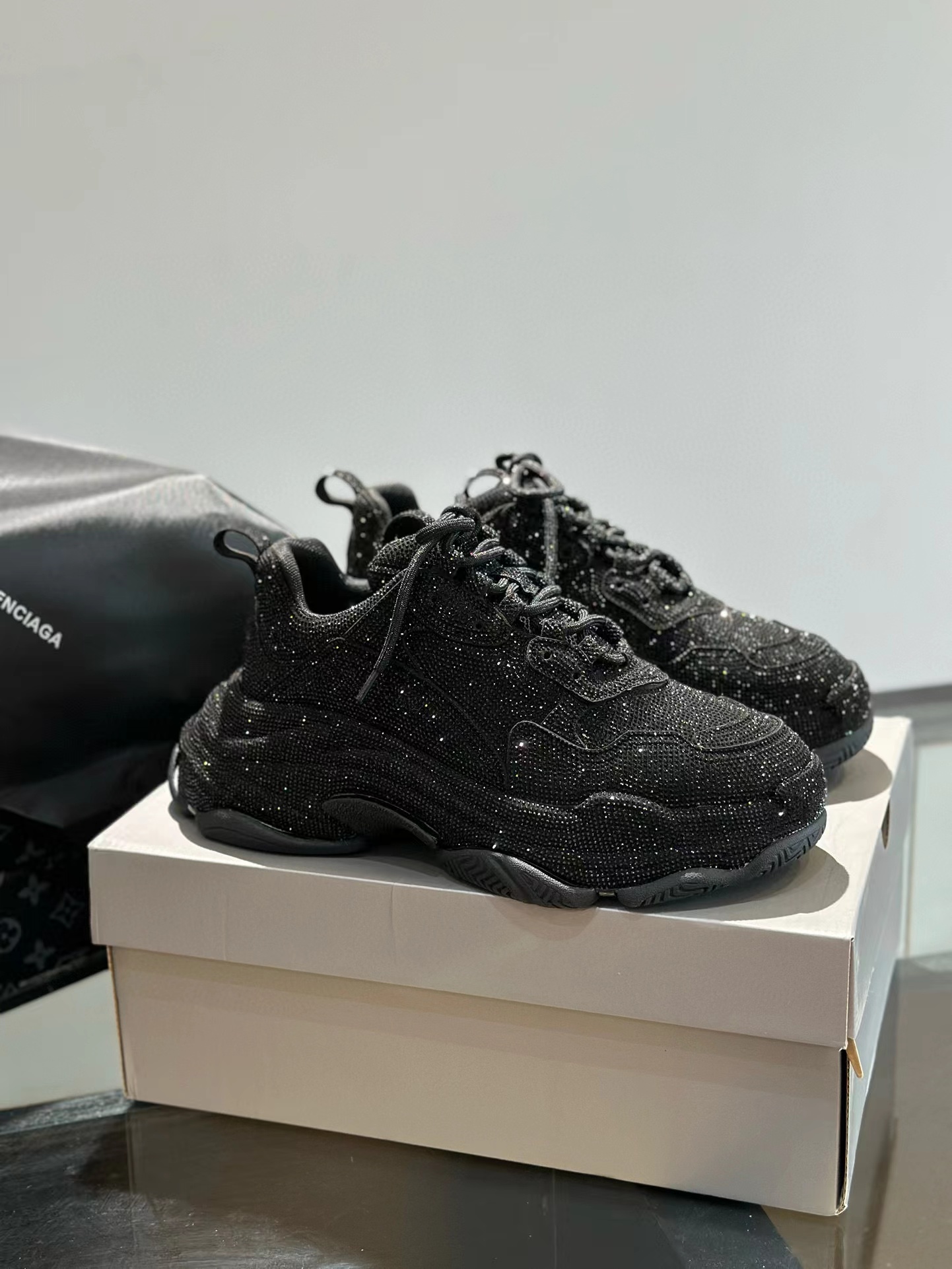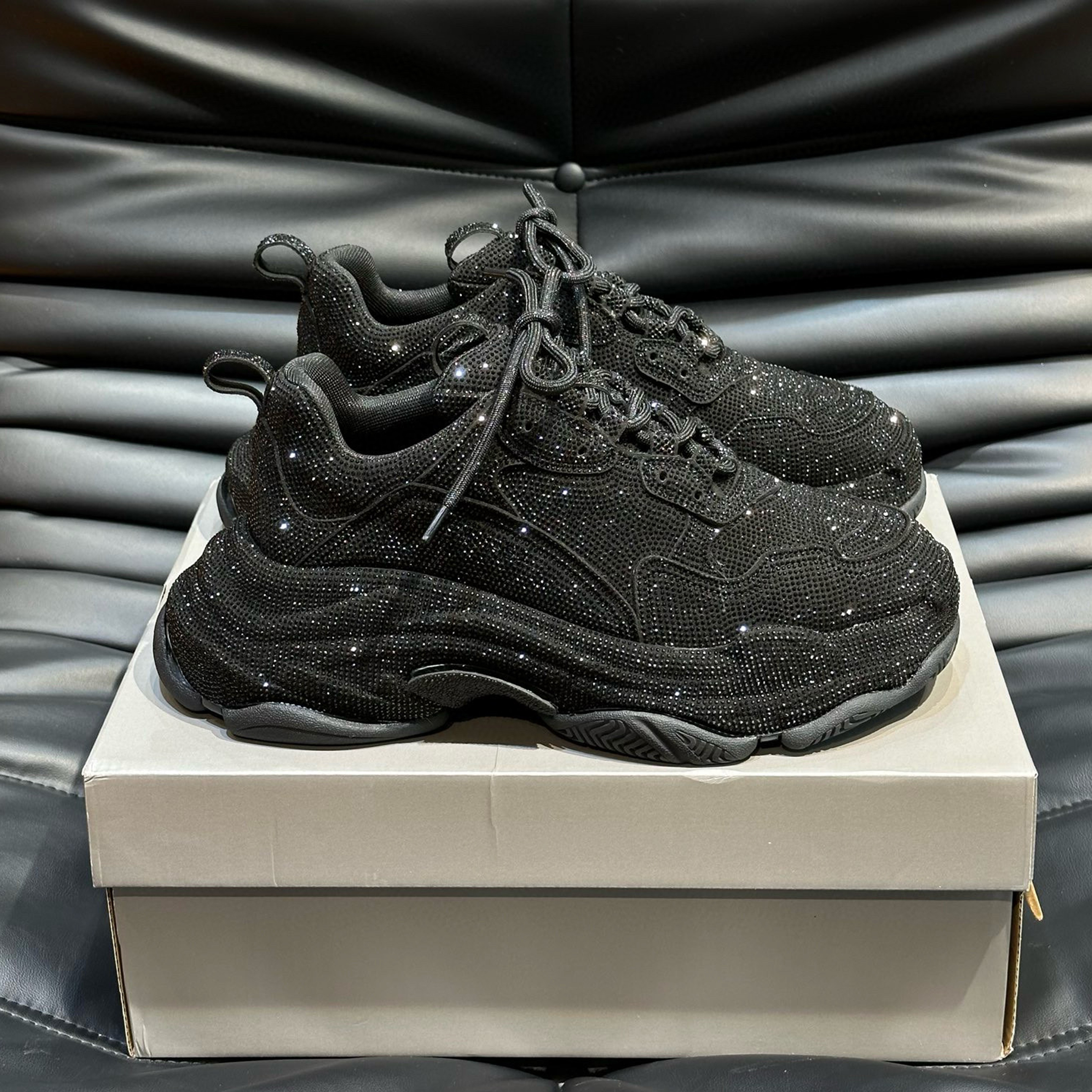 NIGO Balenciaga Men's Women's Fashion Trend Full Diamonds Pop Shoes Casual Comfortable Black Lace-up Sneakers Ngvp #nigo8186
