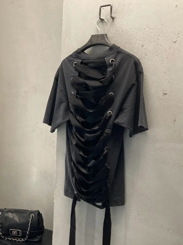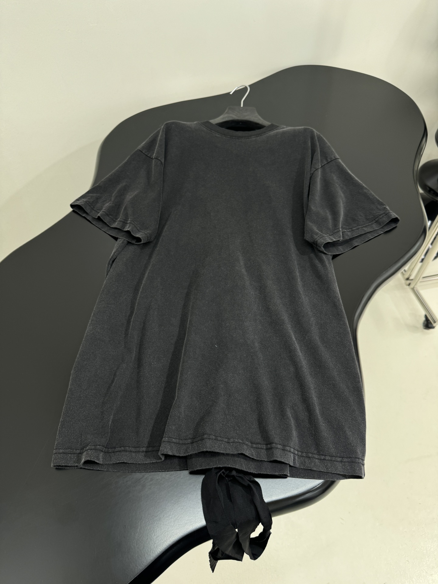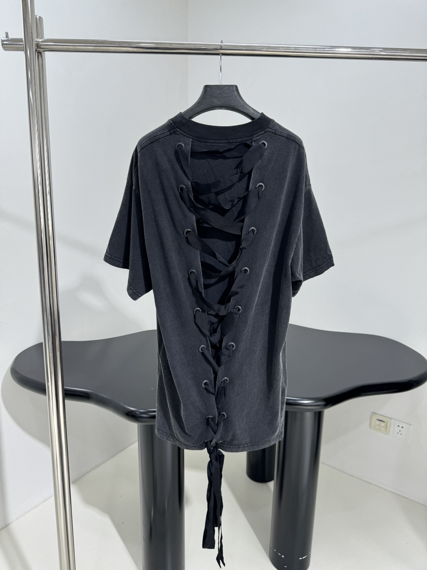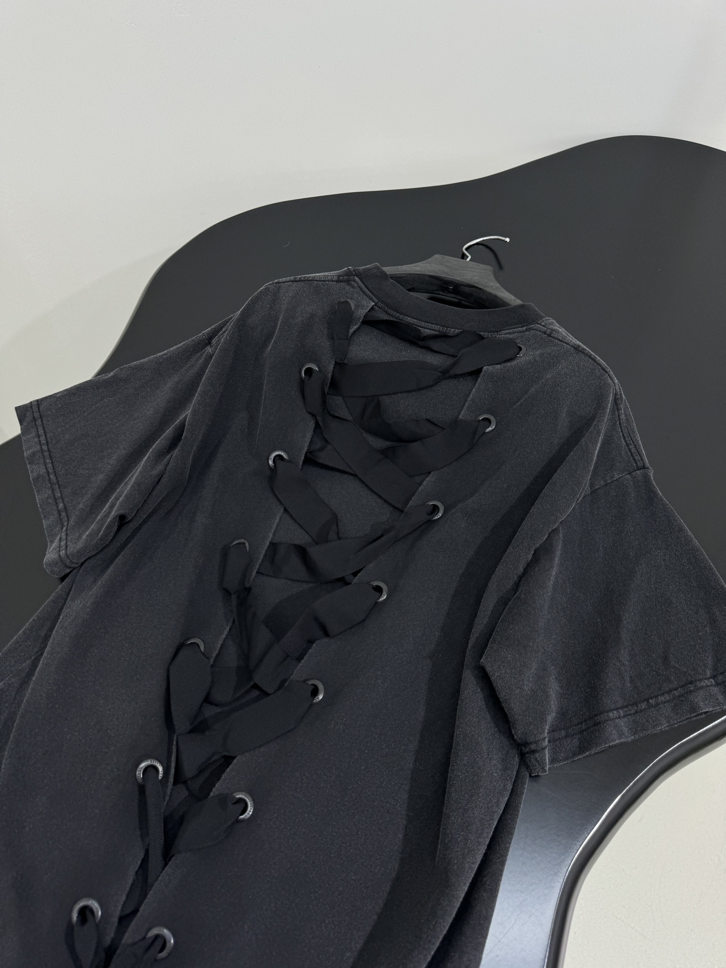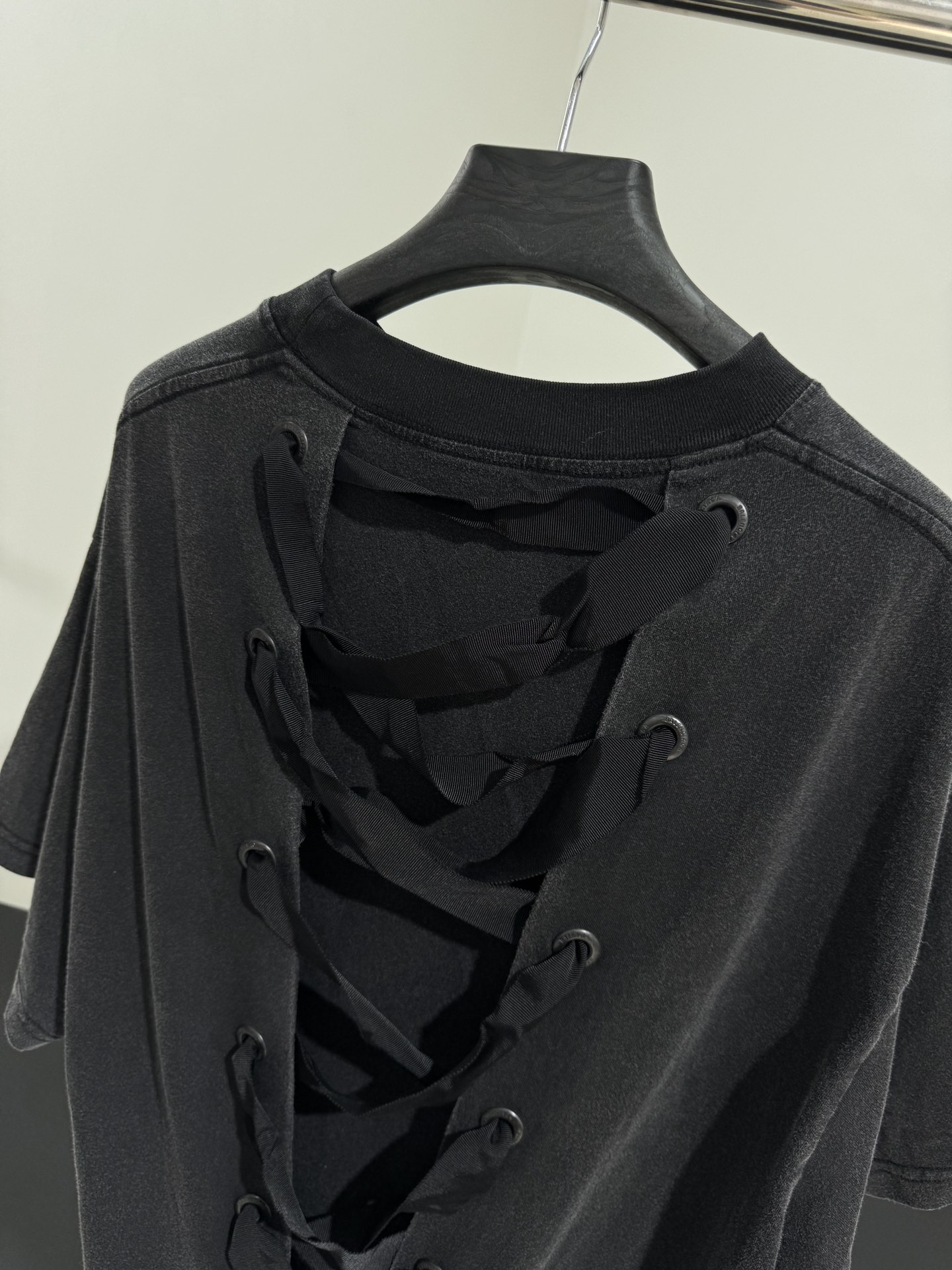 NIGO Balenciaga Men's Women's Summer Faded Black Round Neck Plain Knit Lace-Up Done Short Sleeve T-Shirt Ngvp #nigo1761