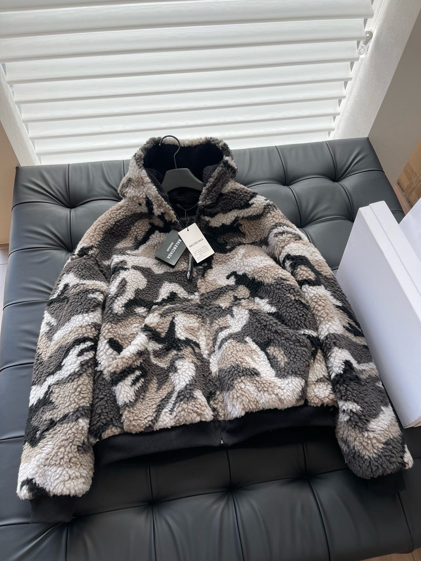 NIGO Balenciaga Men Women Autumn And Winter Camouflage Teddy Plush Zipper Long Sleeve Hooded Loose Jacket Ngvp #nigo9654