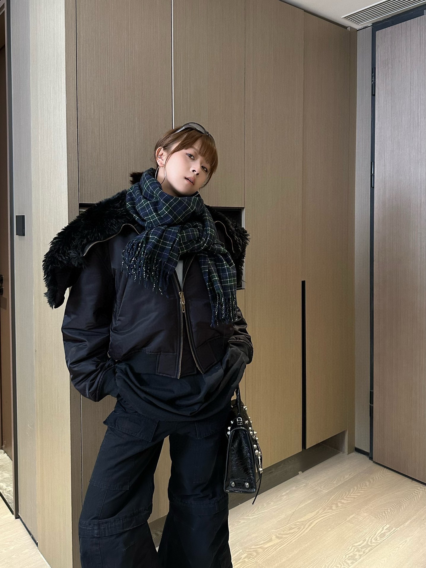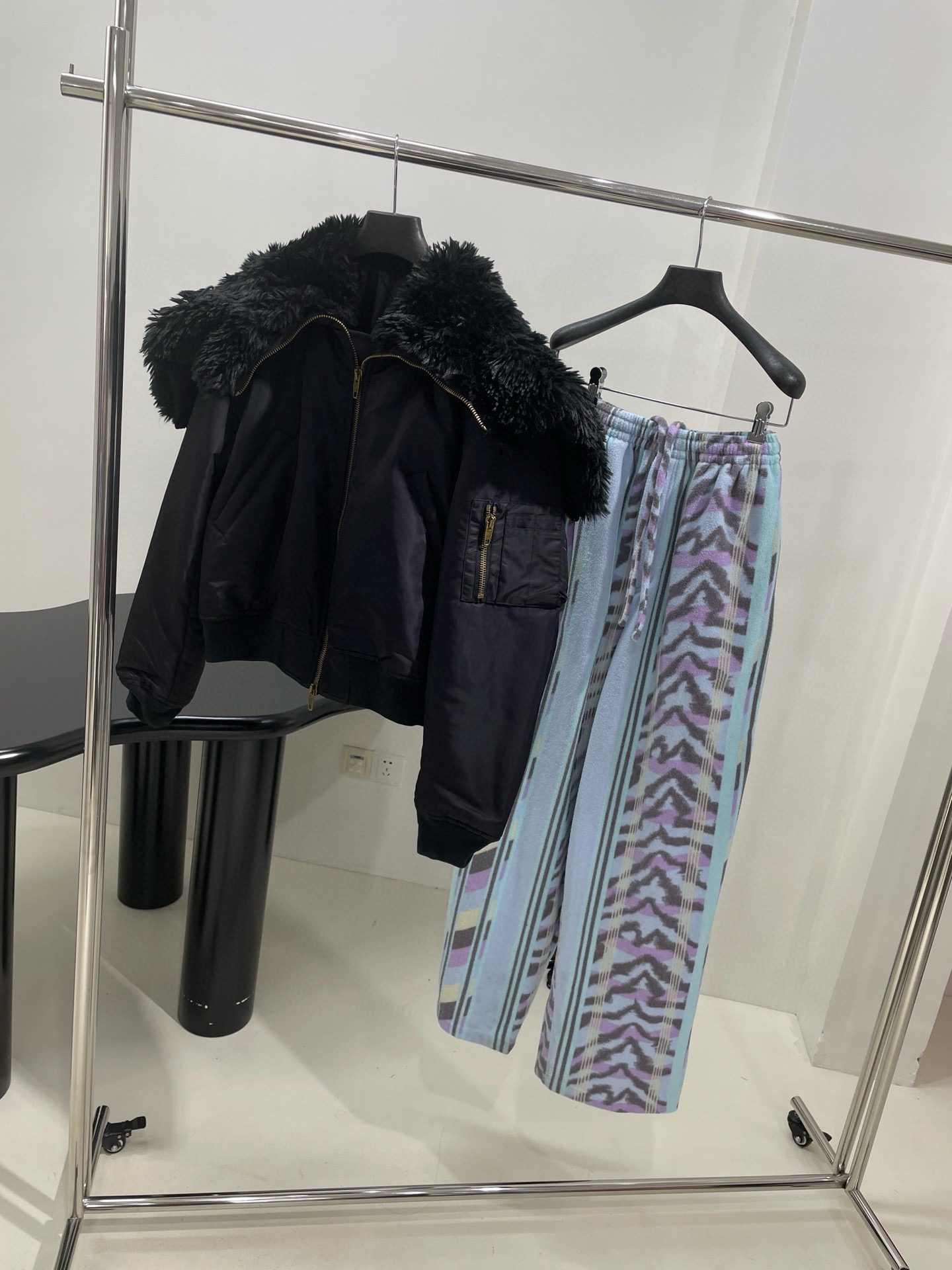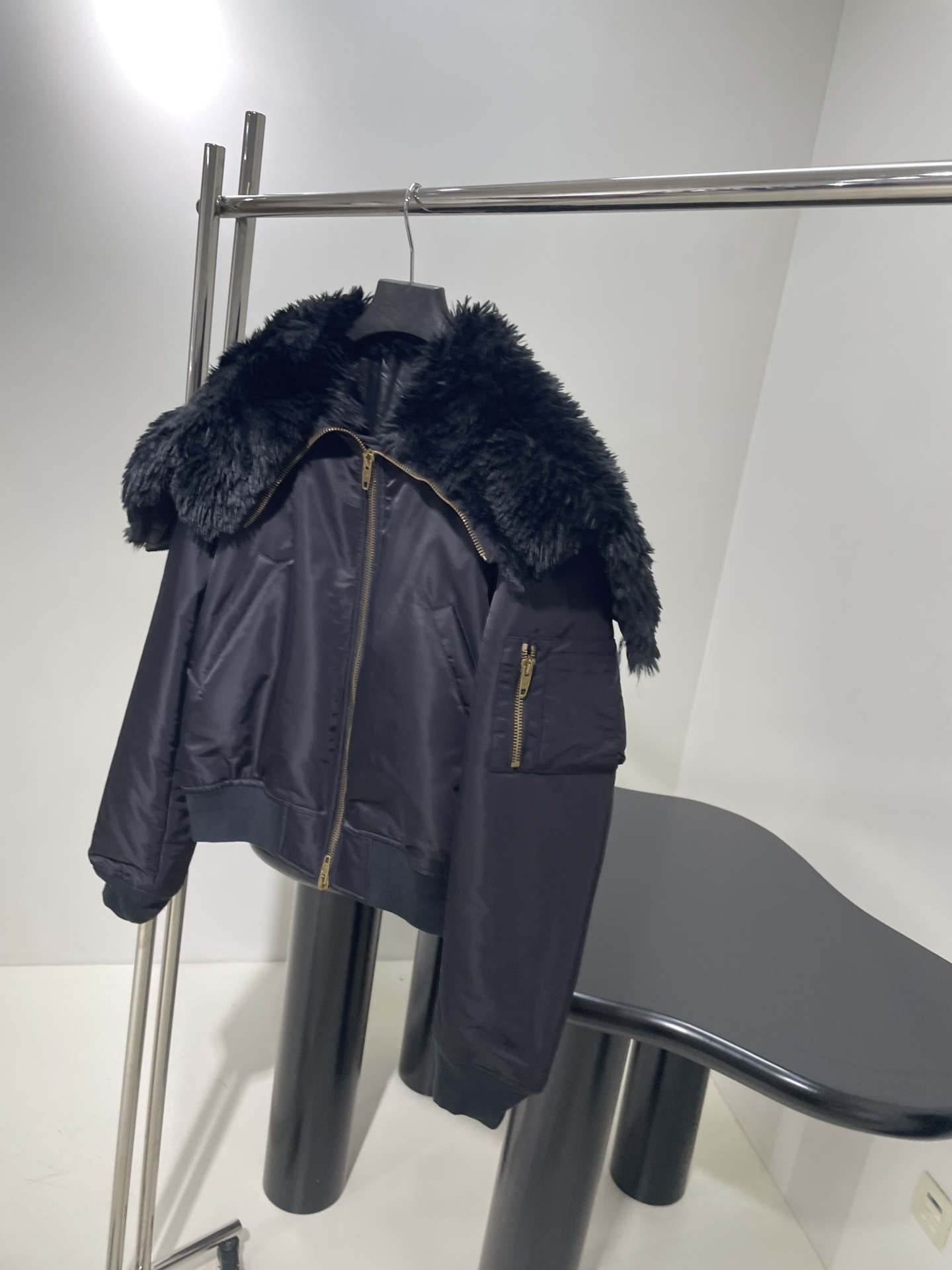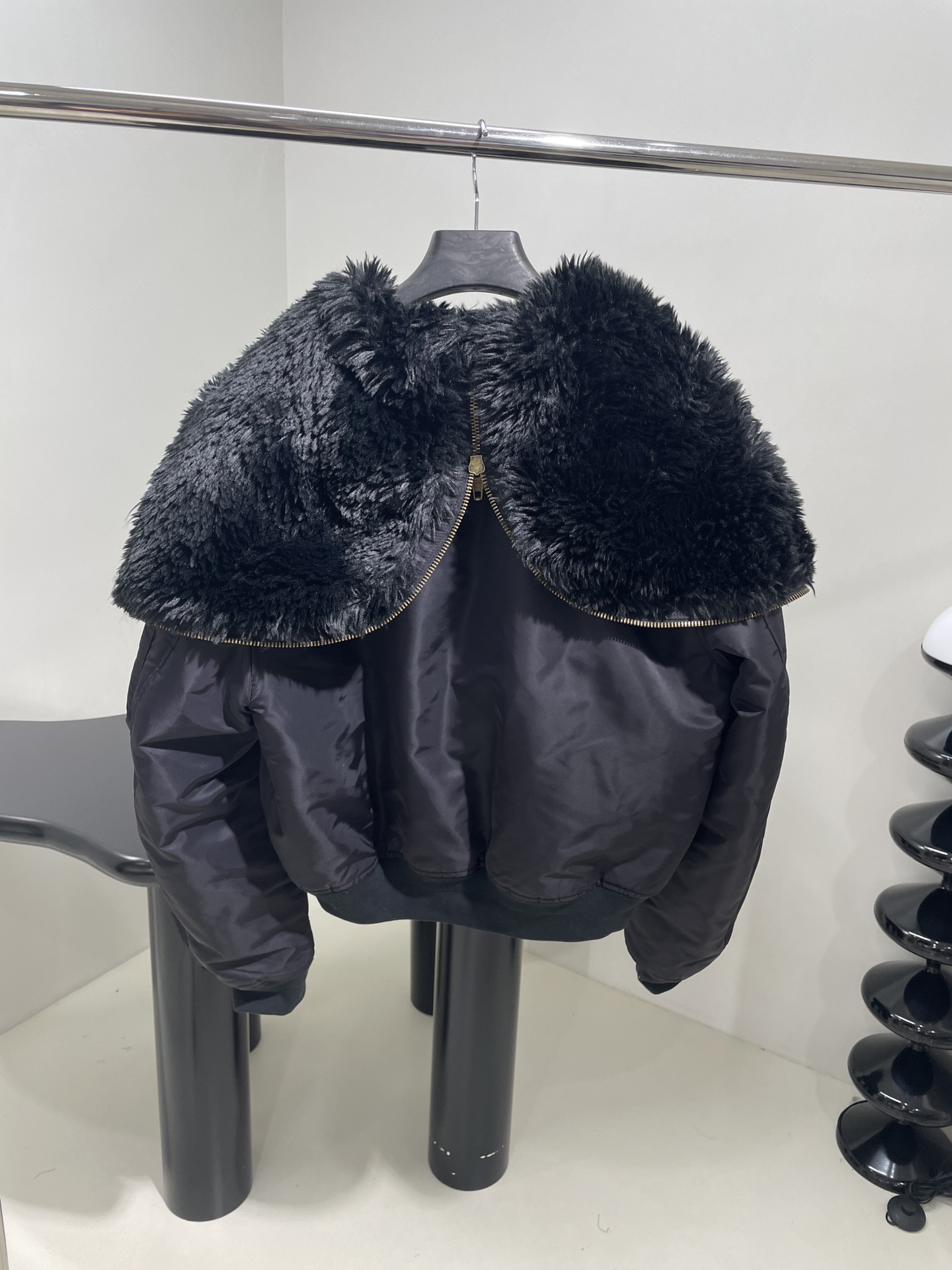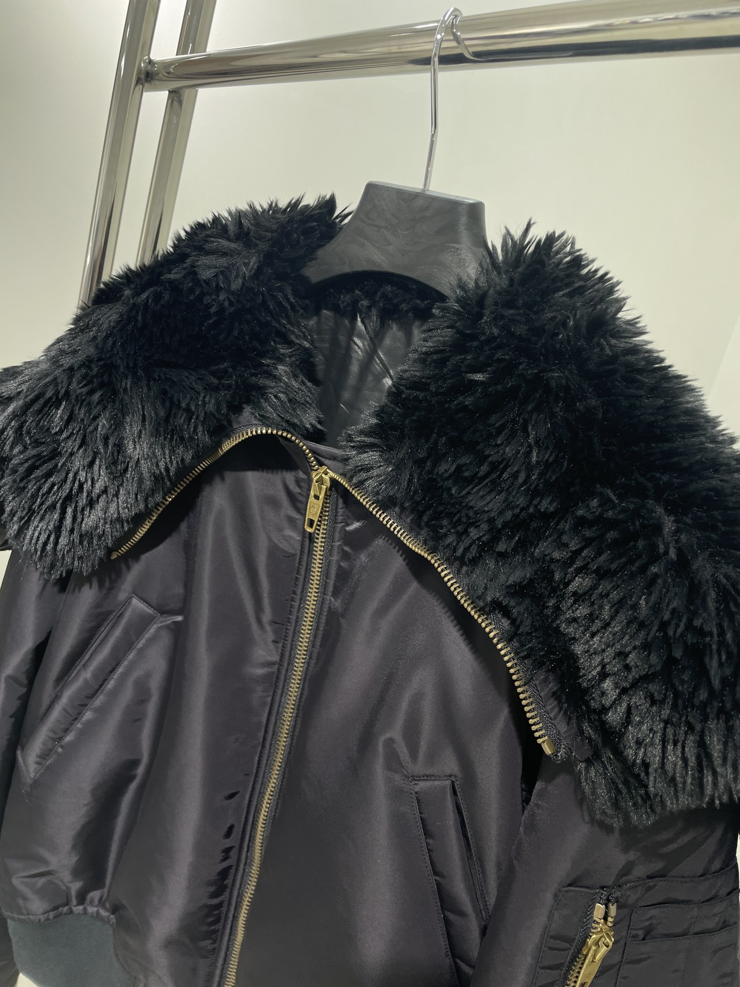 NIGO Balenciaga Men Women Black Hair Collar Hooded Bomber Zipper Long Sleeve Loose Jacket Ngvp #nigo9537