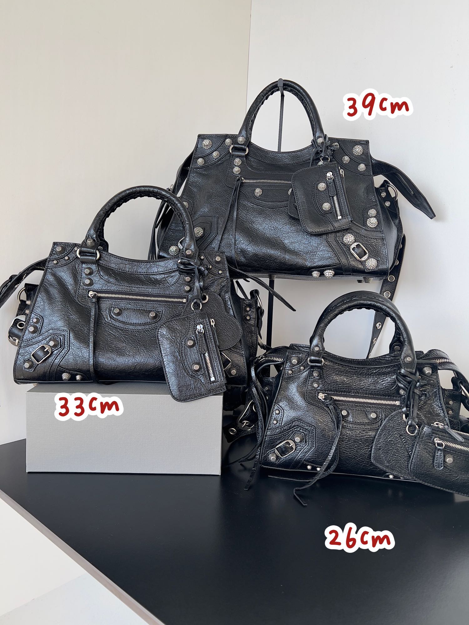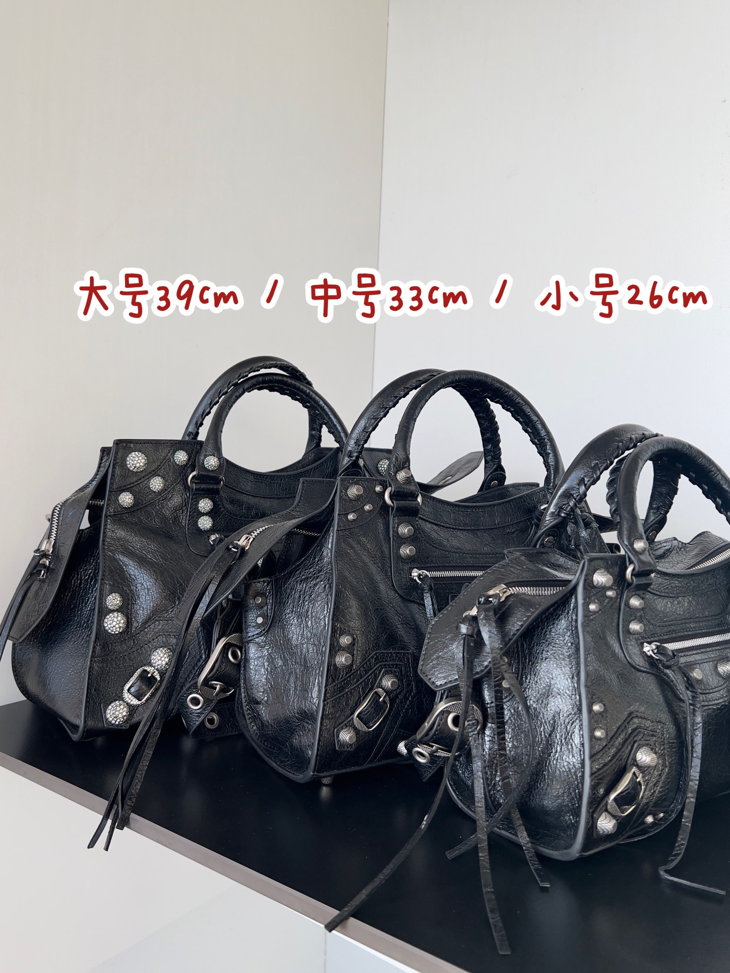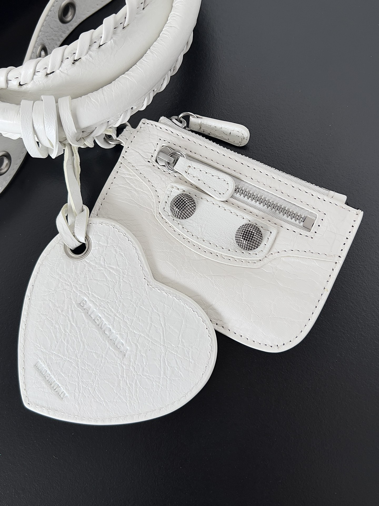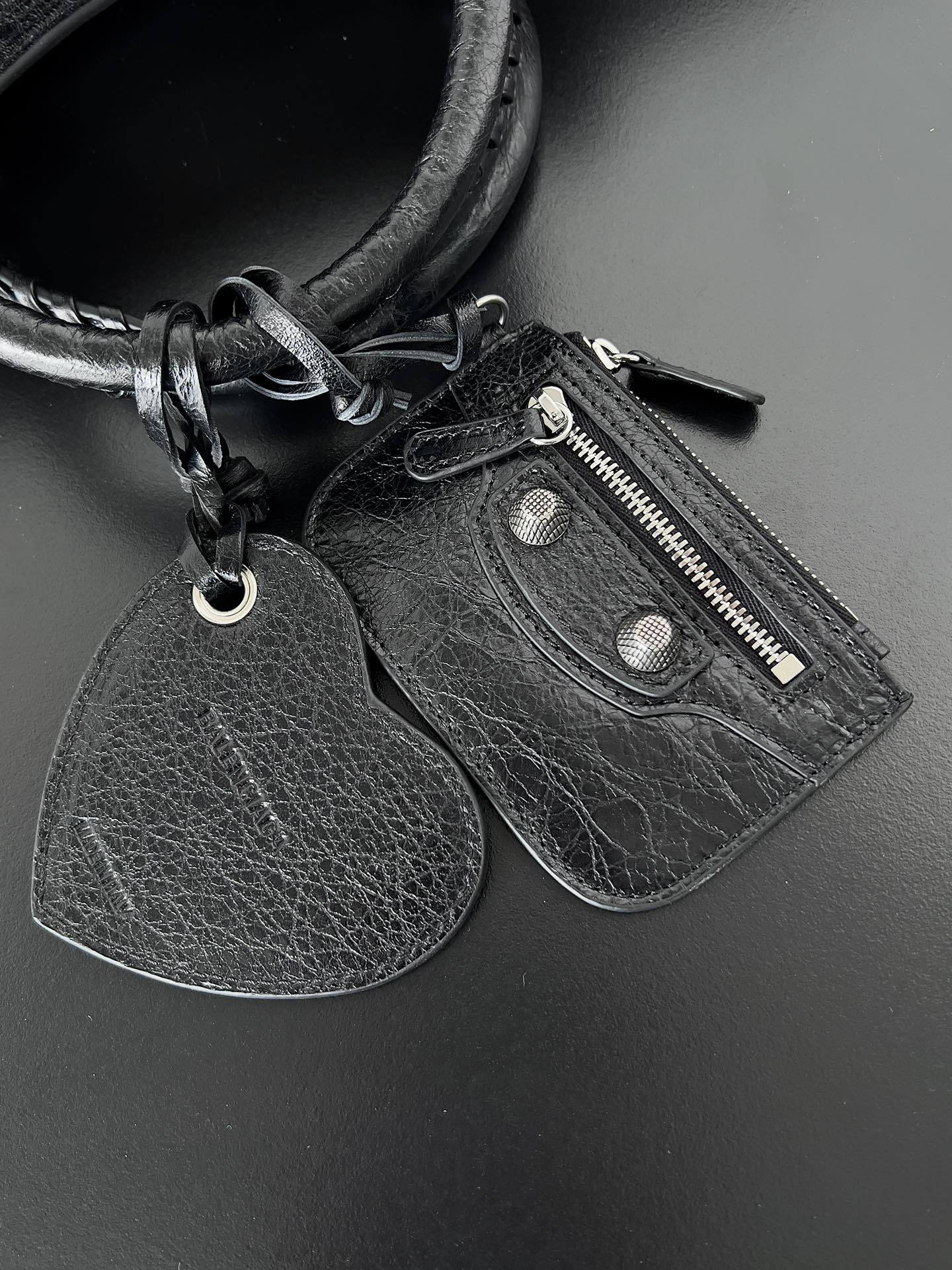 Nigo Balenciaga NEO CAGOLE CITY Trendy And Stylish Retro Motorcycle Metal Rivet Leather Zipper Love Pendant Card Bag Handbag Crossbody Bag 736046210B01000 Ngvp #nigo71267