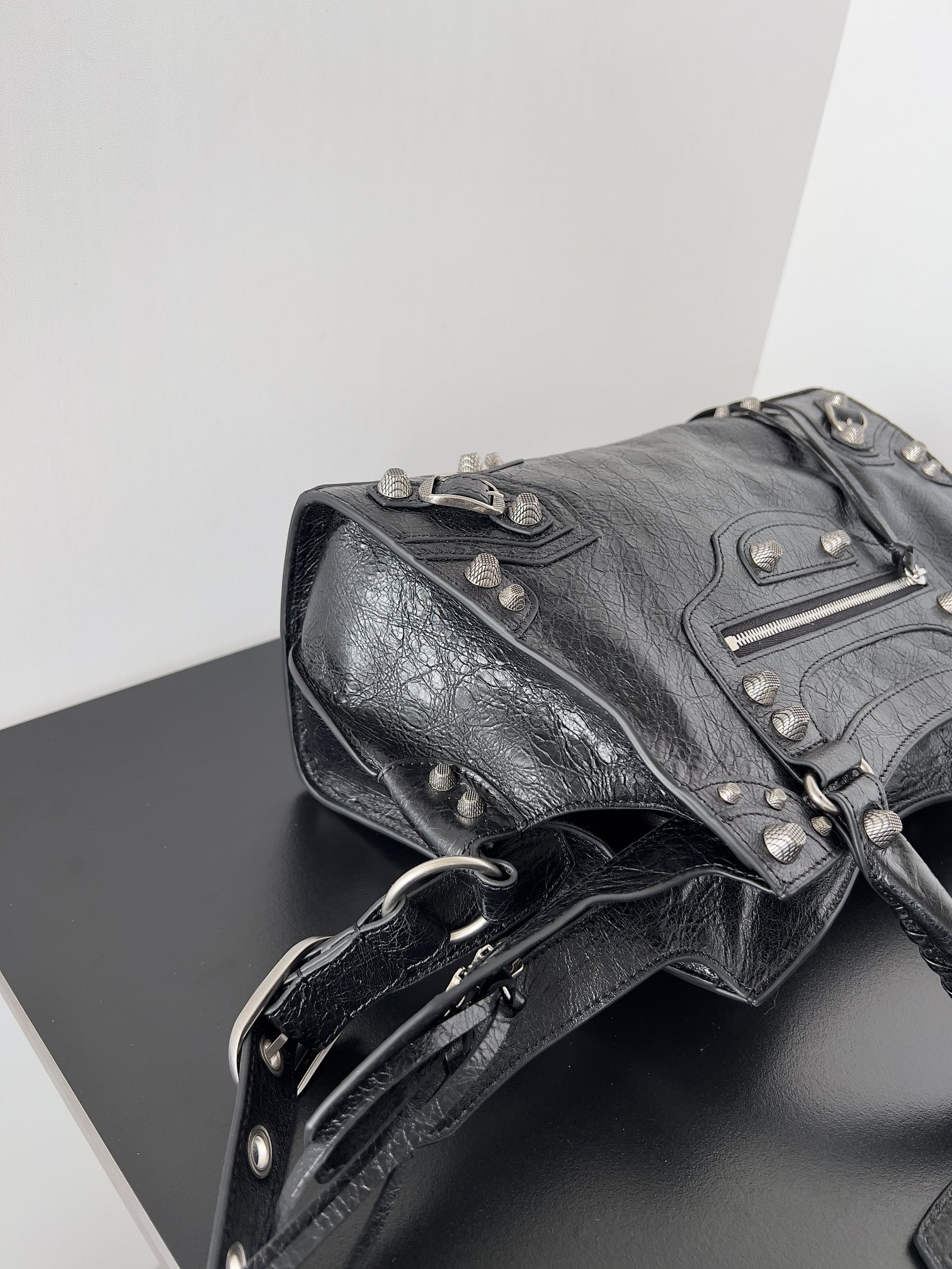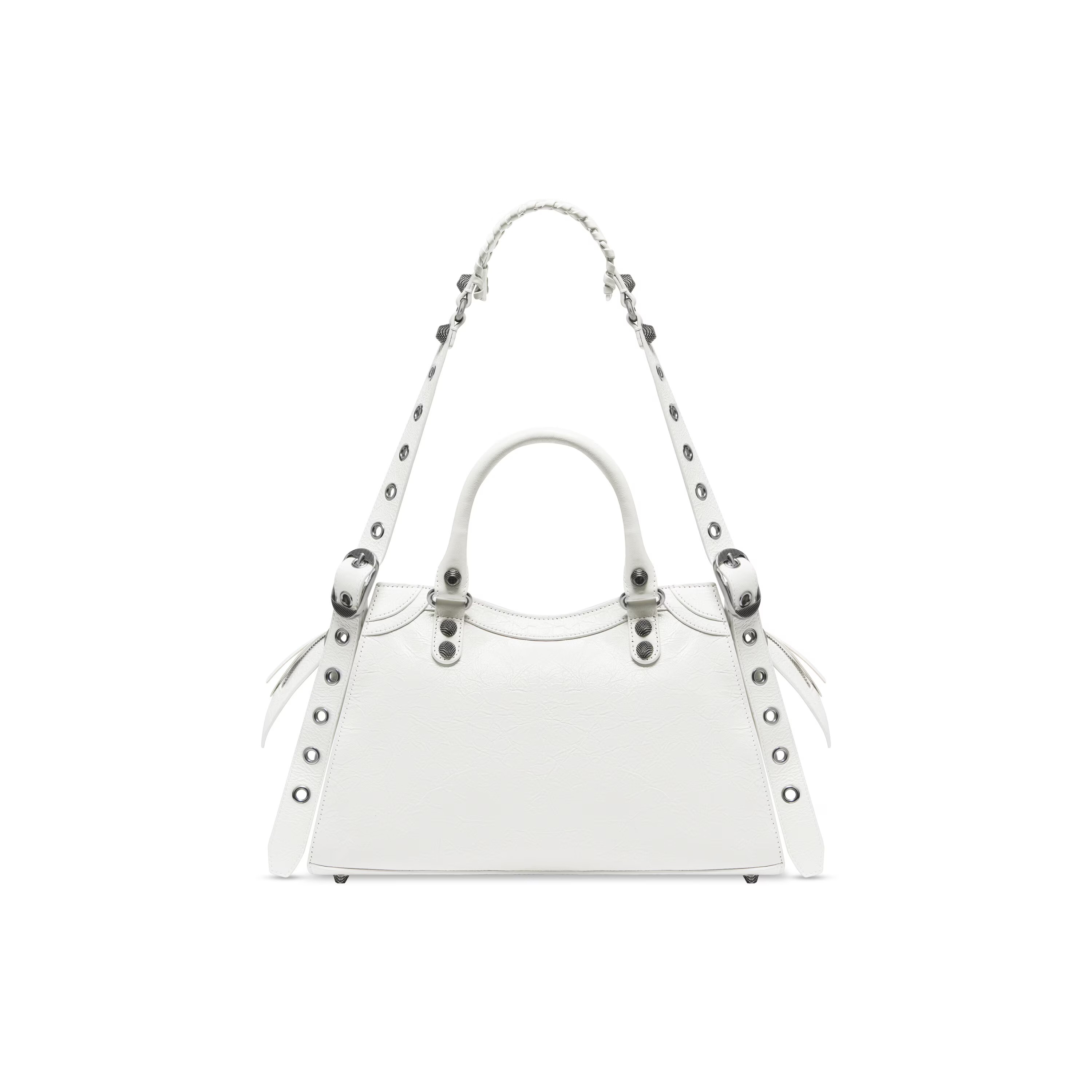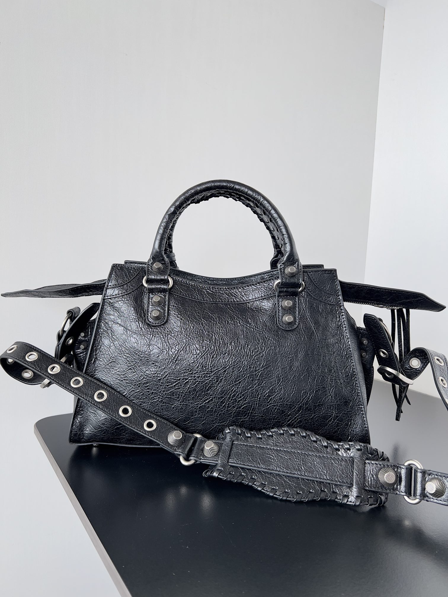 Nigo Balenciaga NEO CAGOLE CITY Trendy And Stylish Retro Motorcycle Metal Rivet Leather Zipper Love Pendant Card Bag Handbag Crossbody Bag 736046210B01000 Ngvp #nigo71267
