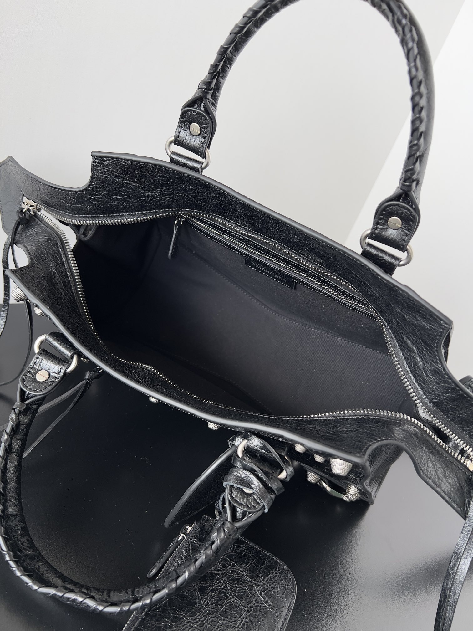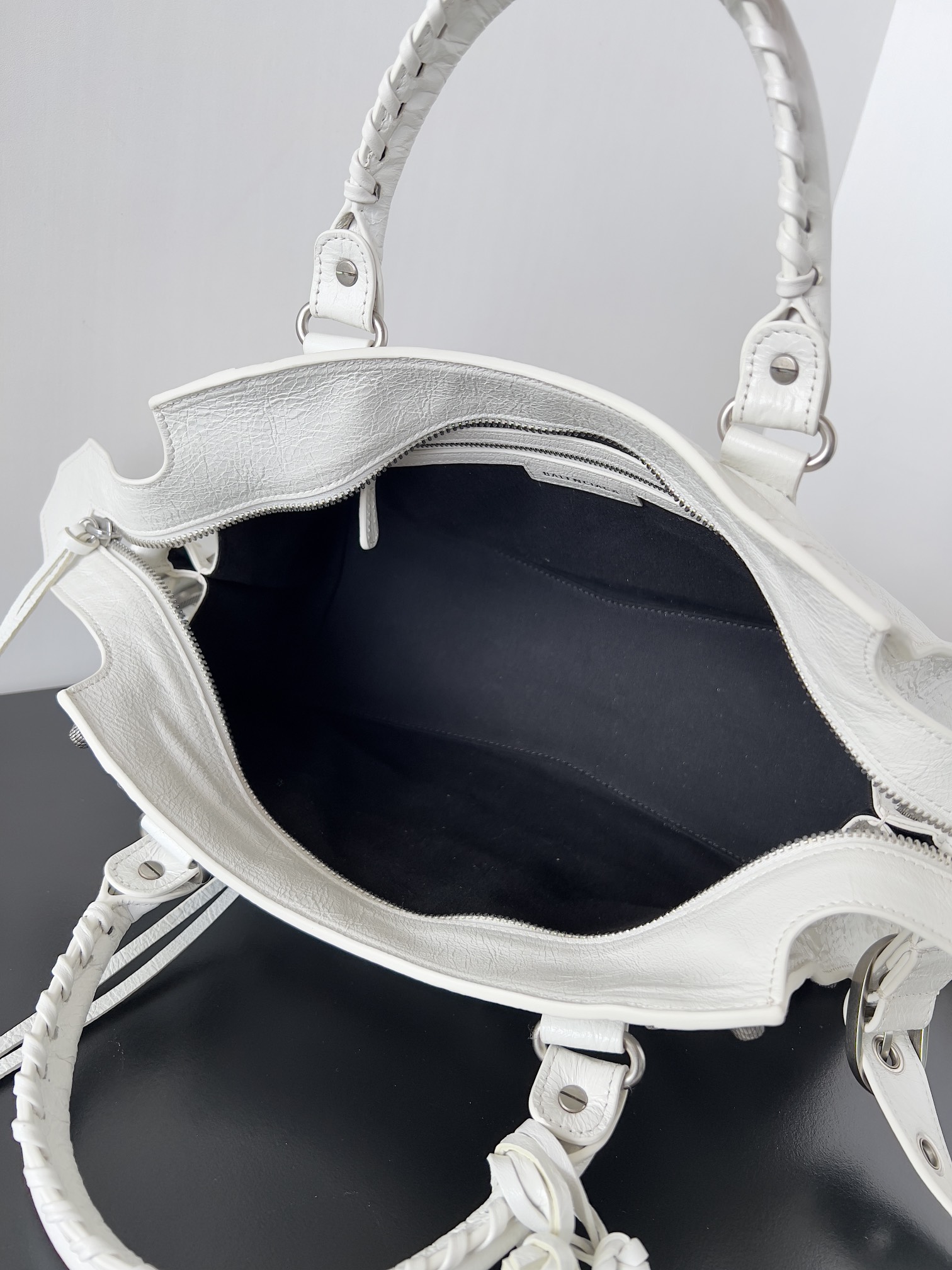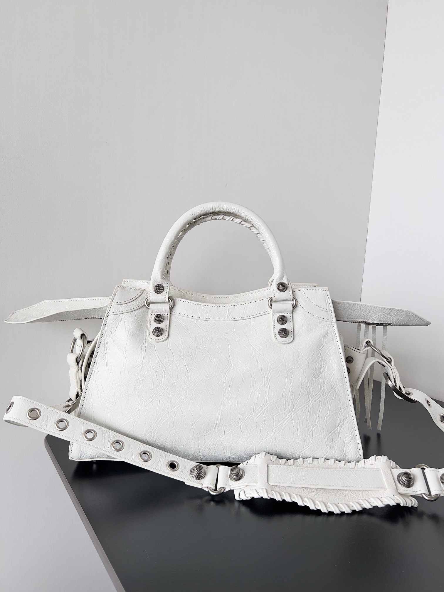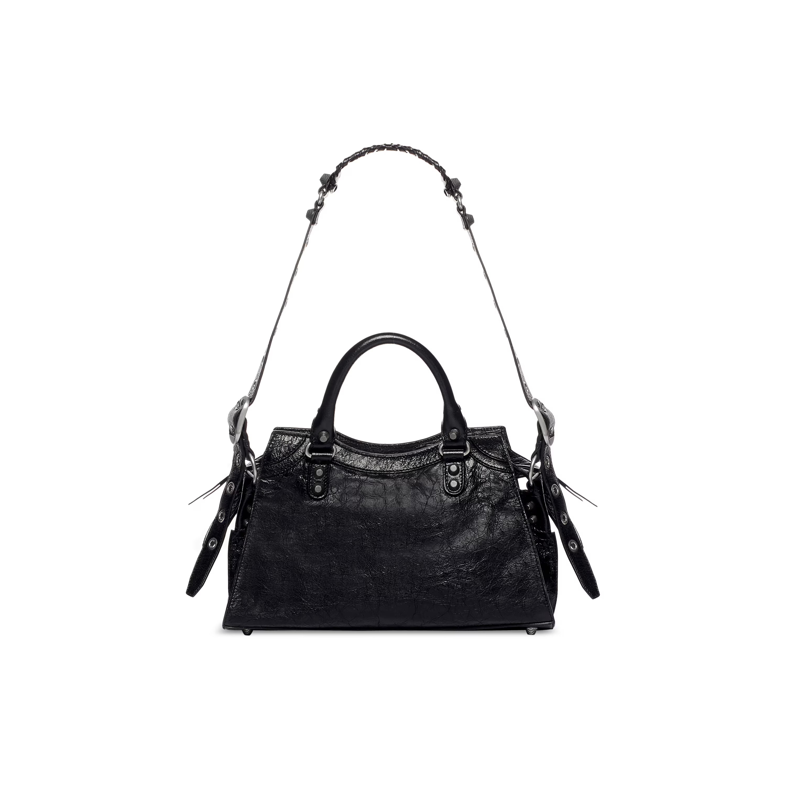 Nigo Balenciaga NEO CAGOLE CITY Trendy And Stylish Retro Motorcycle Metal Rivet Leather Zipper Love Pendant Card Bag Handbag Crossbody Bag 736046210B01000 Ngvp #nigo71267