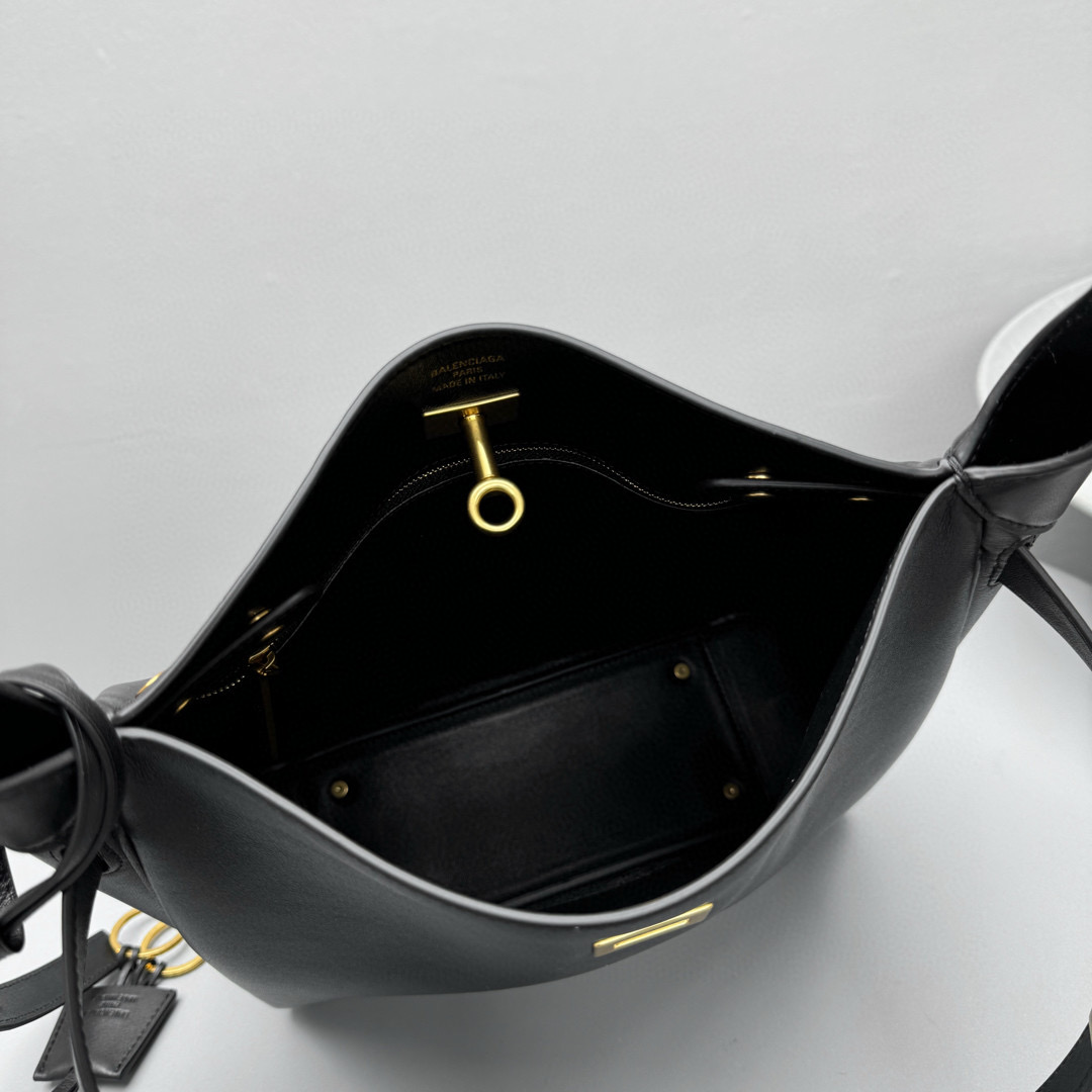 NIGO Balenciaga Women's Black BEL AIR Small HOBO Bags Leather Casual Tote Shoulder Bags 8110182ABAV1000 Ngvp #nigo9834
