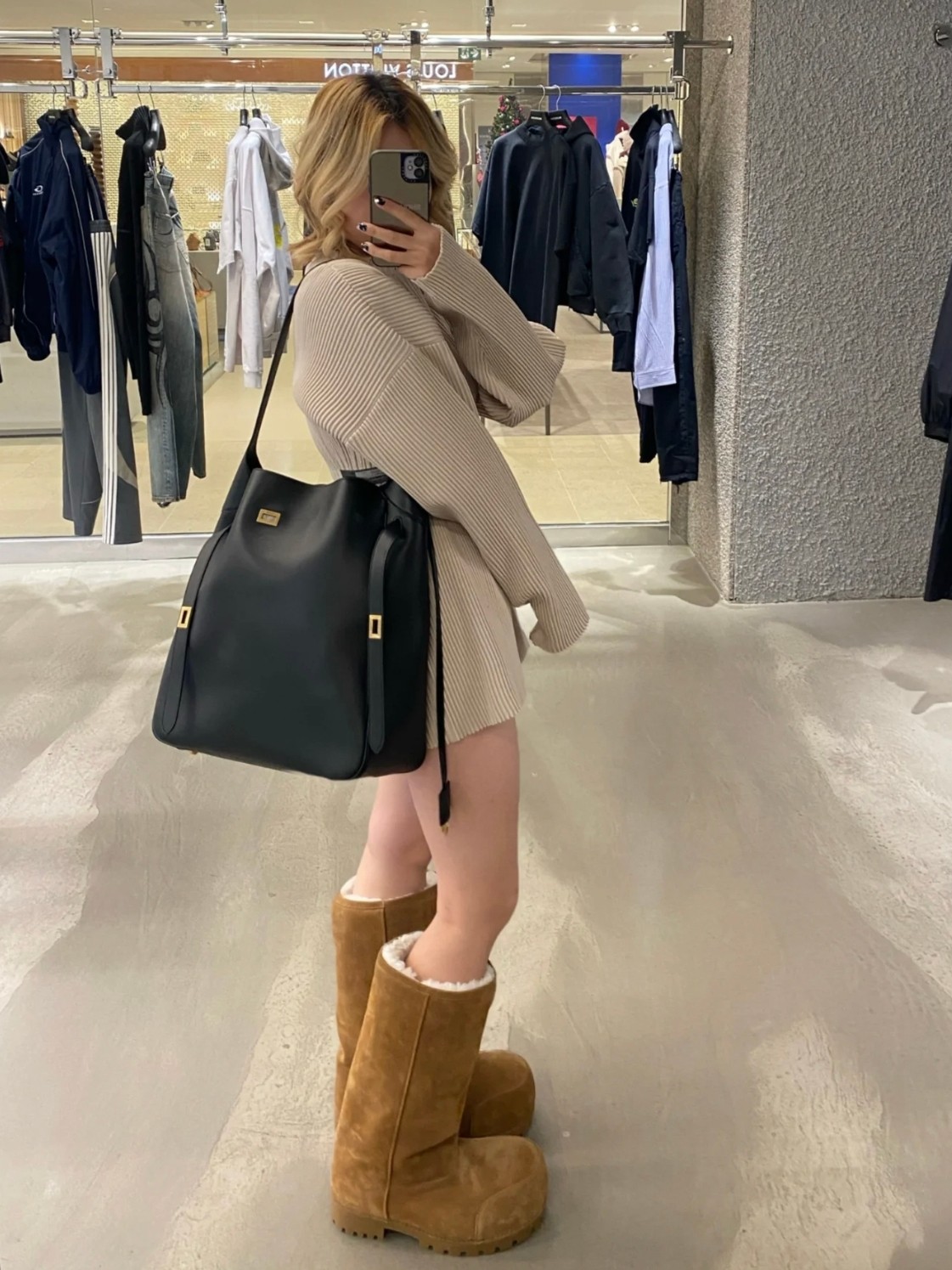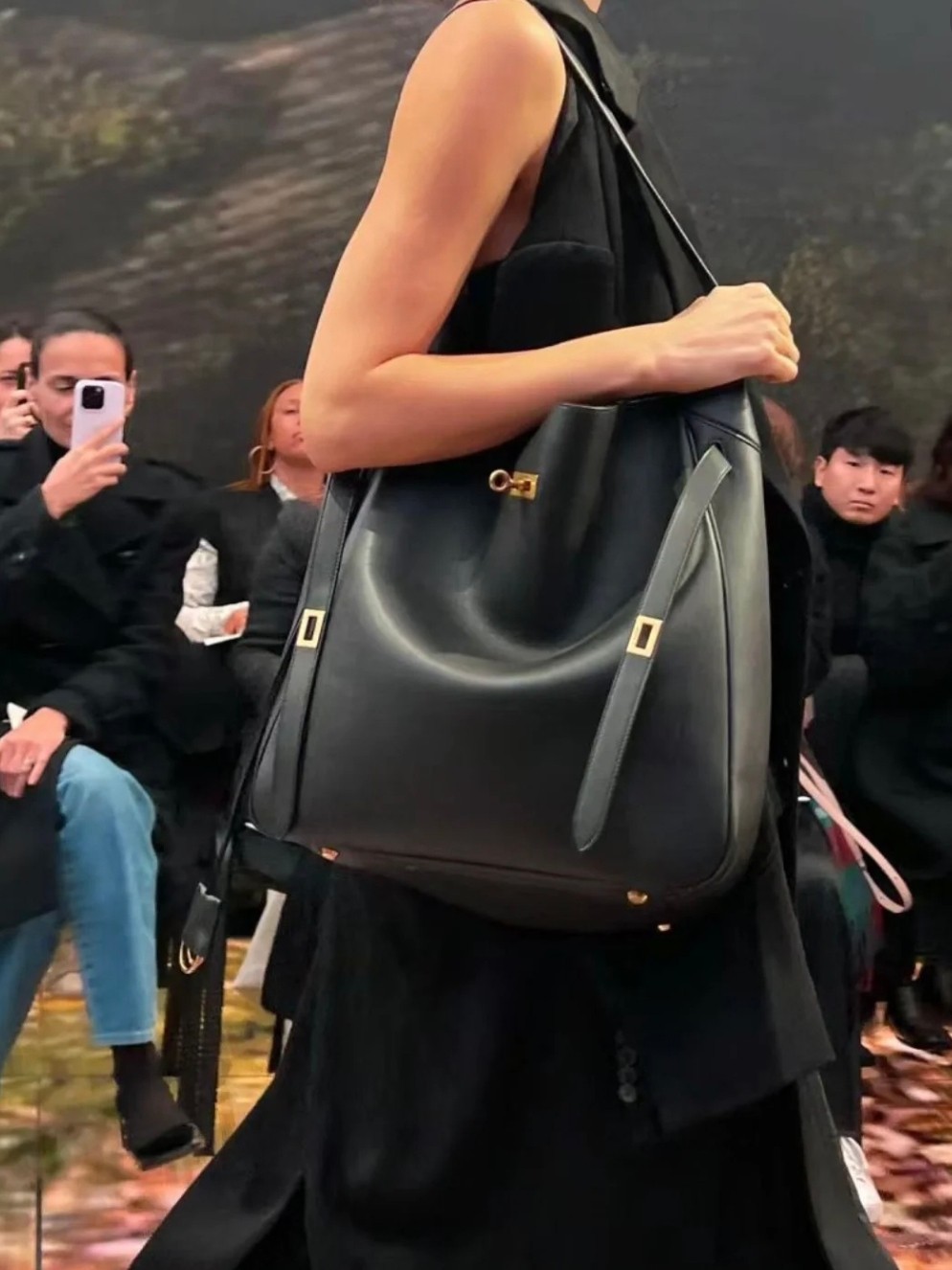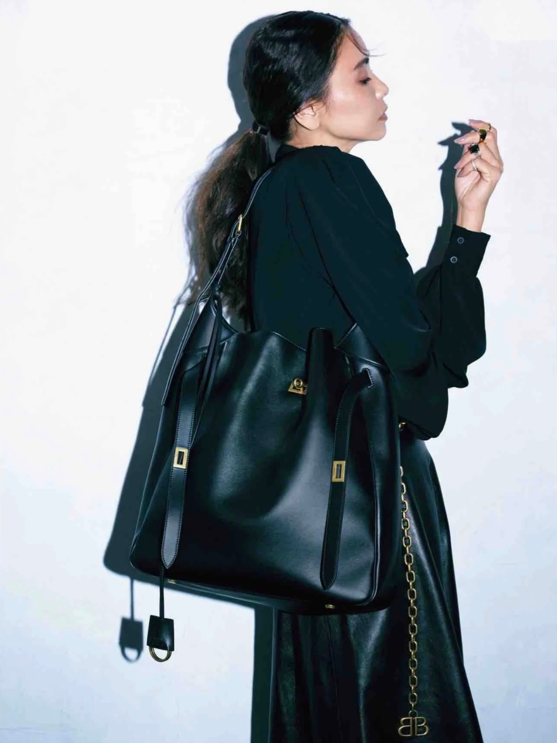 NIGO Balenciaga Women's Black Casual Leather Bel Air Large Hobo Shoulder Bags Handbags Tote Bags 8057582ABAV1000 Ngvp #nigo9832