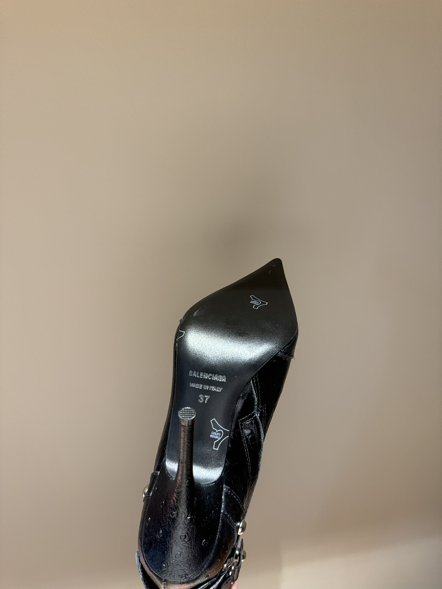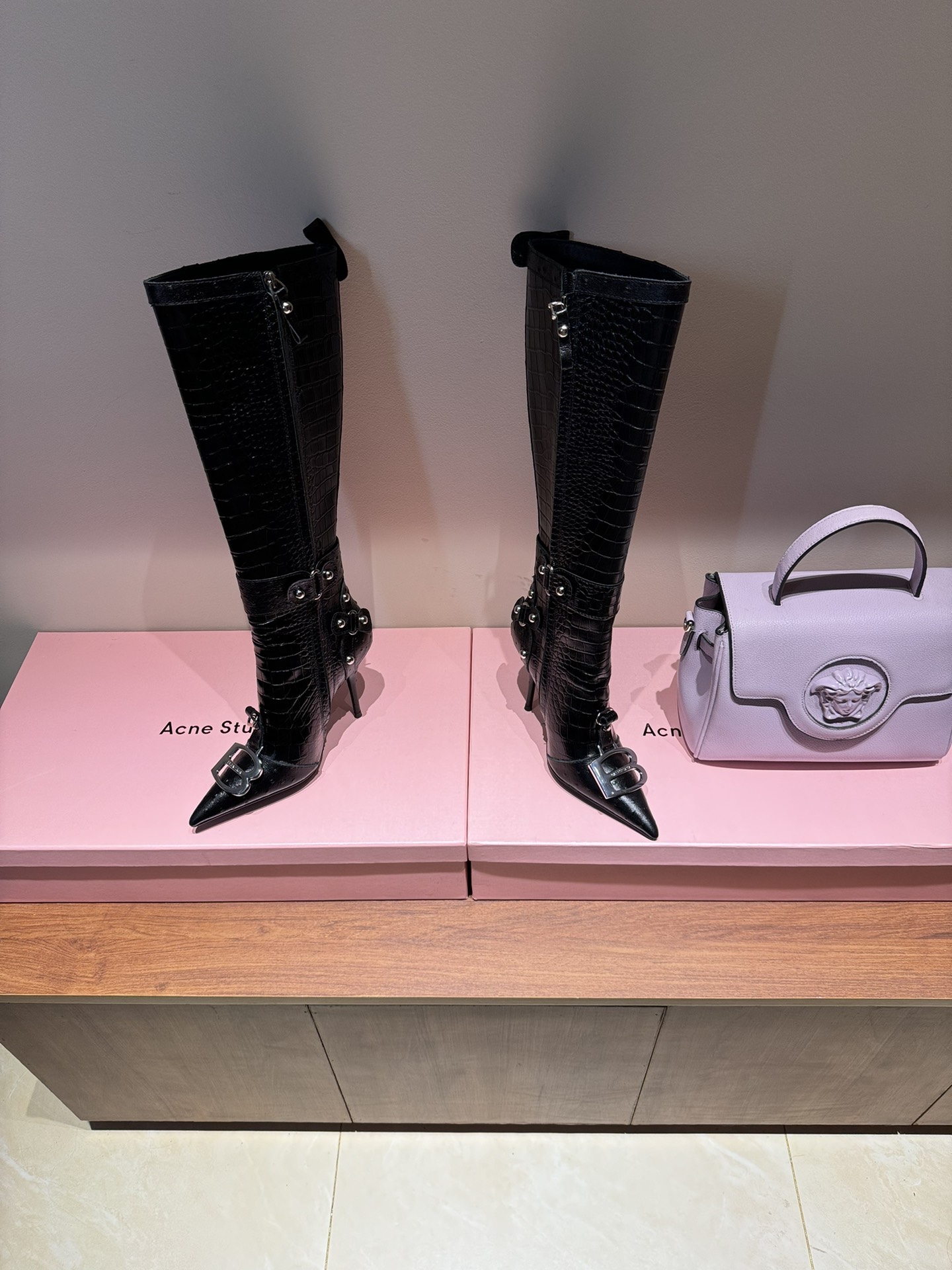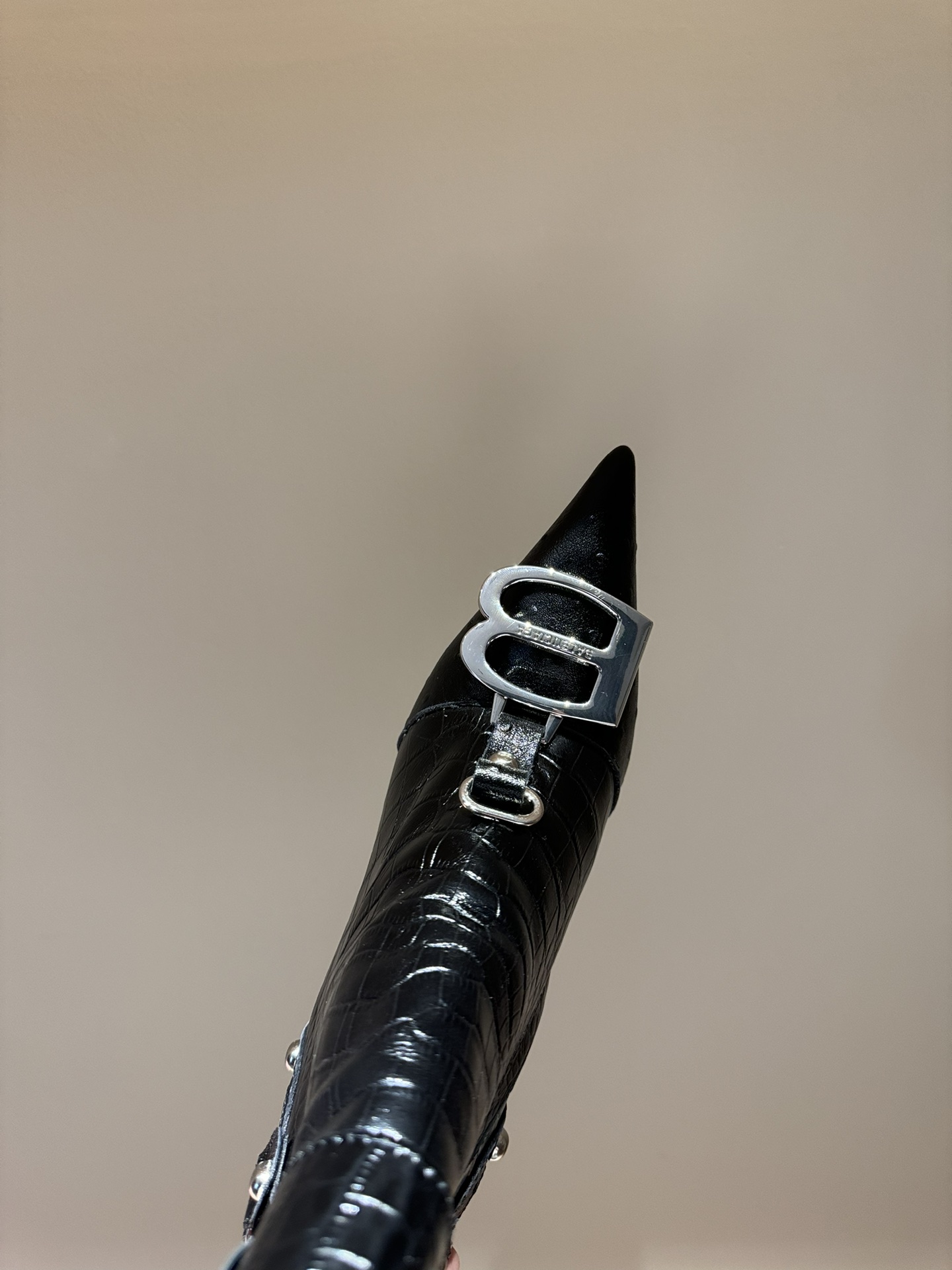 NIGO Balenciaga Women's Pointed Toe Jacquard Thigh High Boots 11cm Heel Calf Leather Biker Shoes #nigo74861
