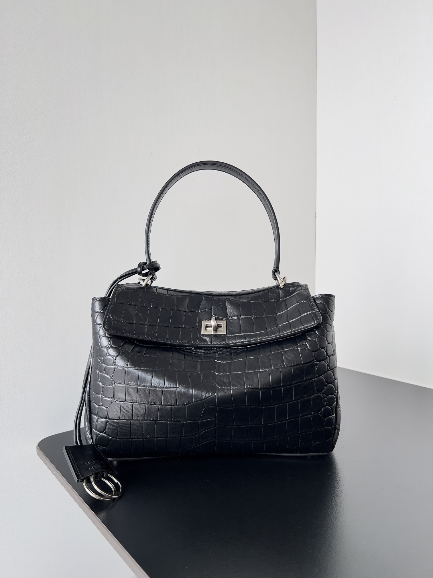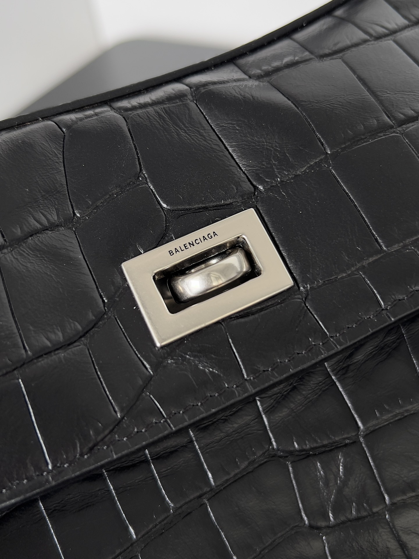 NIGO Balenciaga Women's Retro RODEO Crocodile Embossed Handbag Removable Shoulder Strap Cowhide Leather Casual Single Crossbody Bag Ngvp #nigo8444