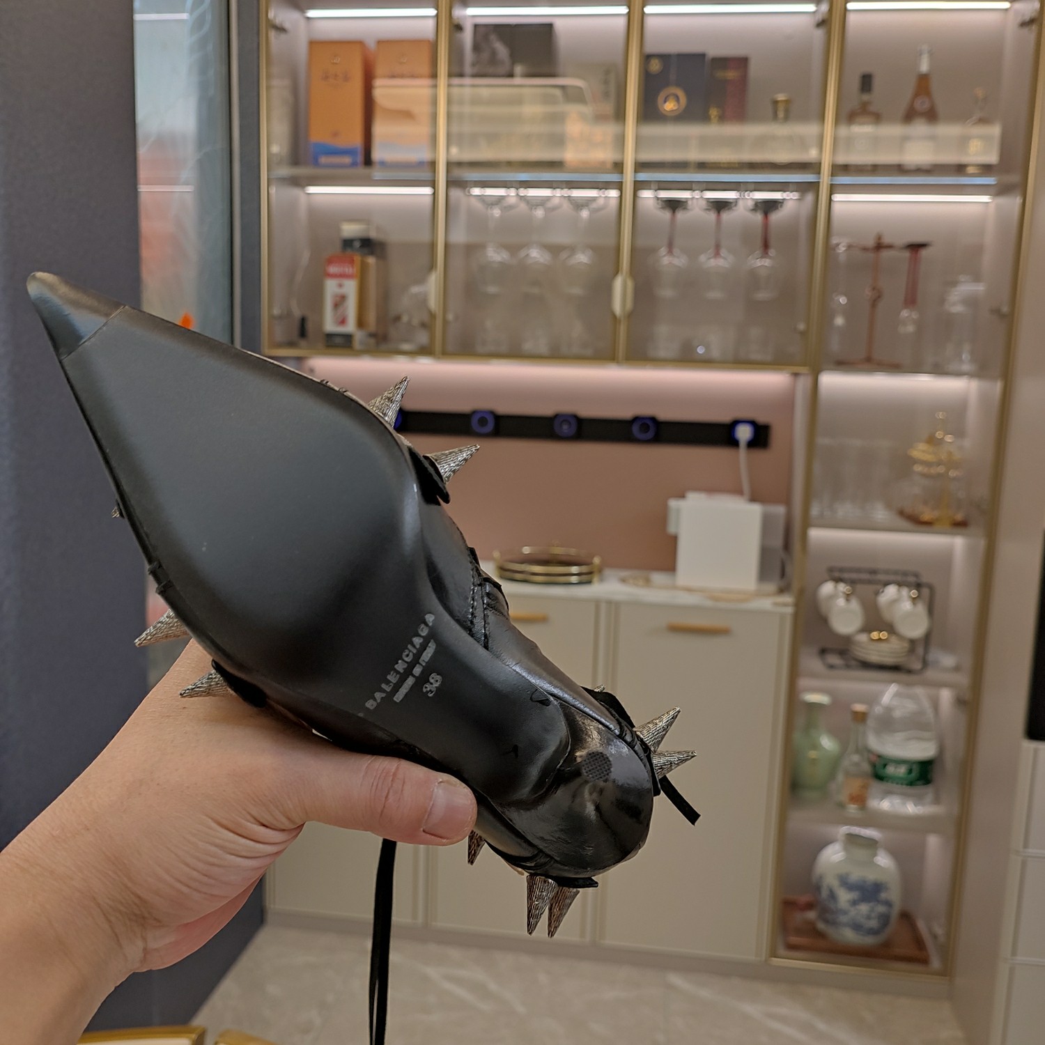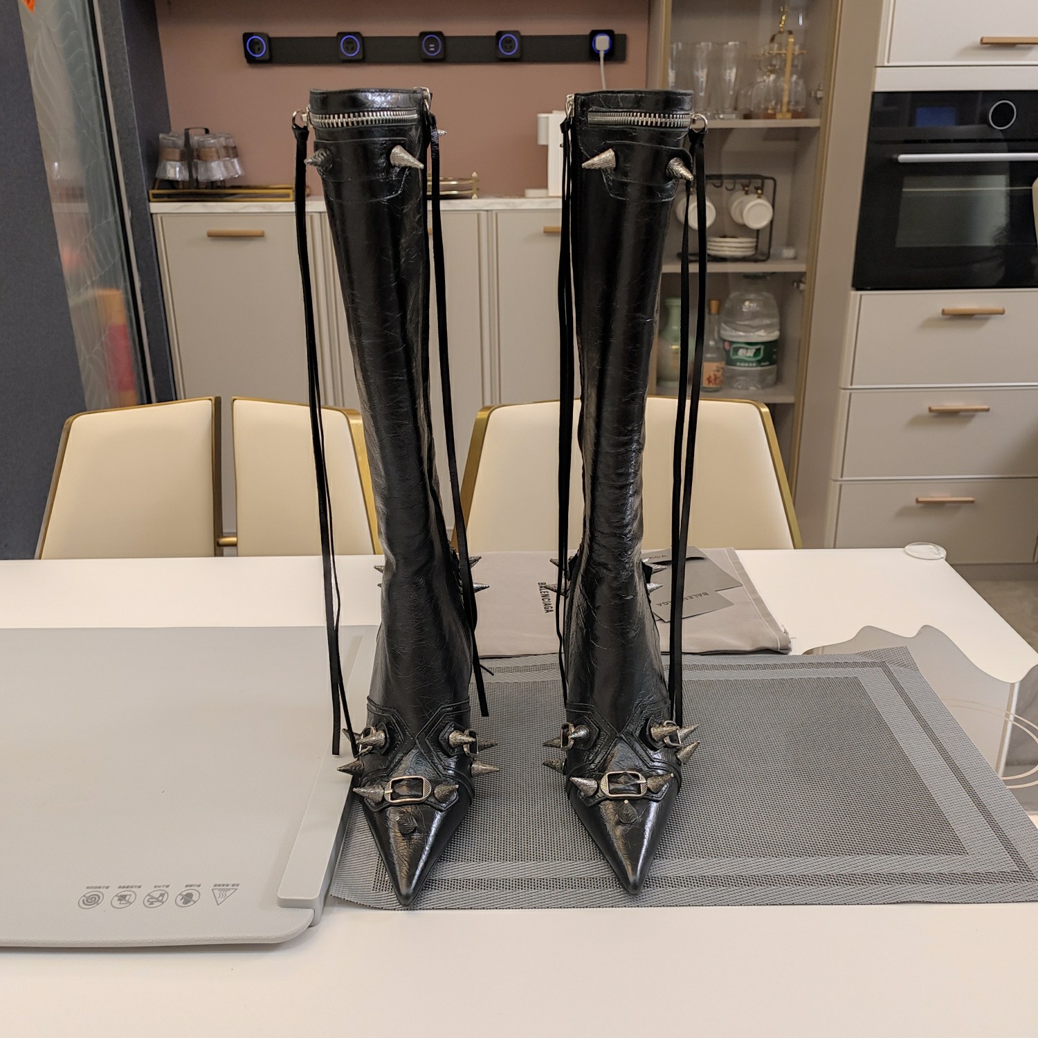 NIGO Balenciaga Women's Rivet Pointed Toe Side Zipper Thigh High Boots Motorcycle Style Shoes Fashion Cowhide Short Boots Ngvp #nigo9222