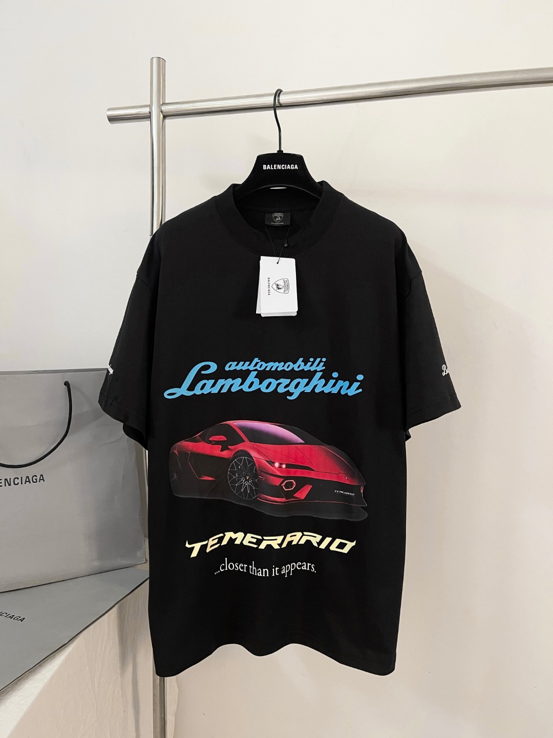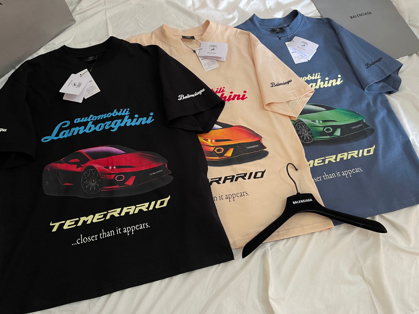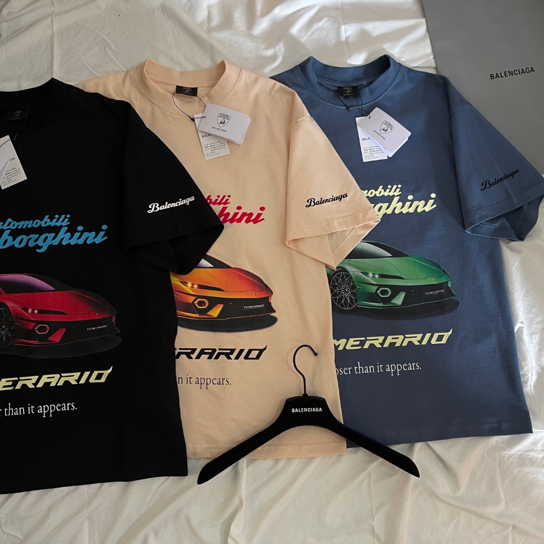 NIGO Balenciaga x Lamborghini Men's And Women's Summer Car Printing Round Neck Cotton Short Sleeve T-Shirt #nigo71838