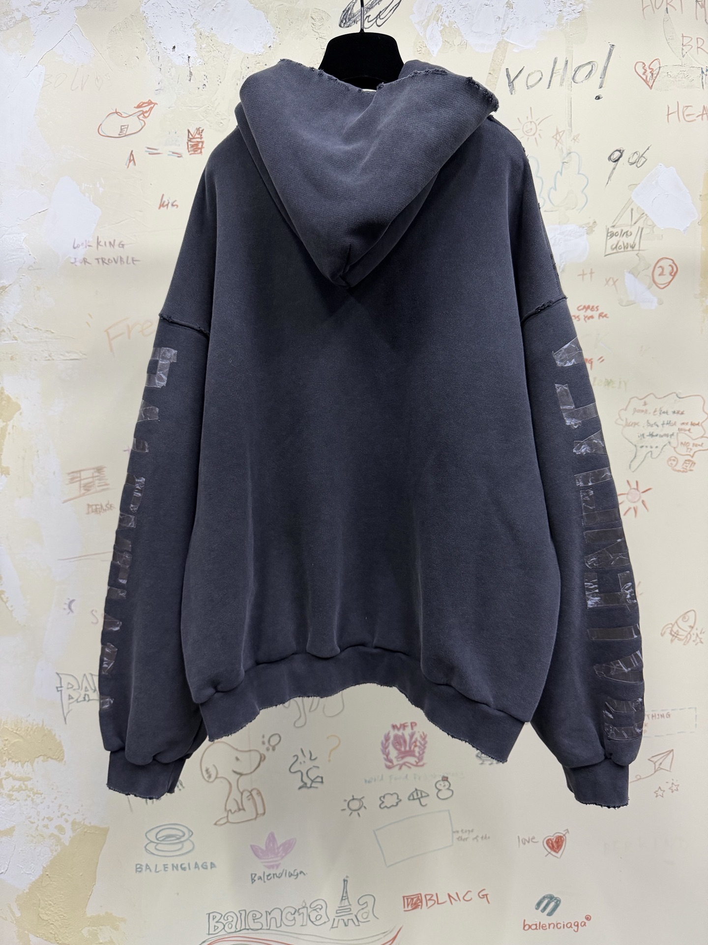 NIGO Balenciaga Men's Washed Crayon Loop Oversized Hoodie in Washed Black White #nigo336853