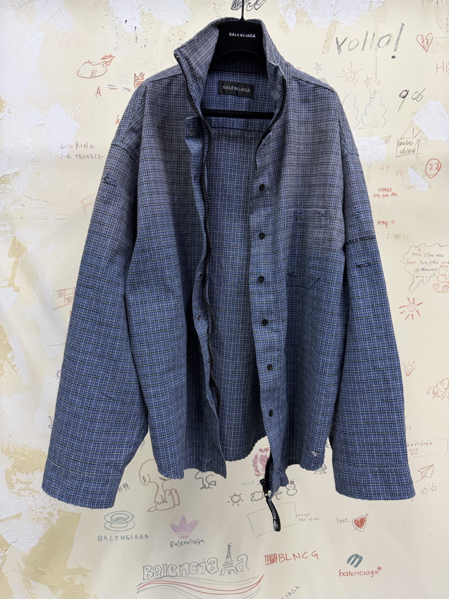 NIGO Balenciaga Women's Washed Crayon Political Zip-up Hoodie Regular Fit in Faded Black #nigo336784