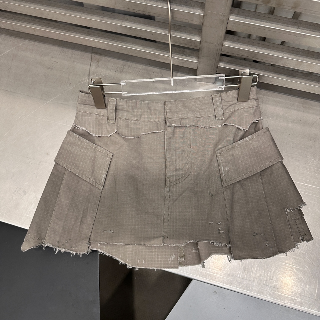 NIGO Balenciaga Cargo Women's Summer Solid Color Distressed Hem Cotton Mini Skirt #nigo77653