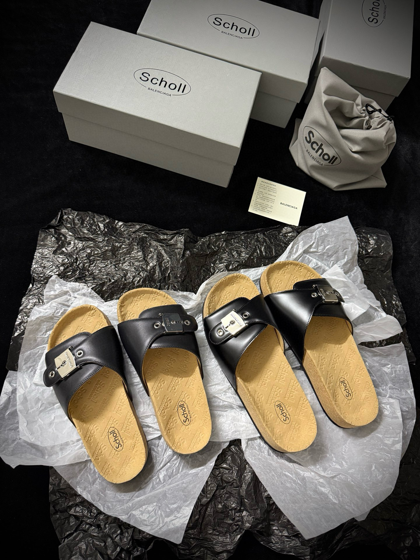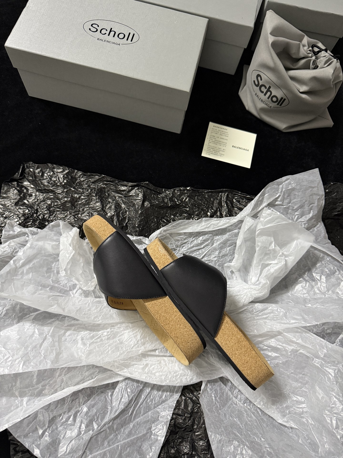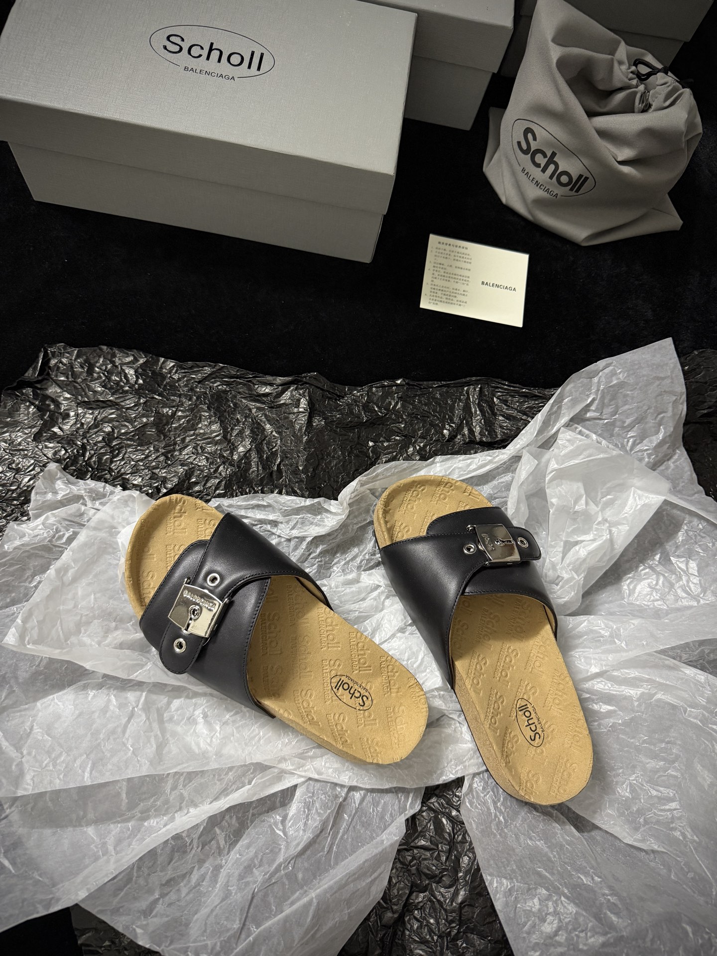NIGO Balenciaga Scholl Men's and Women's Summer Black Cowhide Leather Flat Sandals Slippers Shoes #nigo77655