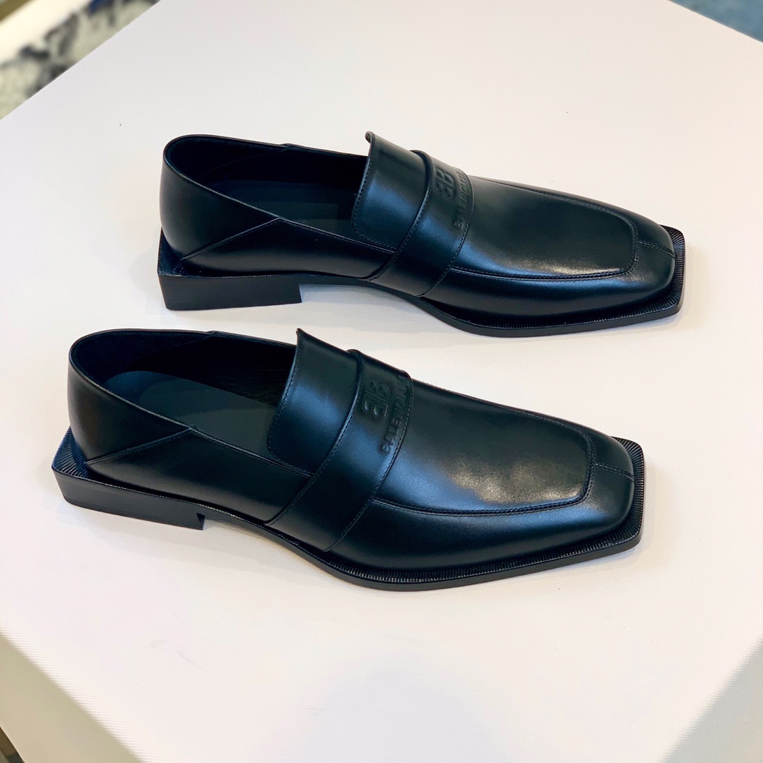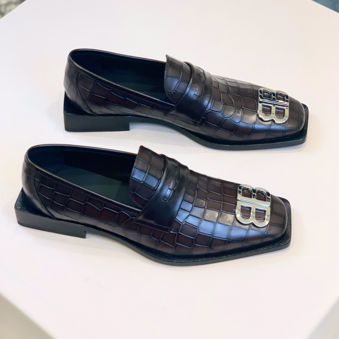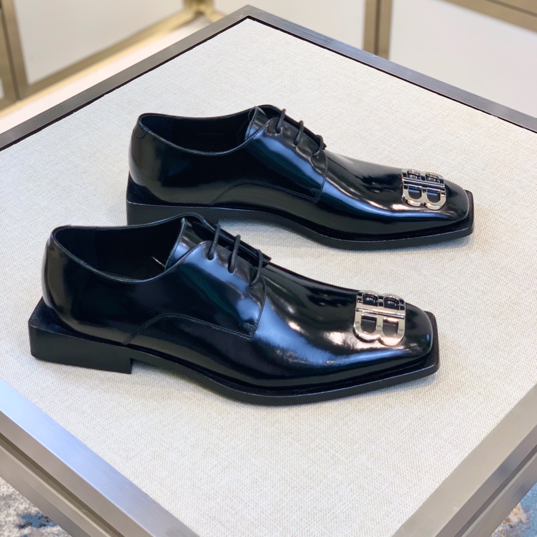 NIGO Balenciaga Men's Solid Colour Square Toe Metal BB Logo Cowhide Leather Shoes #nigo77218