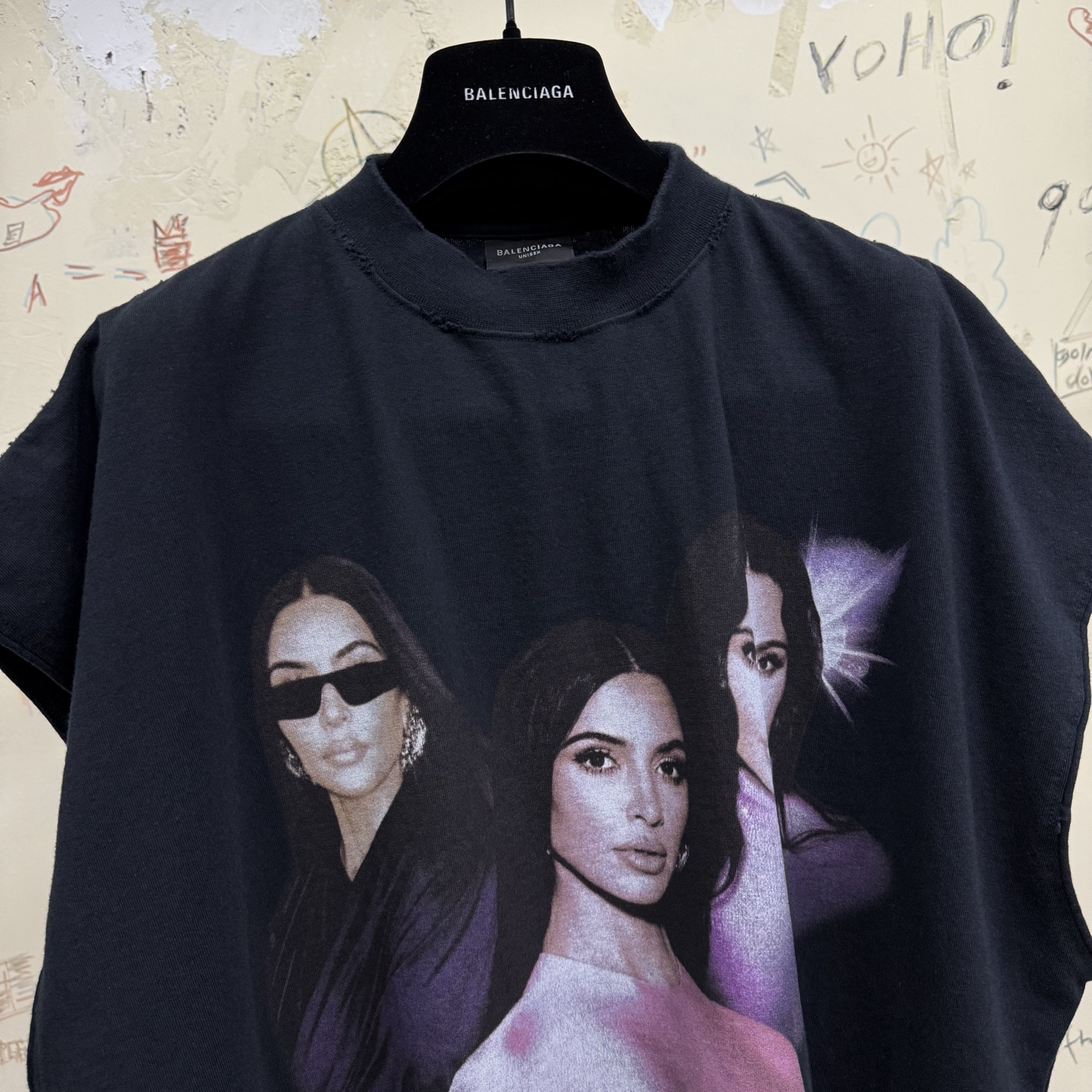 NIGO Balenciaga Women's Summer Portrait Pattern Printed Solid Color Round Neck Cotton Sleeveless Top #nigo77225