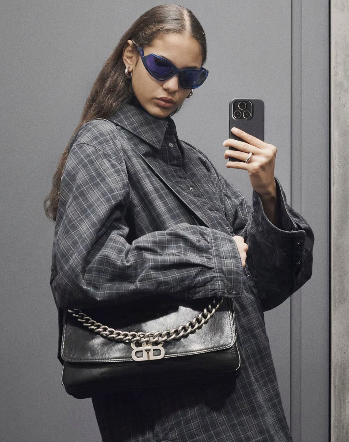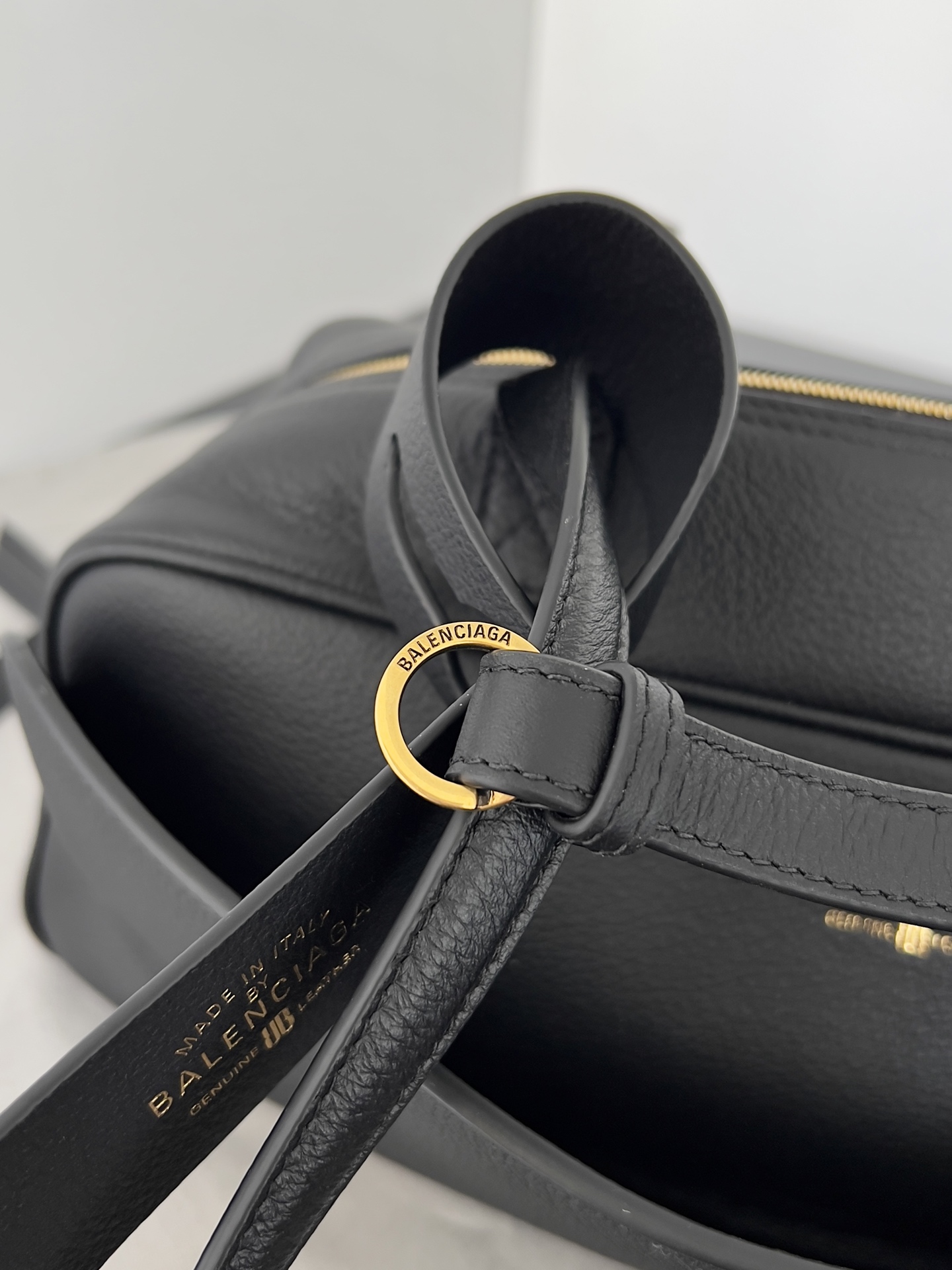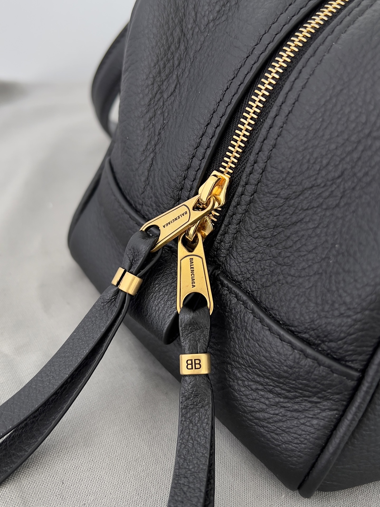 NIGO Balenciaga Men's Carrie Black Cowhide Small Bowling Bag with Aged Gold Metallic Accessories Handbag Bags #nigo76257